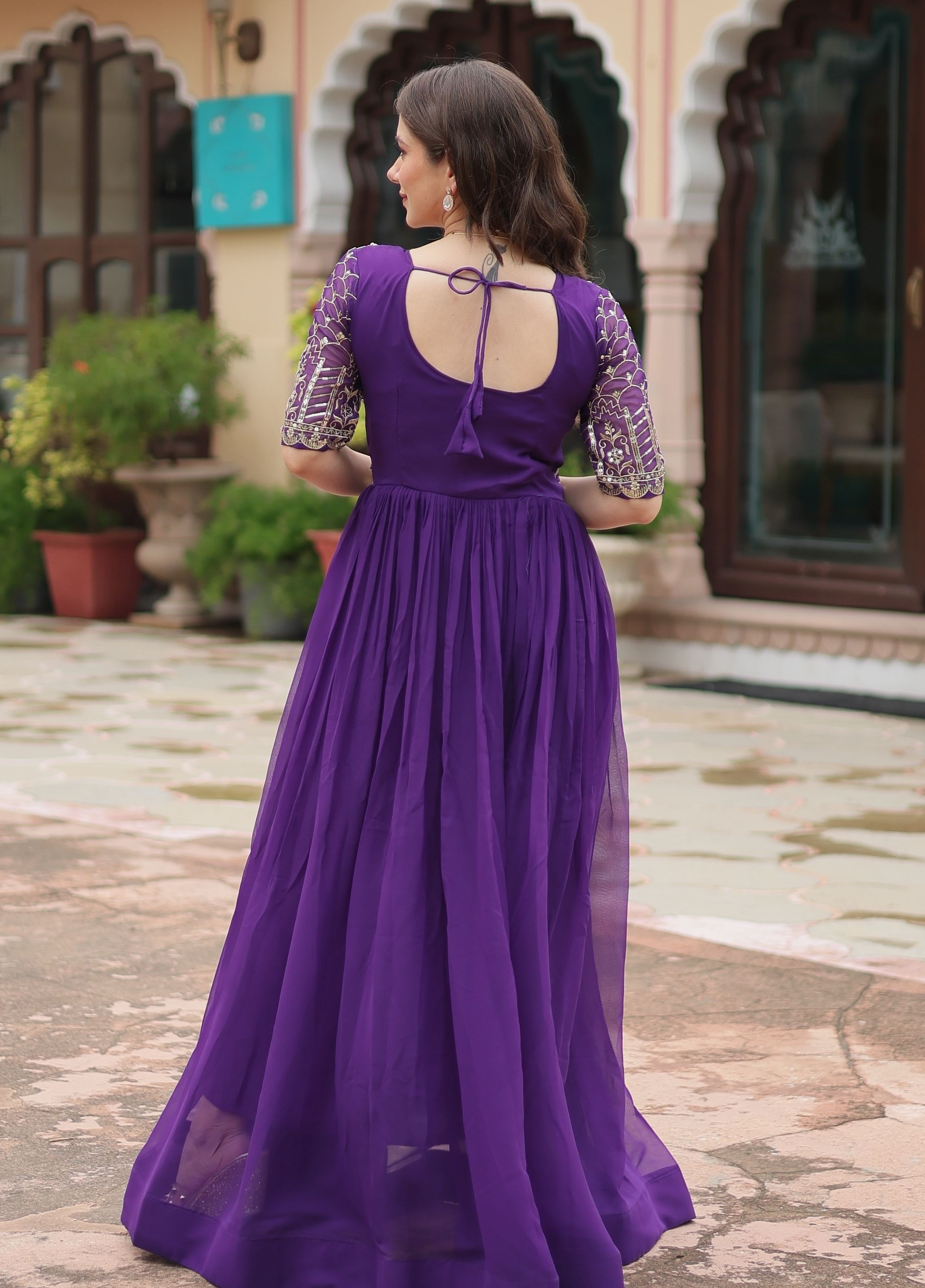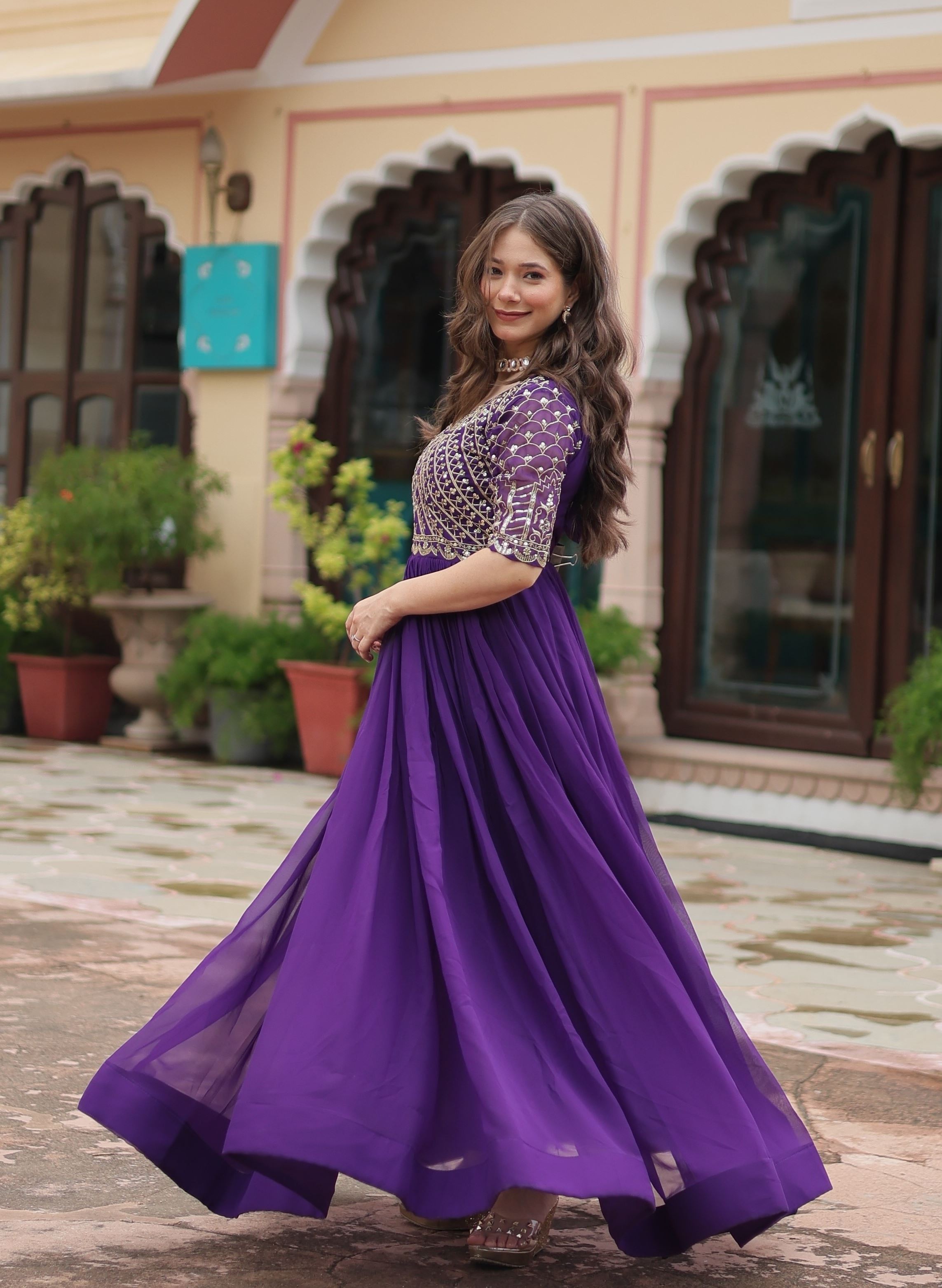 Purple Faux Blooming Gown With Embroidery Zari Sequins Work