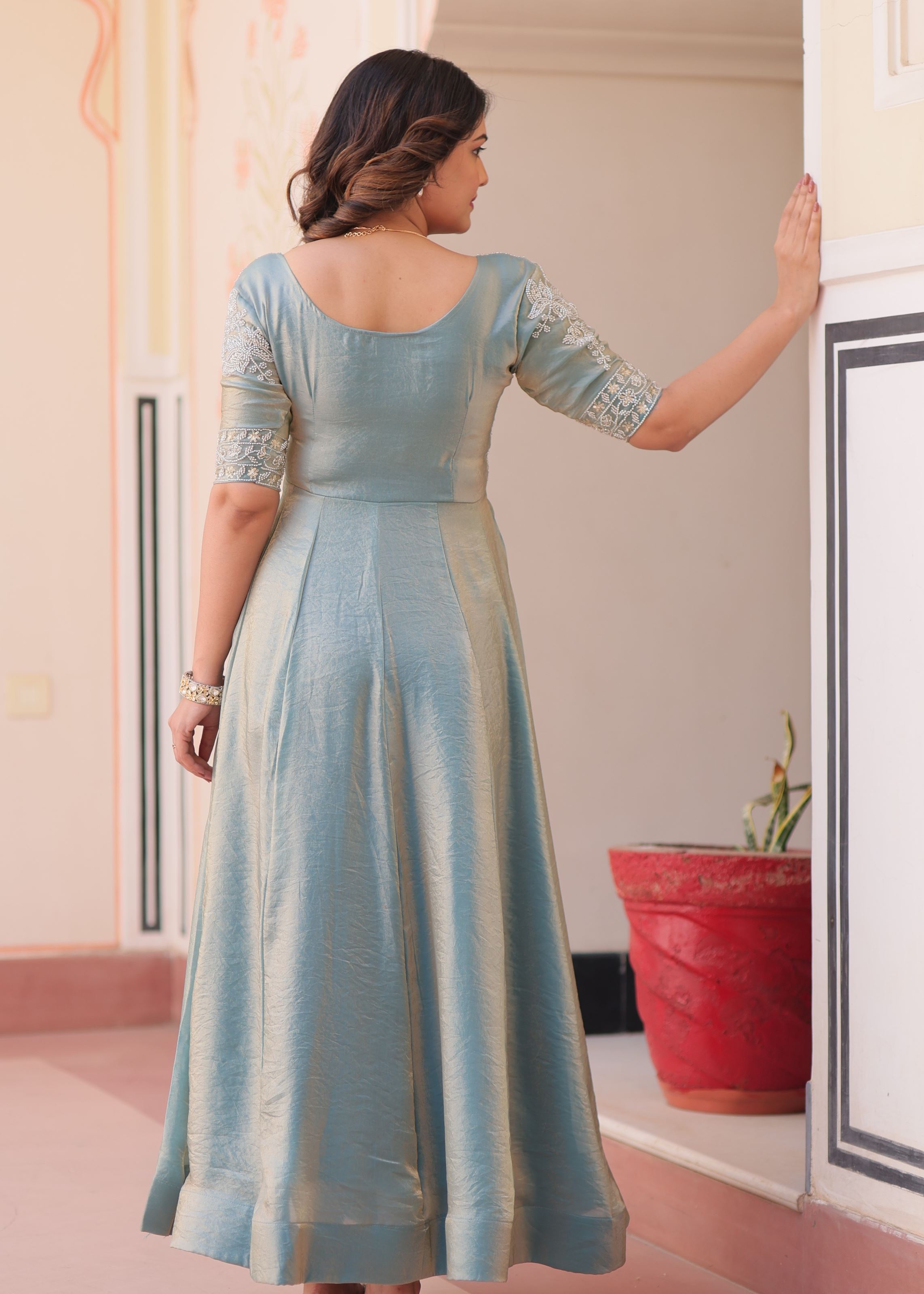 Sky Fendy Silk Gown With Beads Embroidered Work