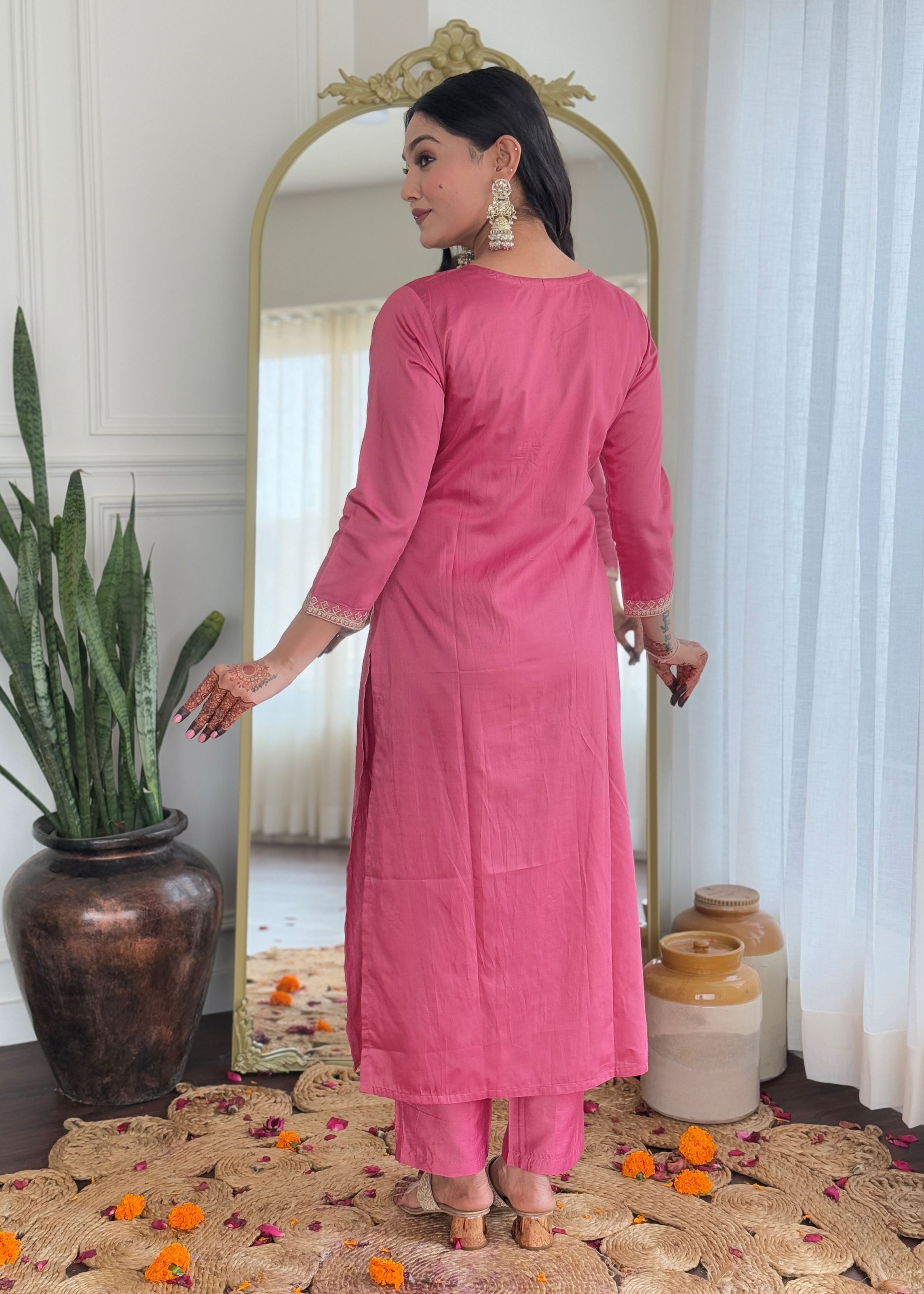 Gajri Viscose Silk Elegant Kurta Pant Set With Embroidery Work
