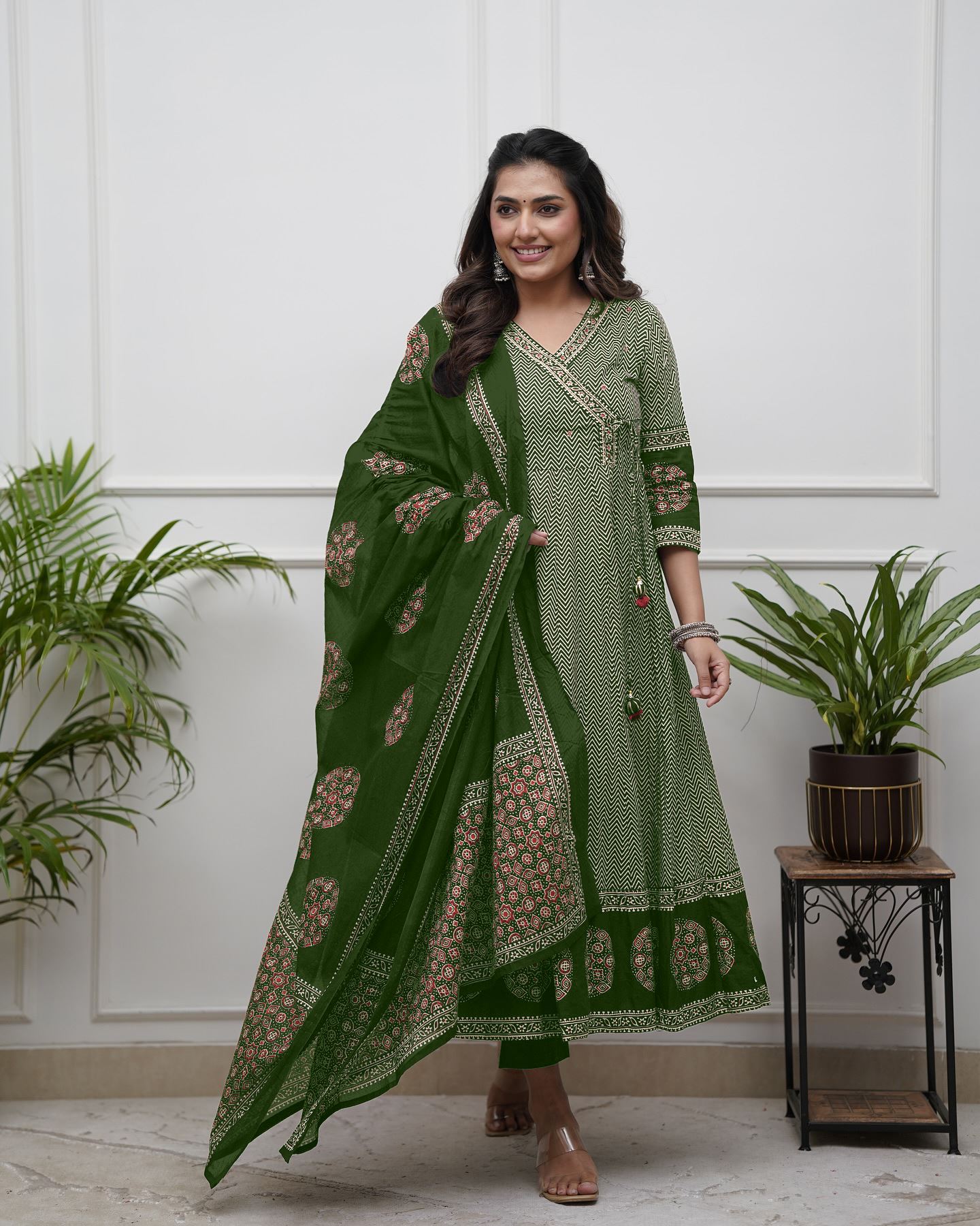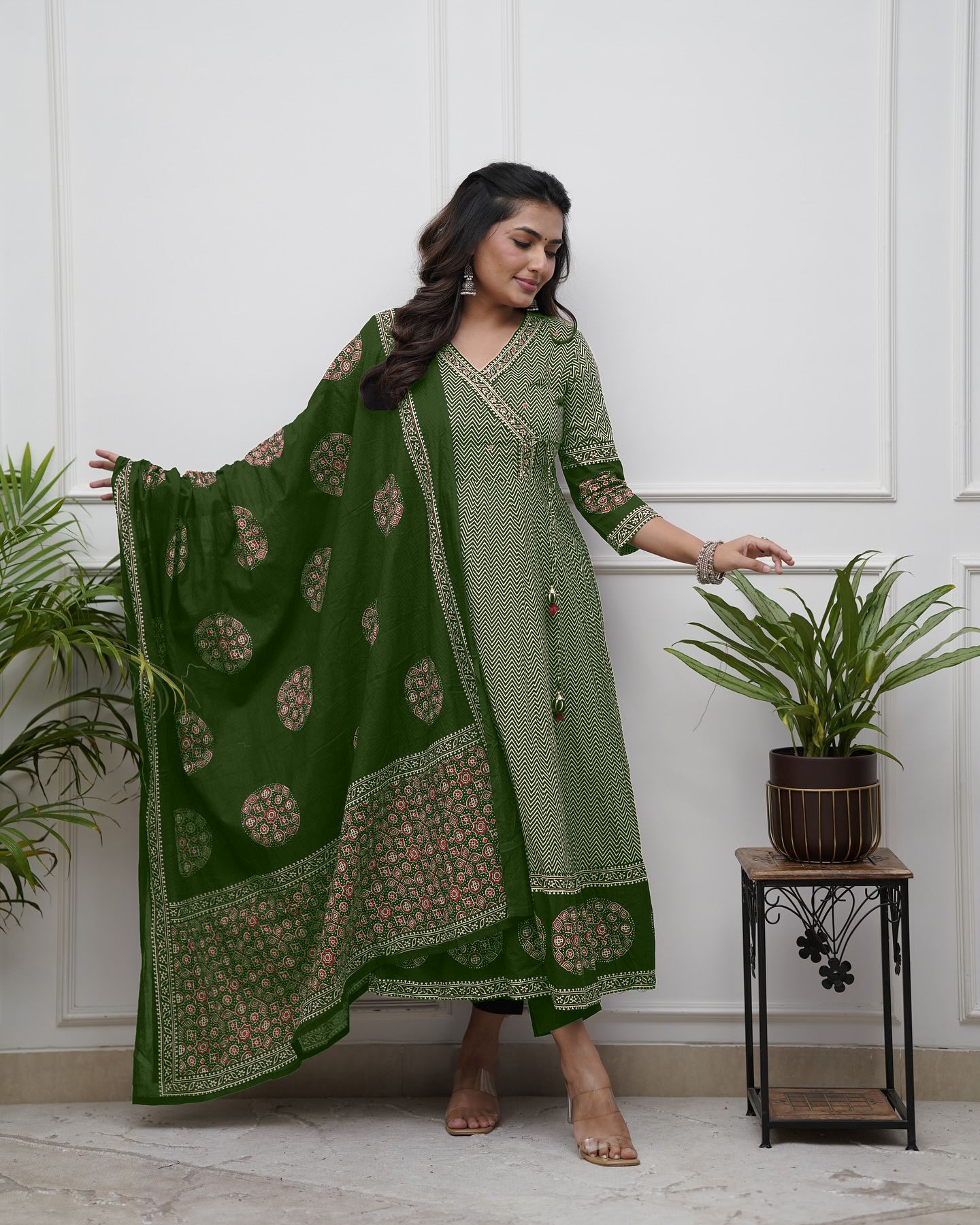 Infuse your wardrobe with nature-inspired charm in the Green Cotton Blend Kurta Pant with Print With Thread Embroidery Work from Aethnofit Fashions. Tailored from a soft cotton blend, this three-piece set offers breathable comfort while maintaining an effortlessly stylish aesthetic. The calming green hue lends a fresh, earthy vibe—perfect for casual outings, festive moments, or even ethnic workwear.