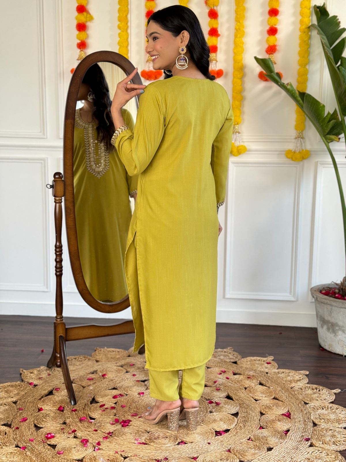 Mustard Kurta Pant Set with Heavy Thread Embroidery Work