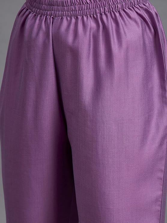 Purple Chinon Viscose Kurta Pant Set With Embroidery Work