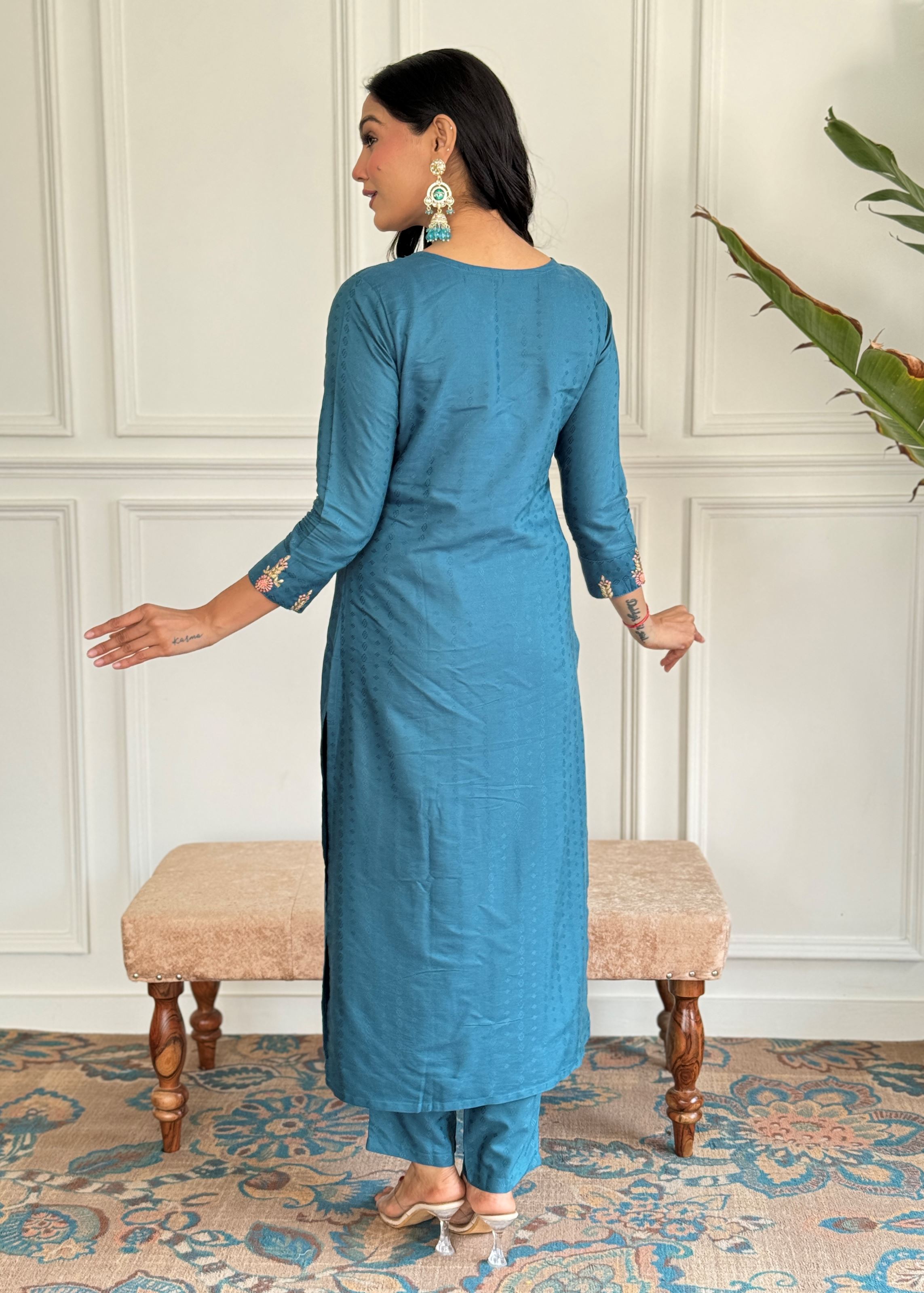 Rama Viscose Blend Elegant Kurta Pant Set With Embroidery Work