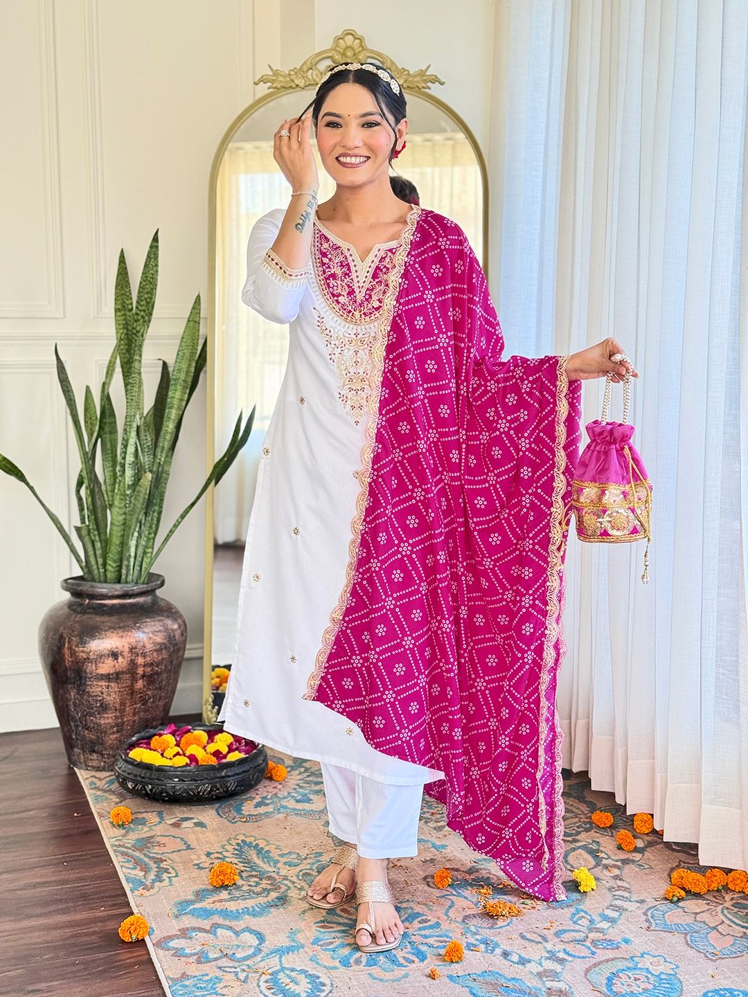 White BSY Viscose Elegant Kurta Pant Set With Embroidery Work