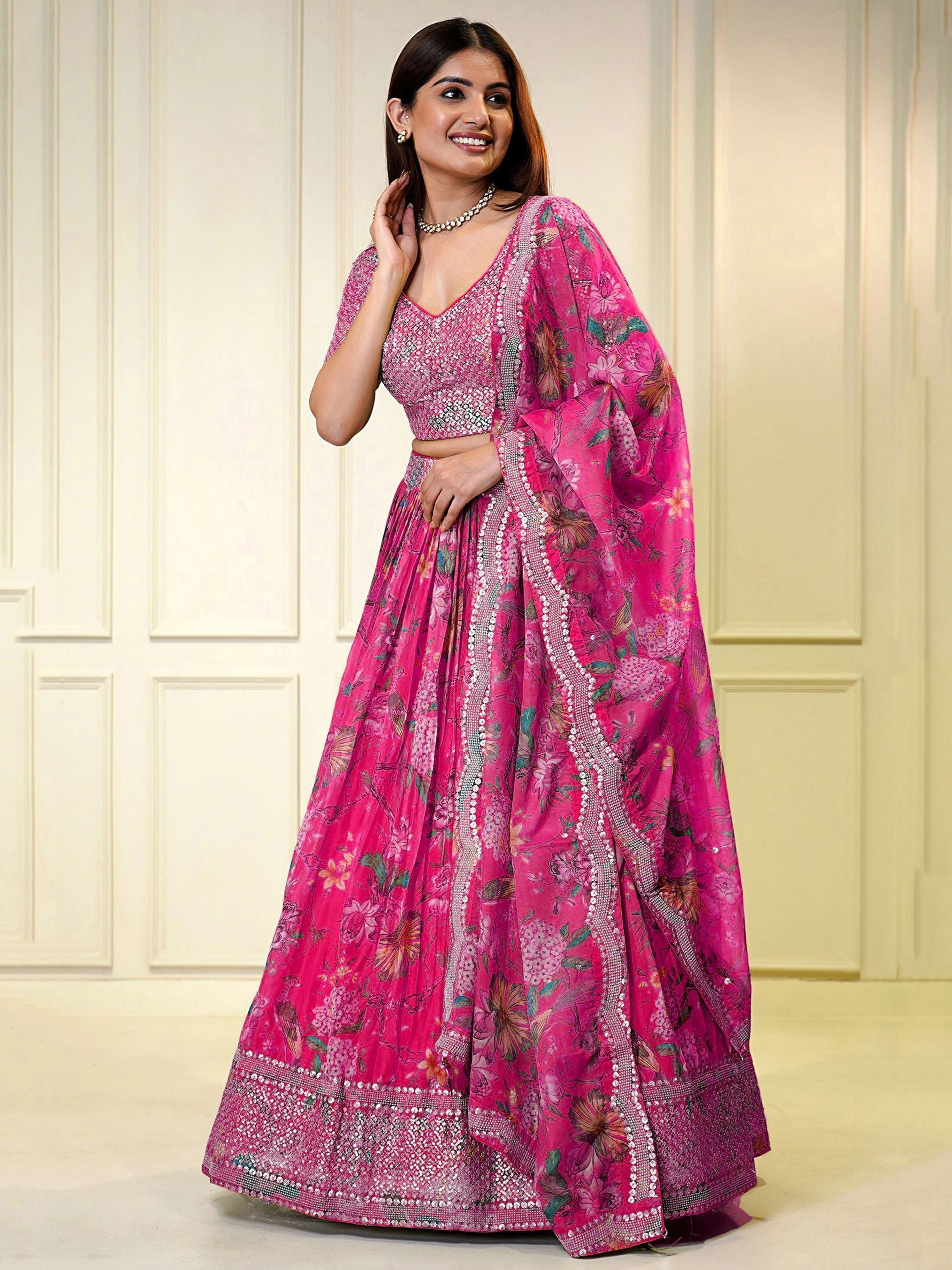 Pink Sequins Organza Engagement Wear Lehenga Choli