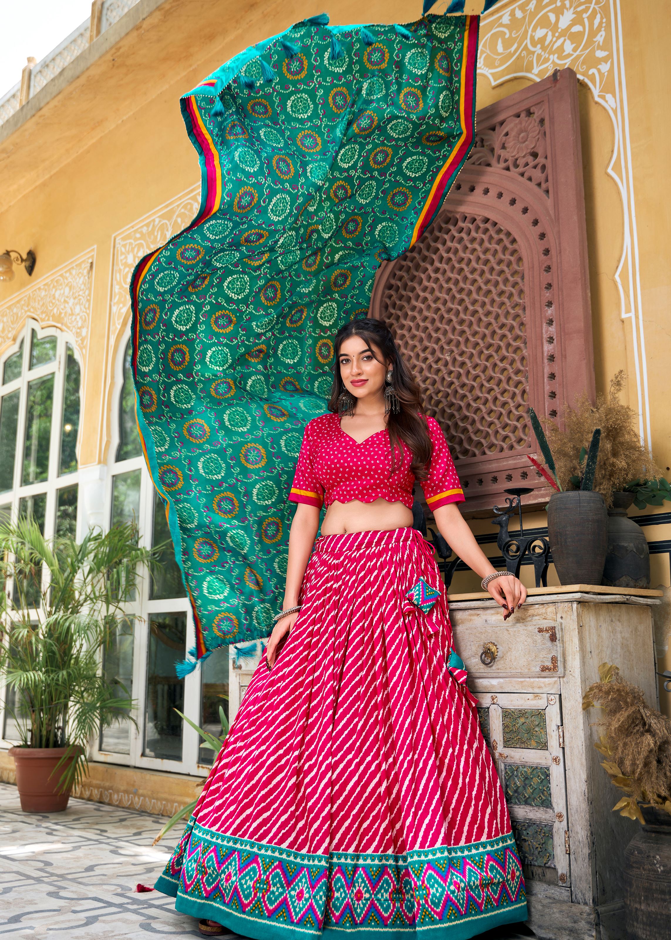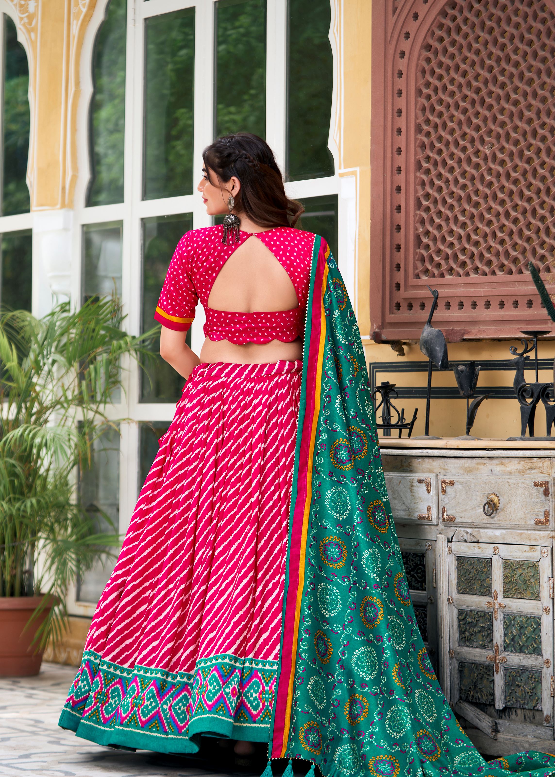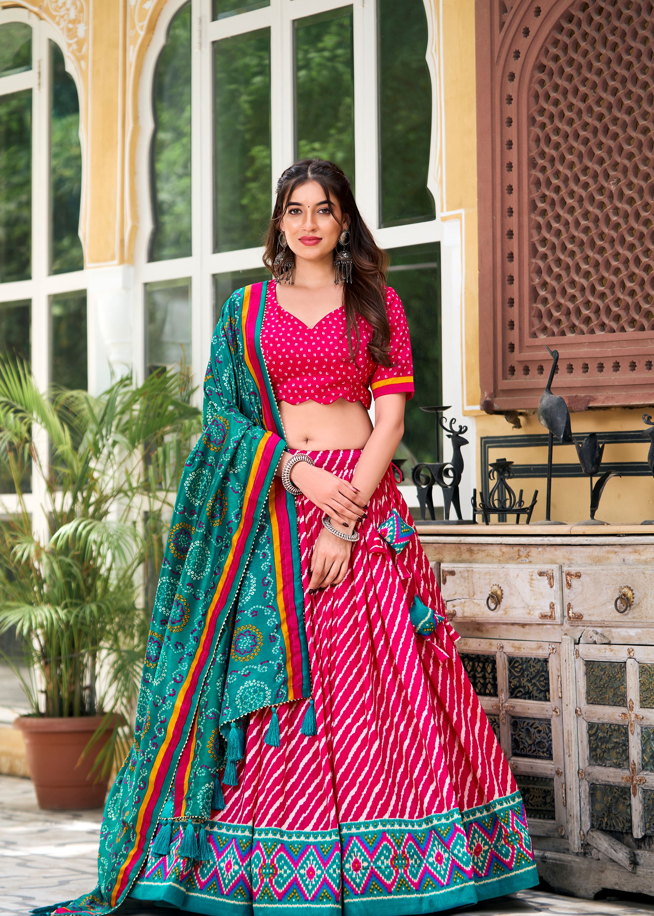 Pink Tussar Silk Lehenga with Leheriya & Patola Elegance