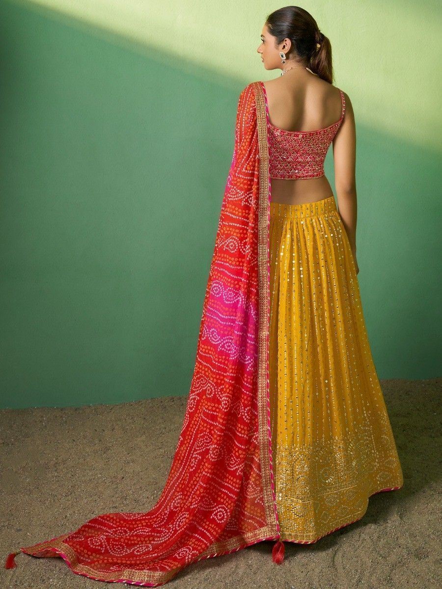 Alluring Yellow Sequins Georgette Haldi Wear Lehenga Choli With Dupatta