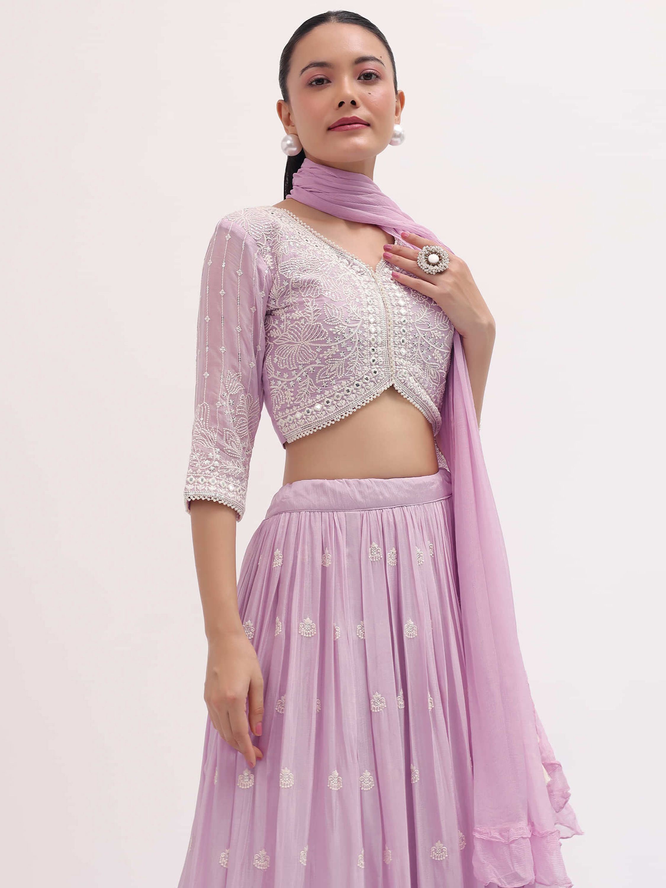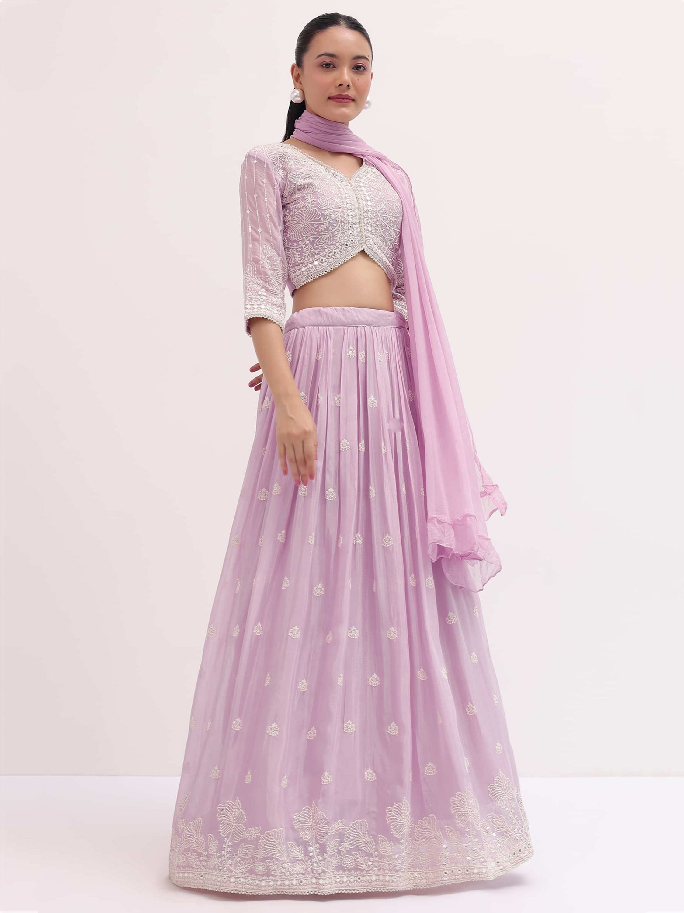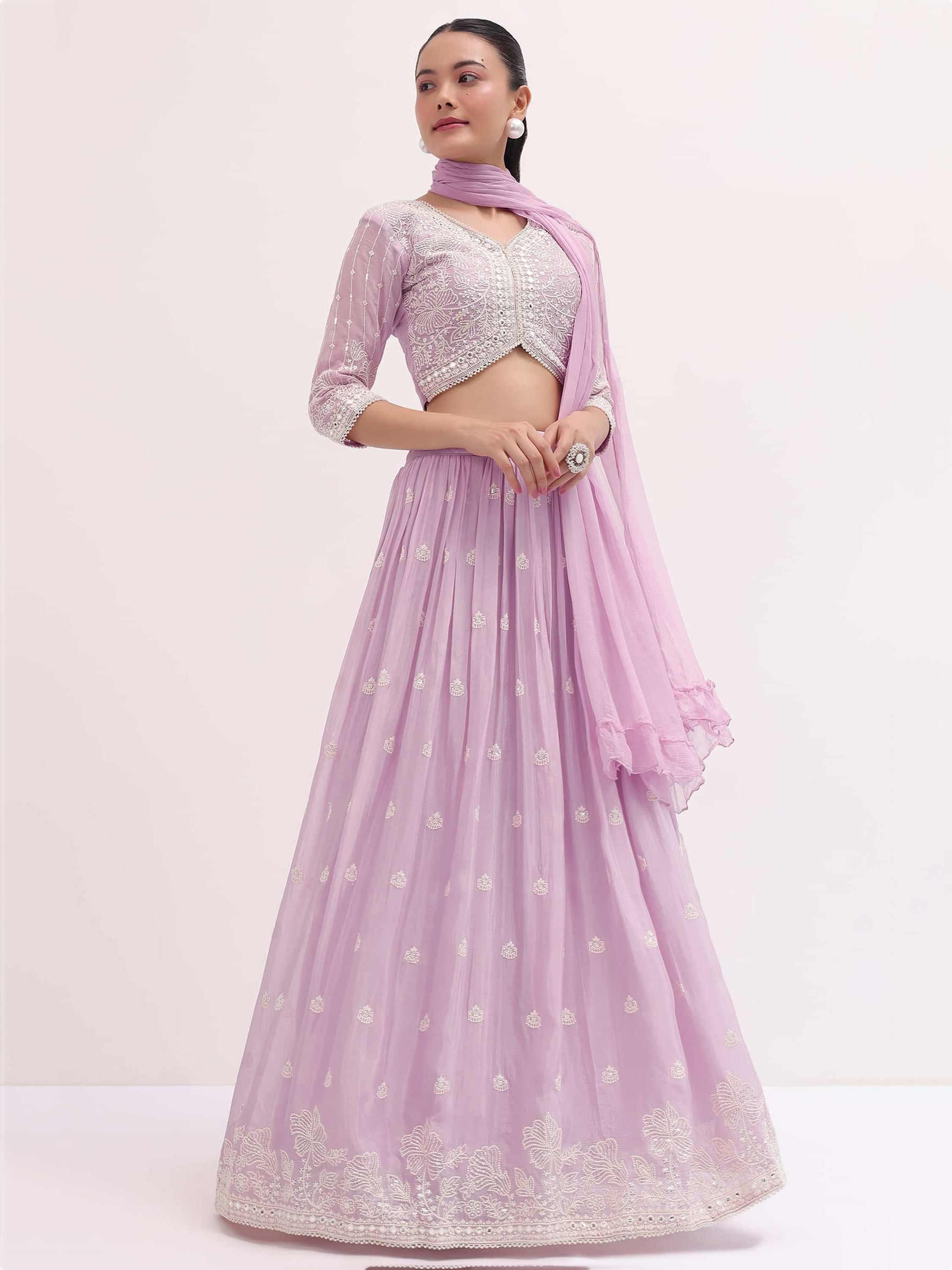Attractive Pink Thread Embroidered Georgette Event Wear Lehenga Choli