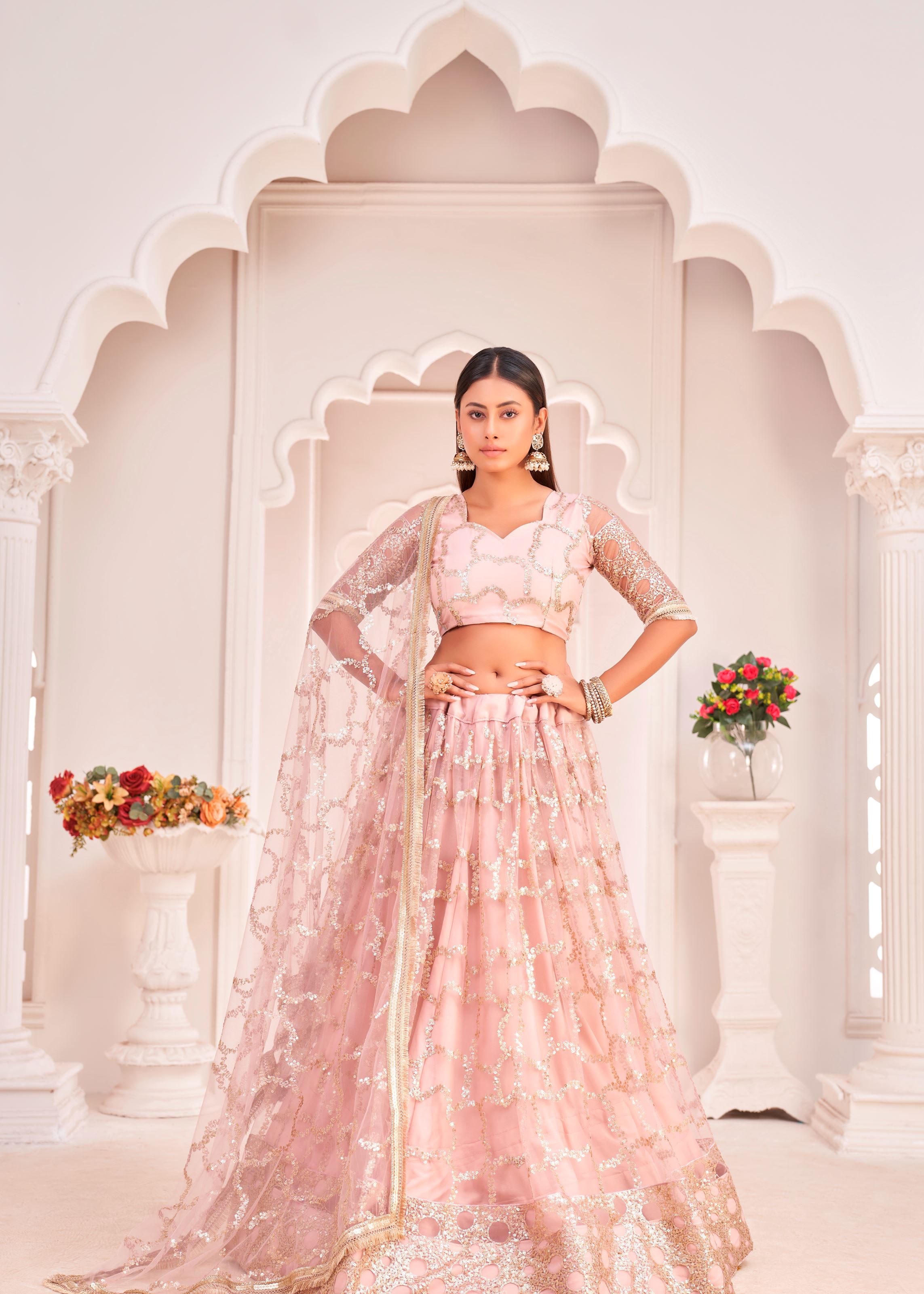 Baby Pink Butterfly Net Lehenga Choli with Thread and Zari Sandwich Sequin Embroidery Work