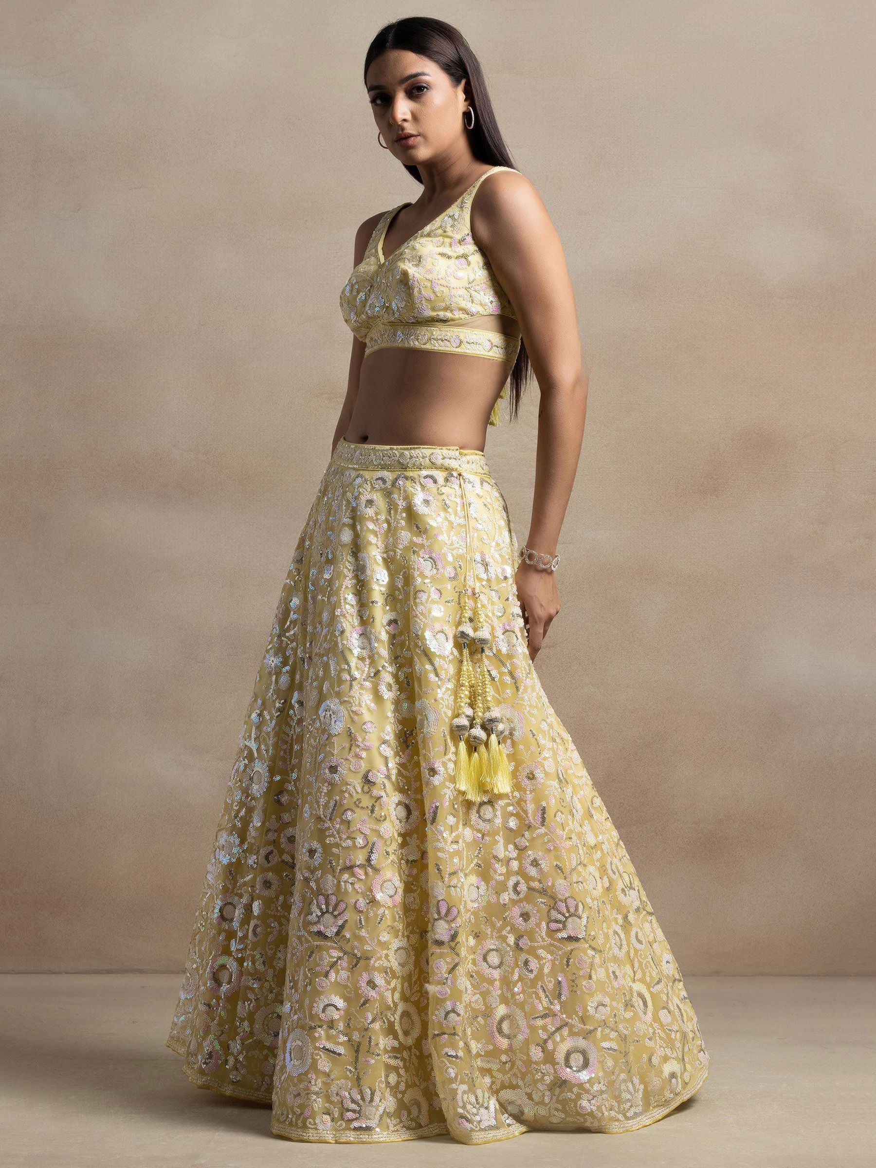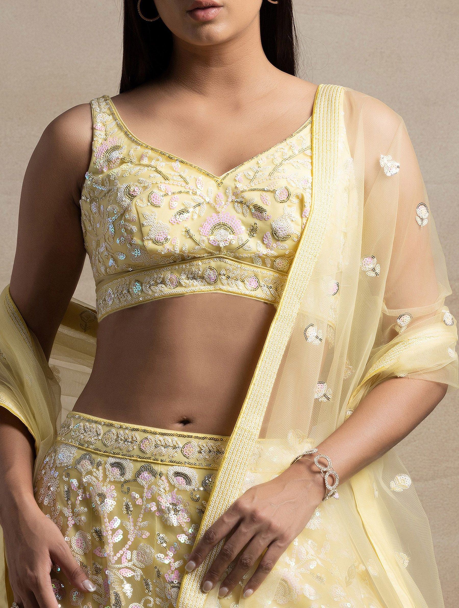 Beautiful Yellow Sequins Net Party Wear Lehenga Choli With Dupatta
