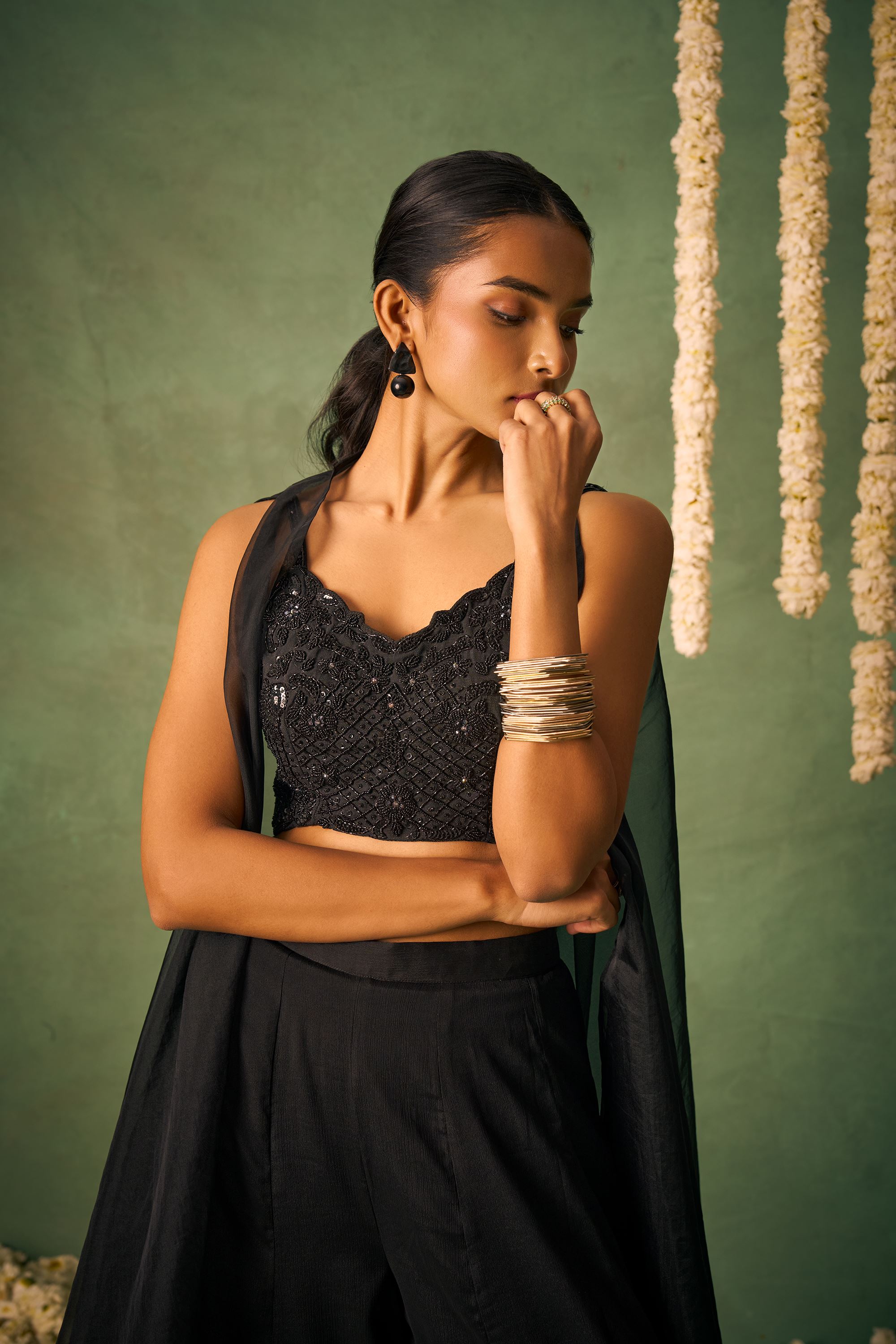 Black Chinnon Lehenga with Pure Khatli Work Blouse