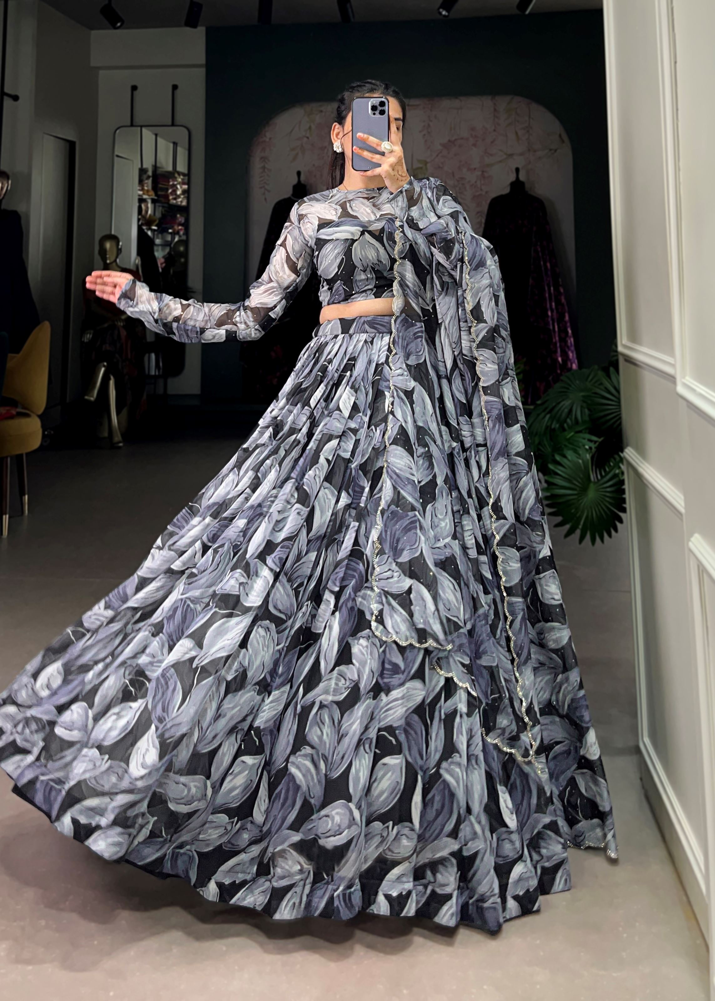 Designed for the modern muse who loves tradition with a twist, this ensemble fits seamlessly into our 2025 Designer Party Wear Lehengas collection. Ideal for those looking to Buy Indian Lehengas Online or explore Luxury Lehengas with global appeal, this outfit comes with $1 Custom Stitching and World Wide Shipping.