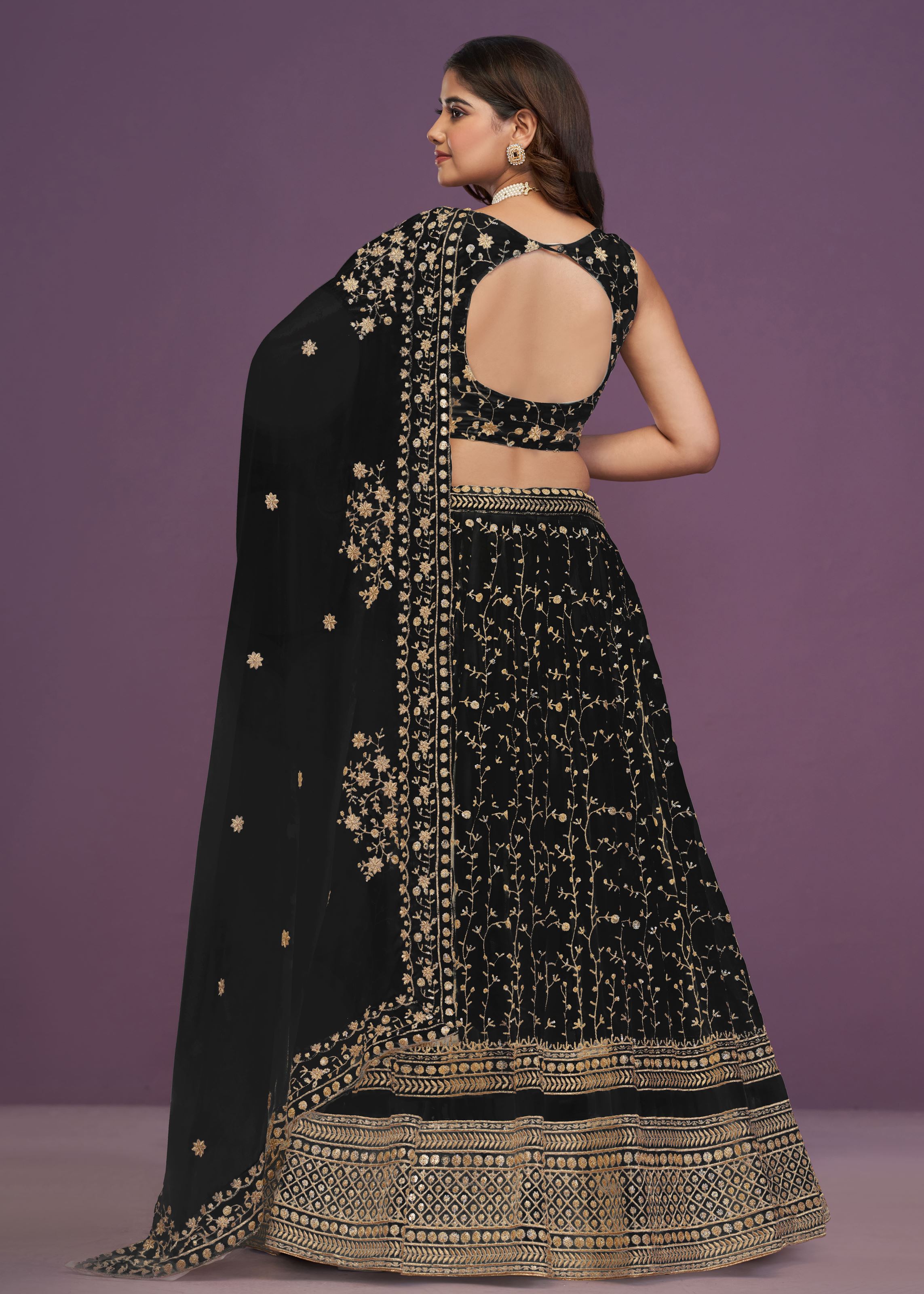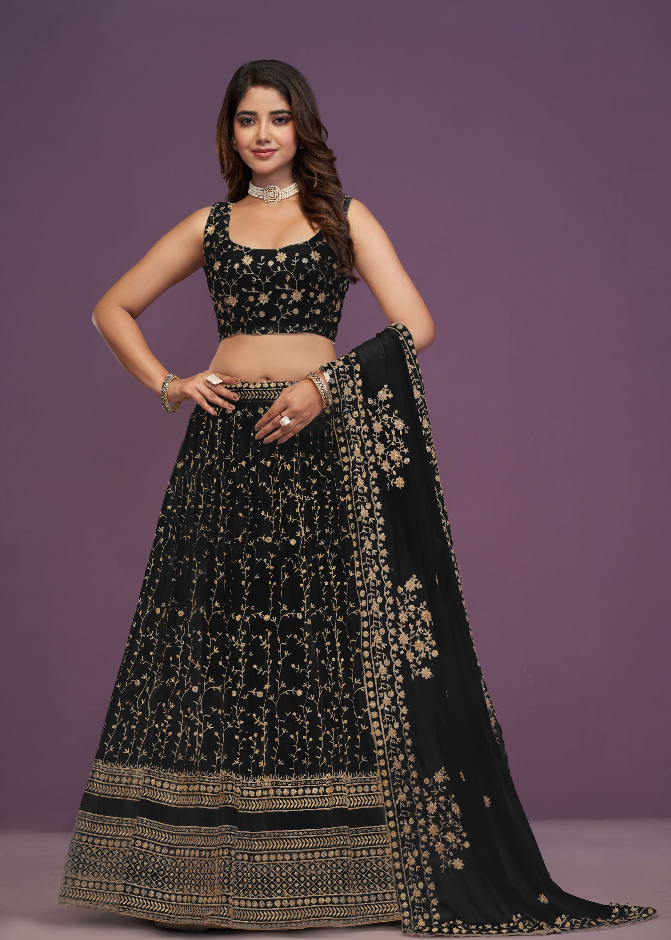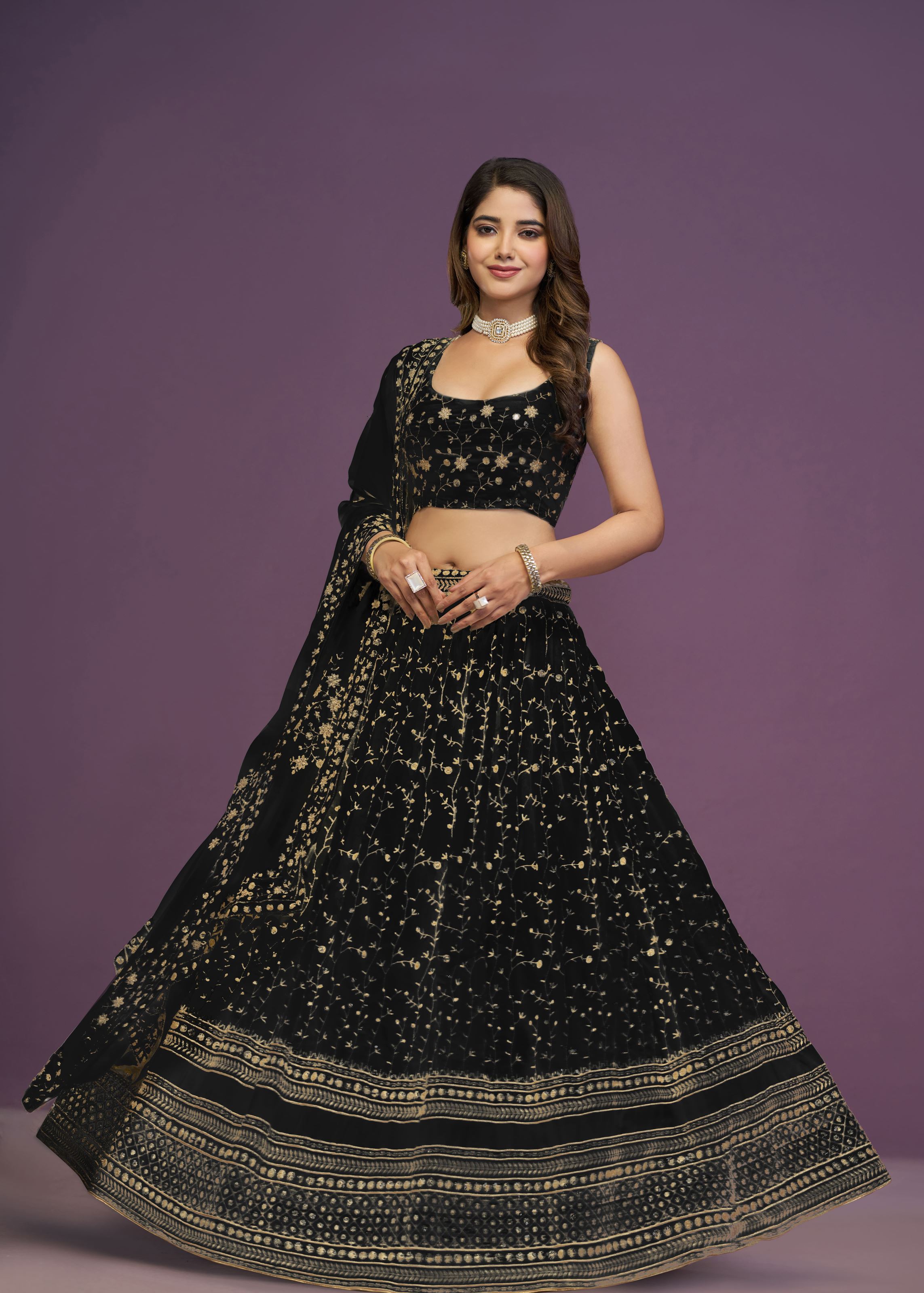 Black Georgette Zari Sequence Embroidery Work Lehenga Choli