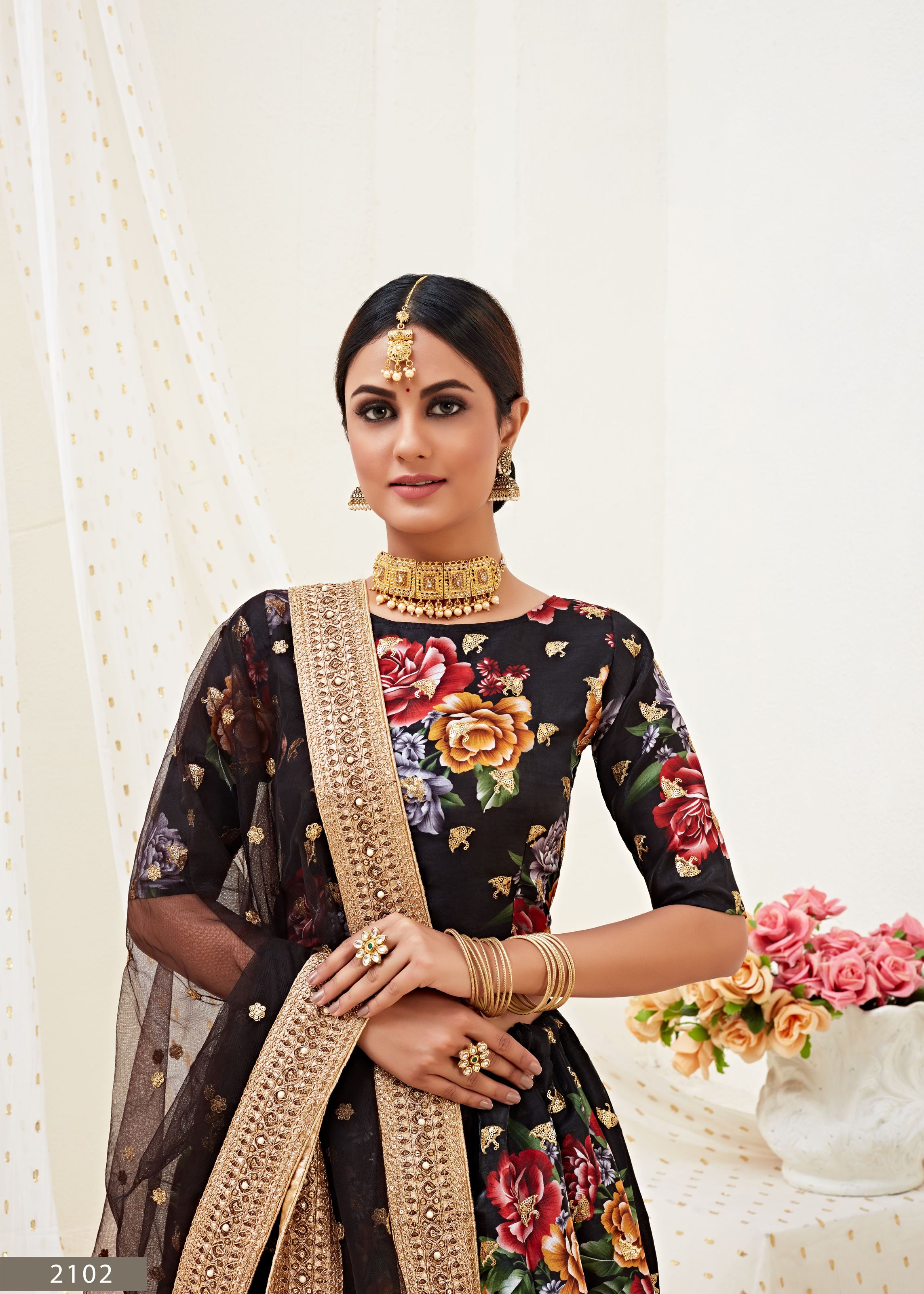 The choli, made from the same satin silk in matching black, mirrors the intricate artistry, making the set look cohesive and gracefully put together. Styled for modern elegance with traditional roots, this ensemble is perfect for receptions, cocktail parties, and upscale cultural gatherings. The black net dupatta adds an ethereal finish, lightly embellished to complement the lehenga’s grandeur.