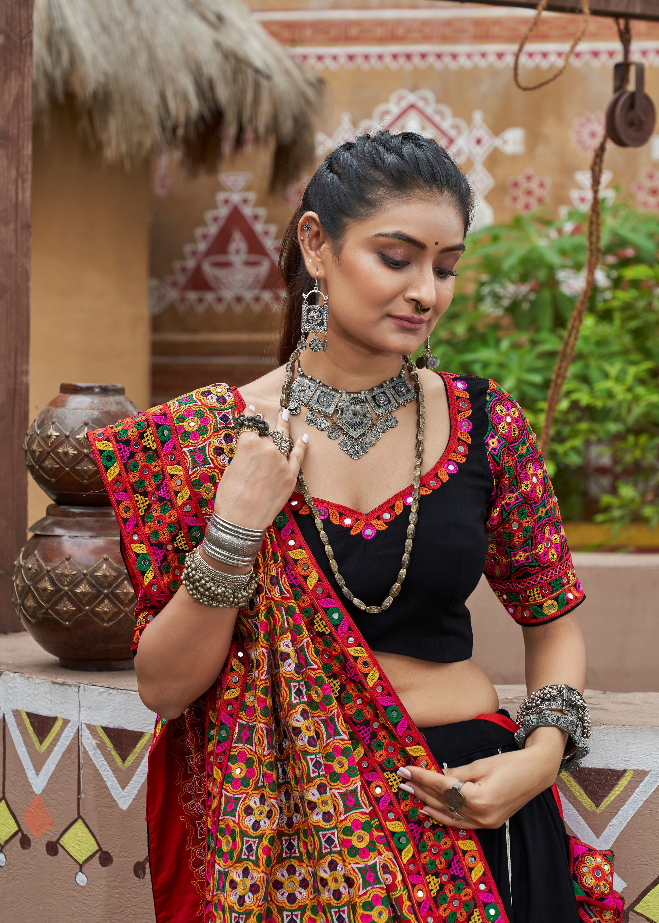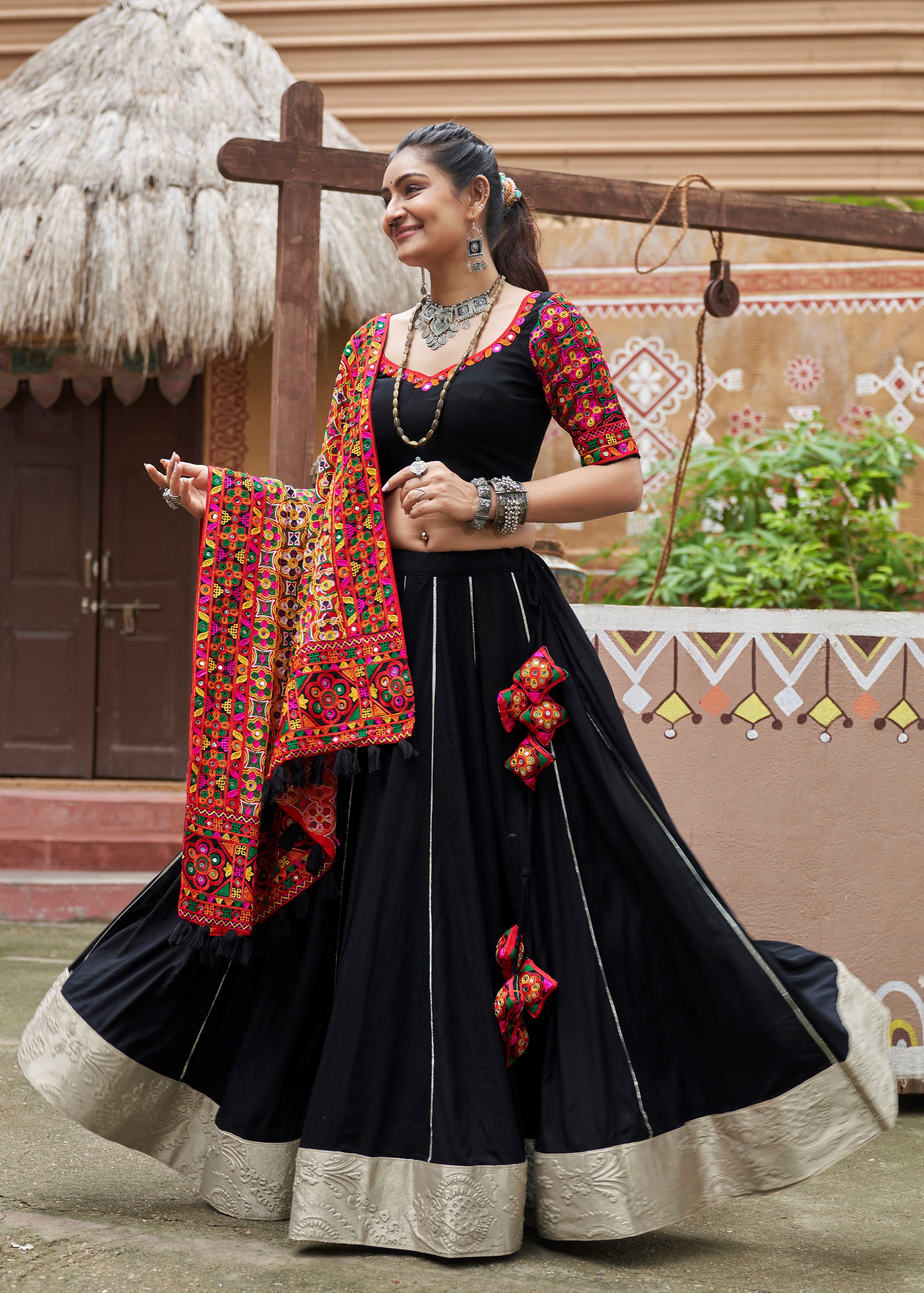 The solid black lehenga is designed with clean lines and a flattering fall, making it easy to accessorize for any occasion. Paired with a matching black Rayon blouse, the outfit ensures a cohesive and contemporary look. The set is completed with a lightweight black Rayon dupatta, offering a soft drape that enhances the simplicity of the design.