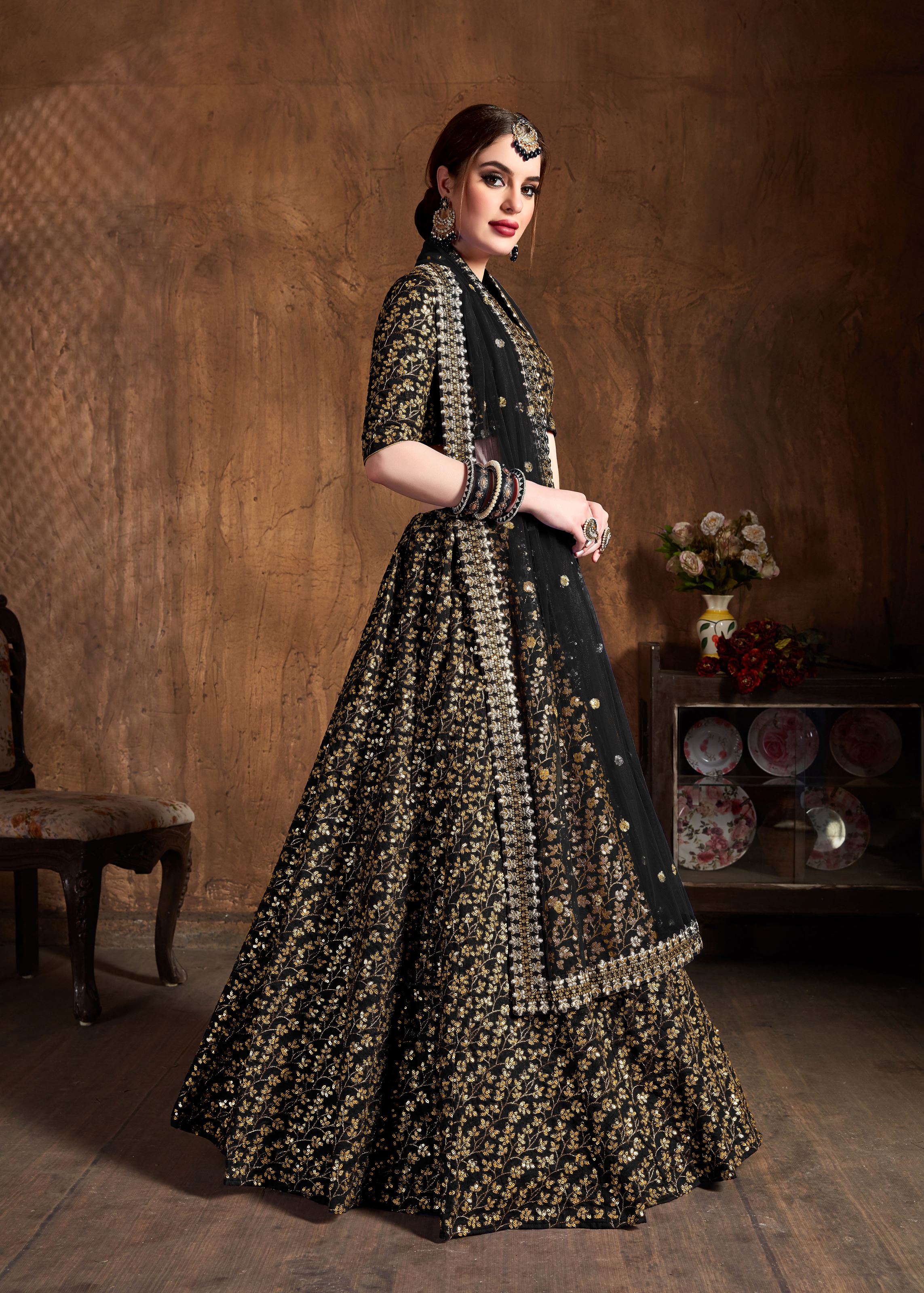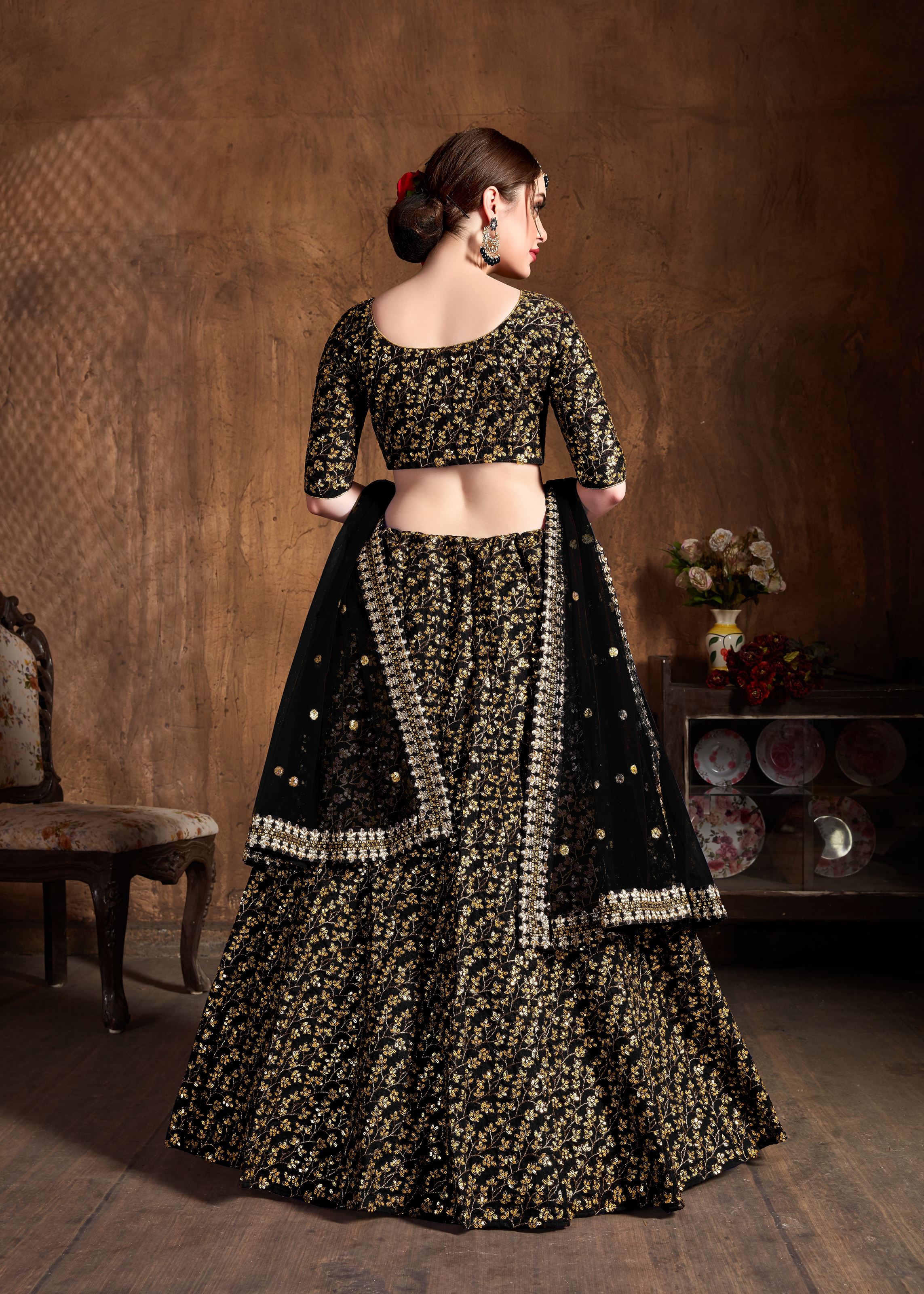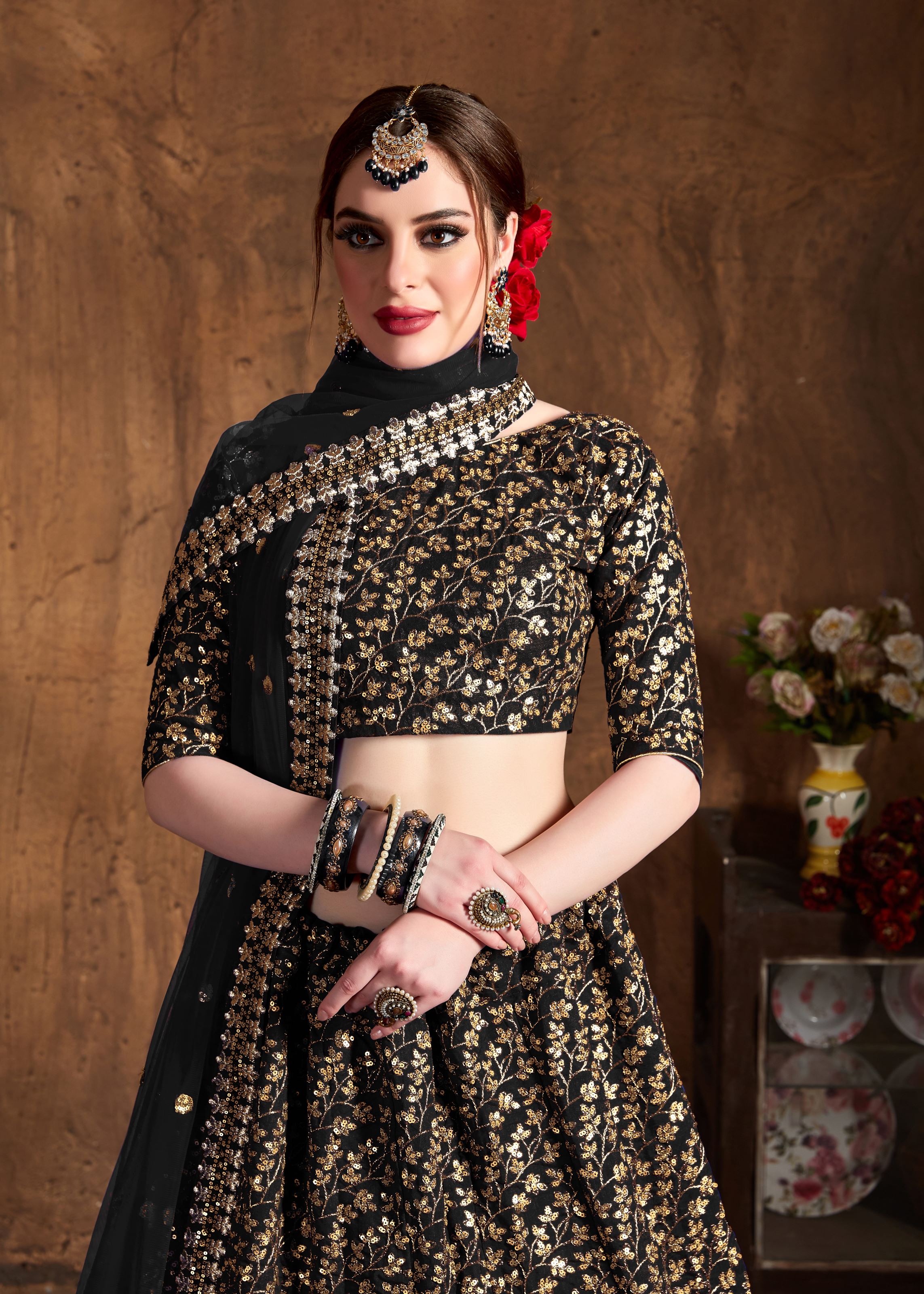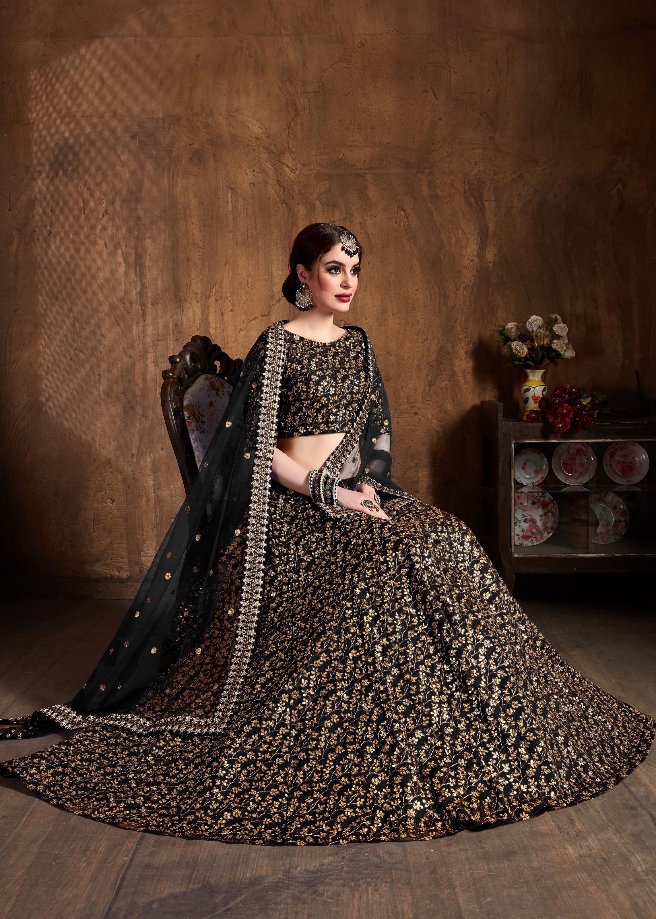 Black Lehenga Choli With Zari And Sequins Heavy Embroidery Work