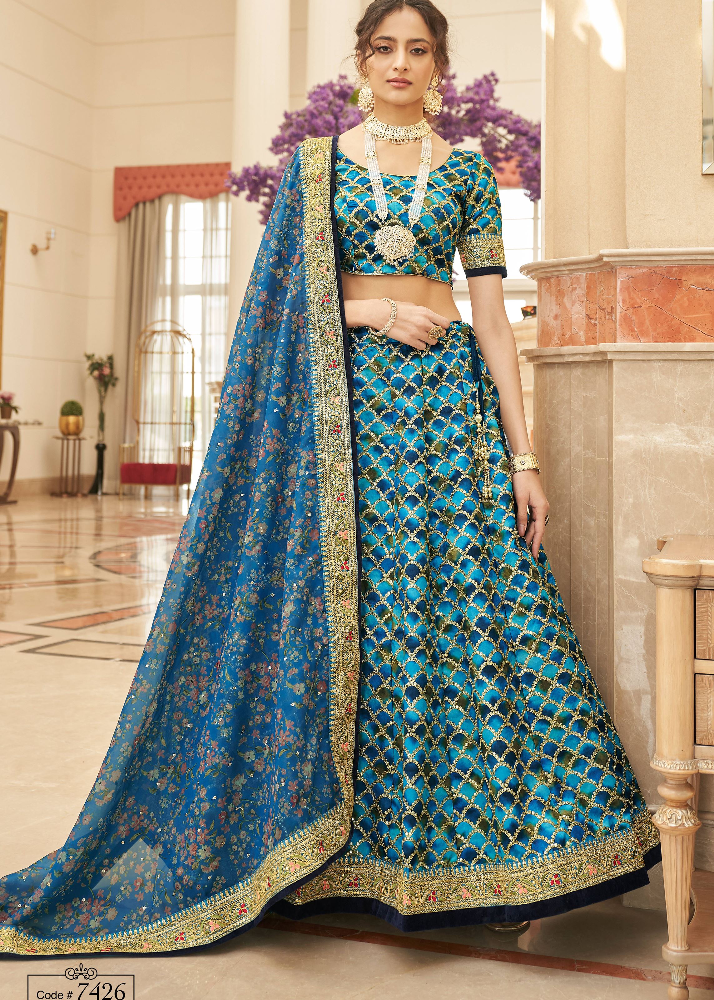 Blue Lehenga Choli With Thread, Zari, Dori And Sequins Embroidery Work