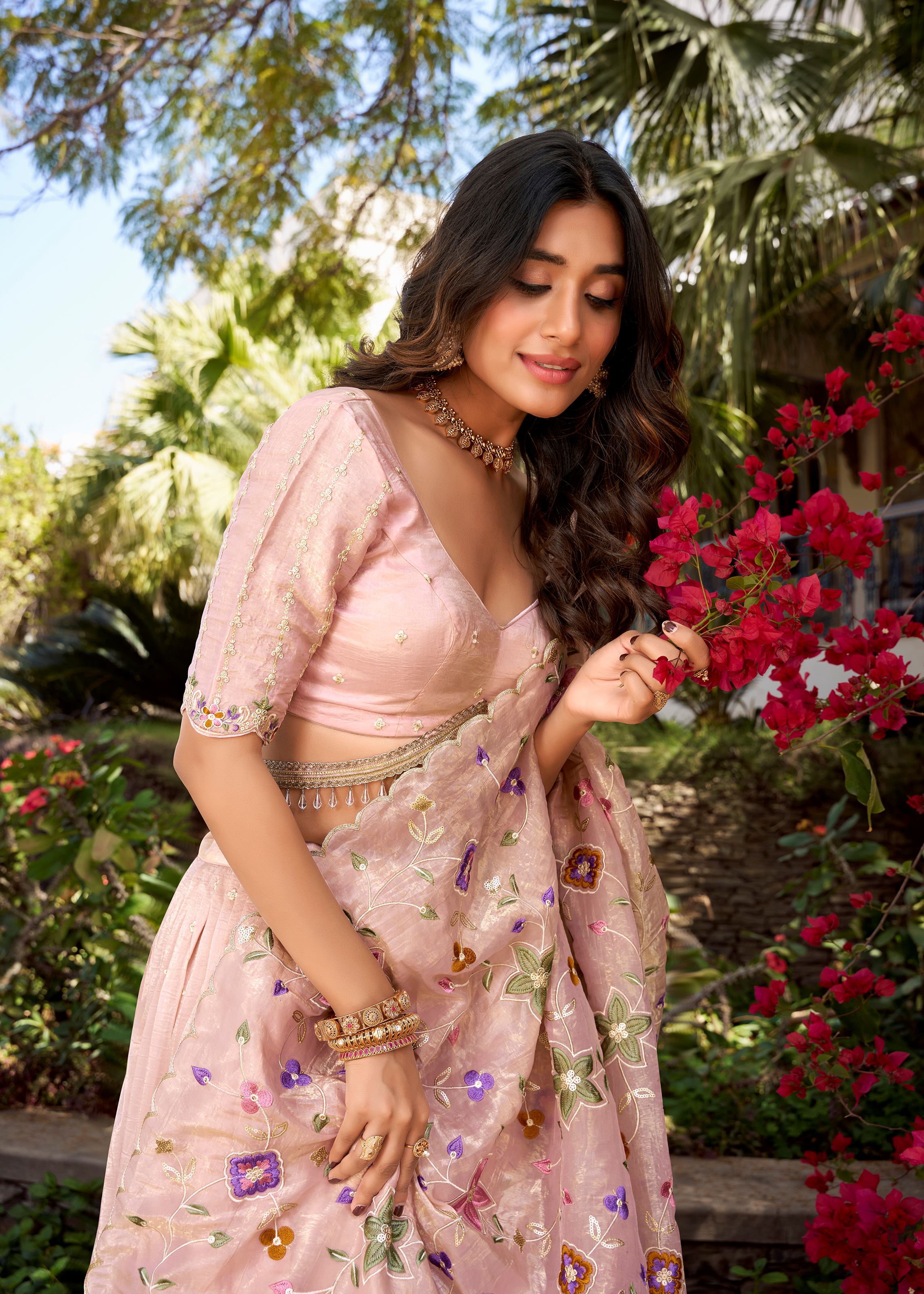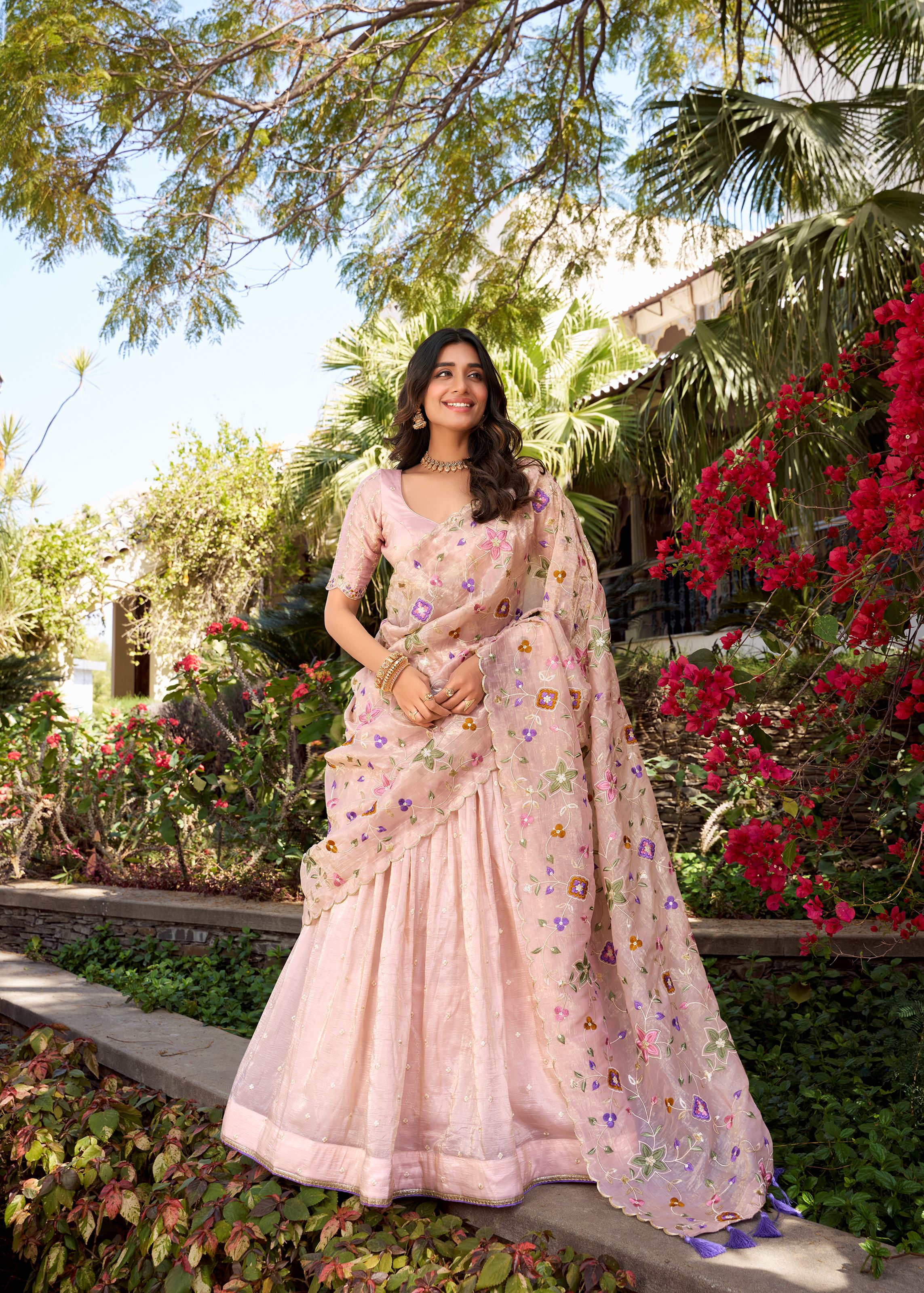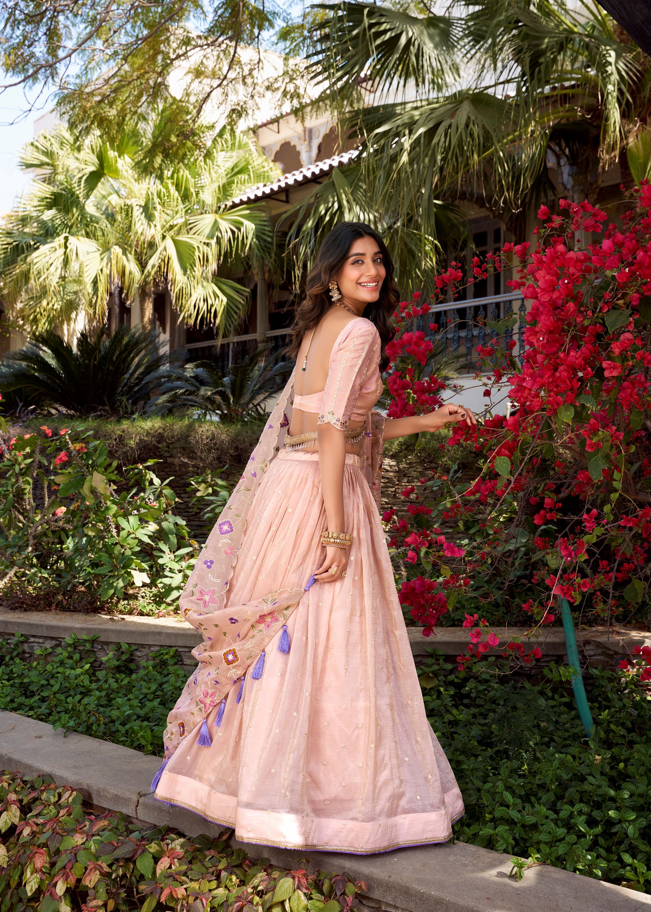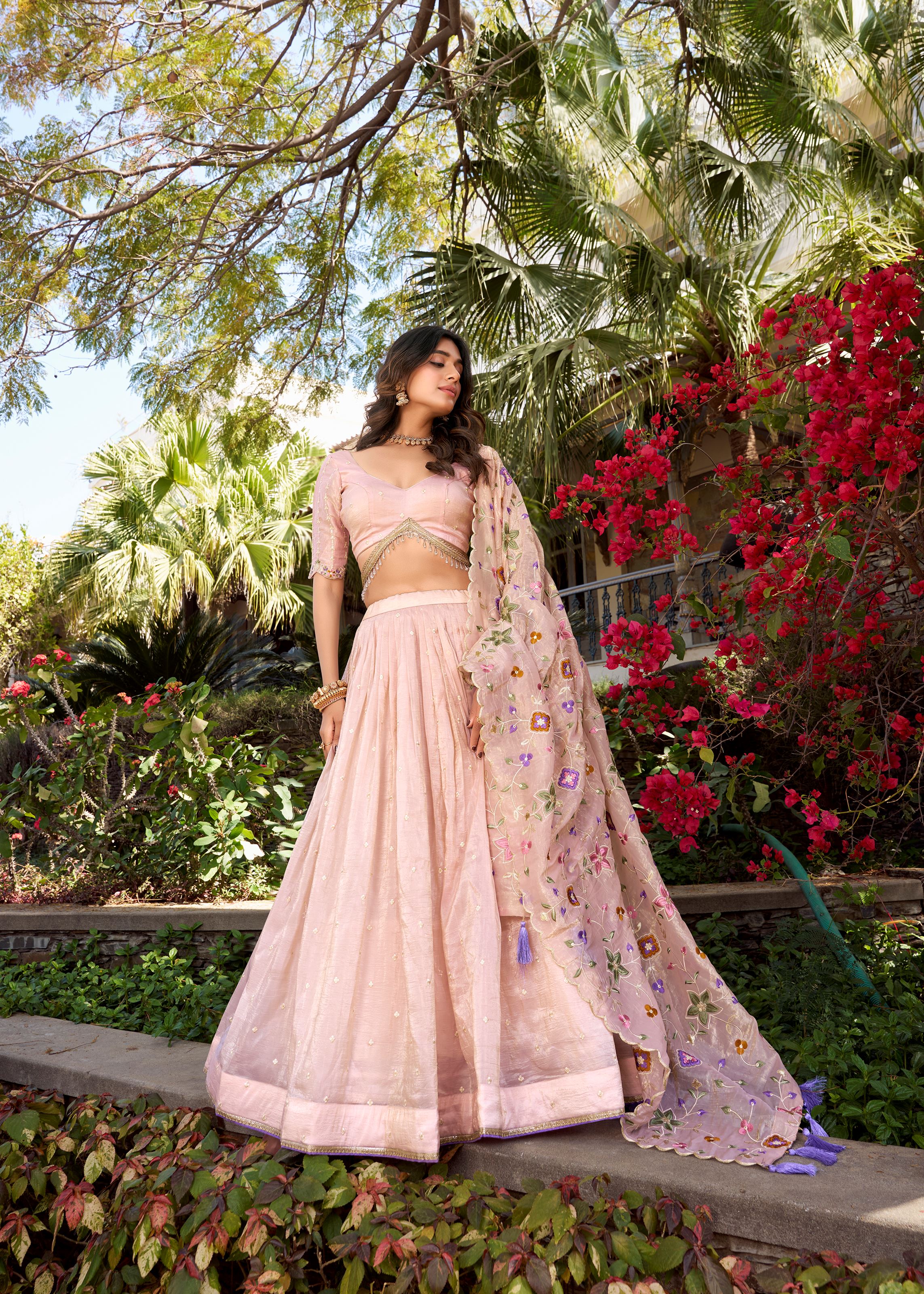 Blush Beauty Light Pink Lehenga with Gold Crush Sequins & Buttie Embroidery
