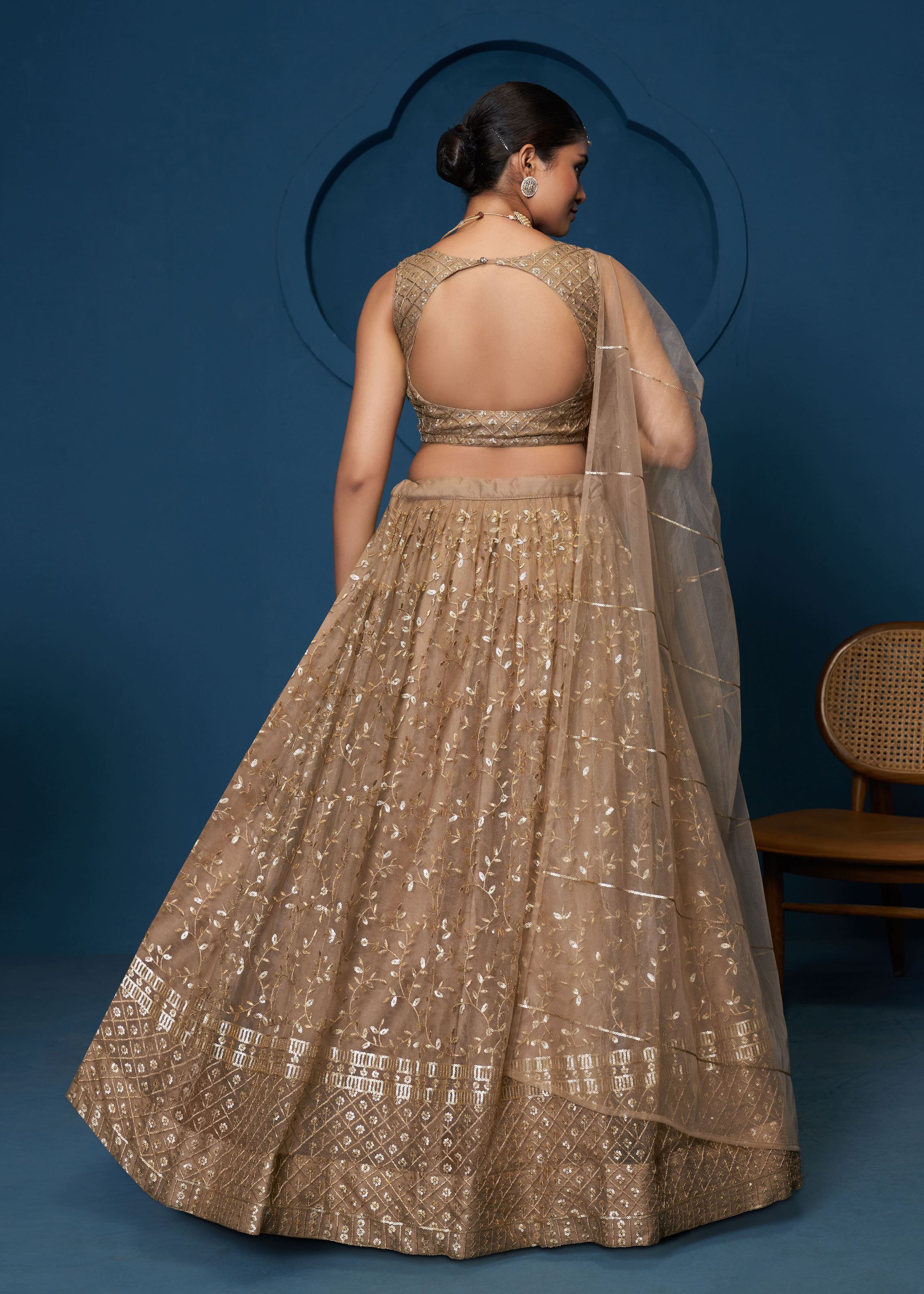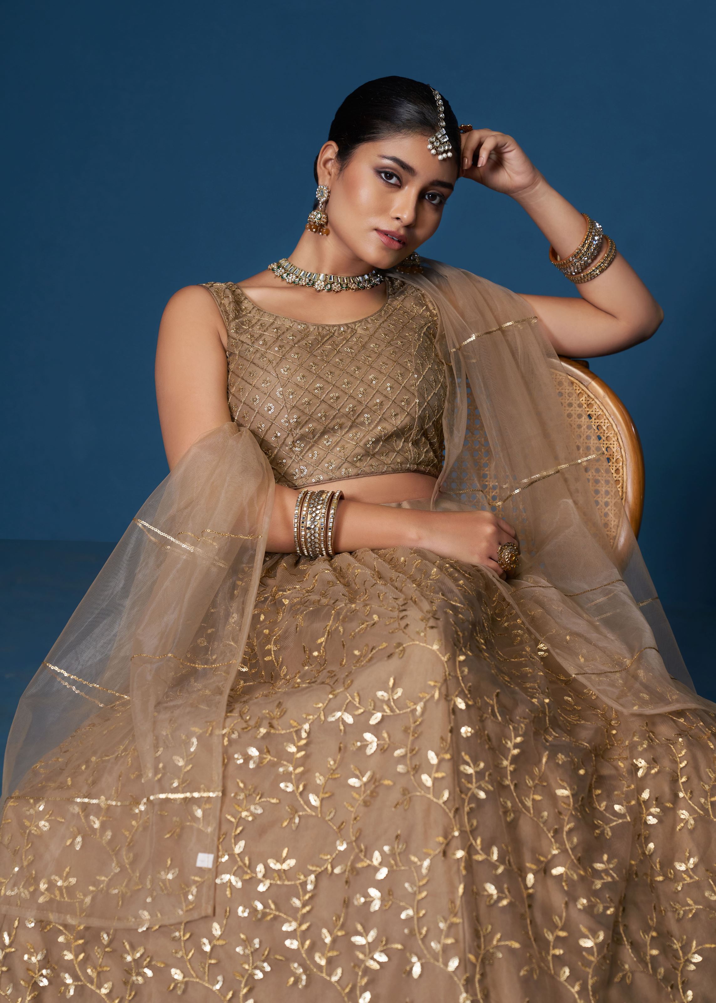 Brown Sequence Zari Embroidery Work Lehenga Choli