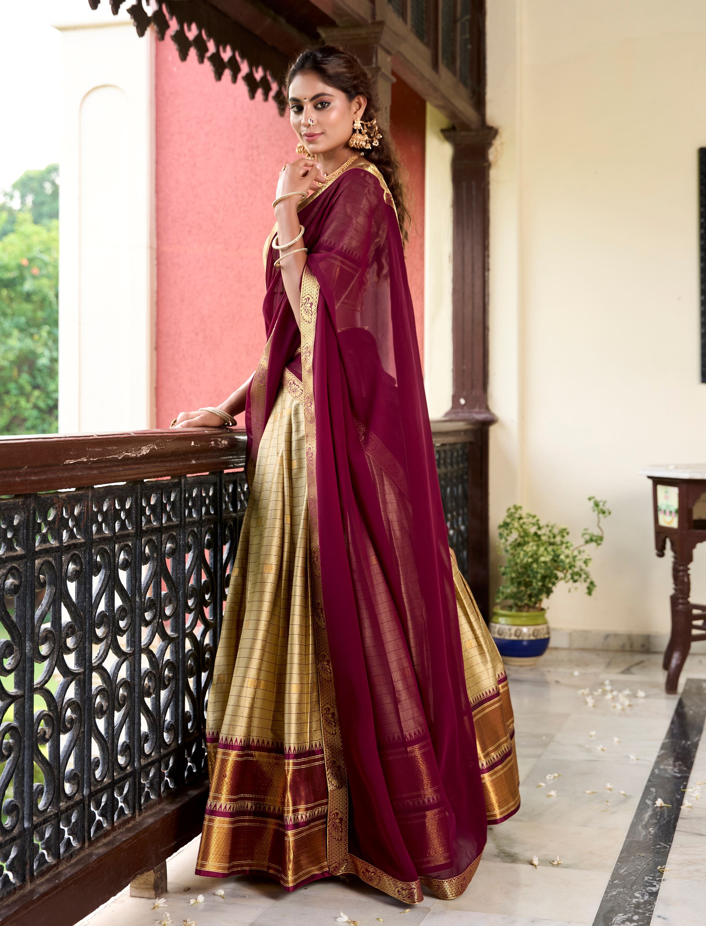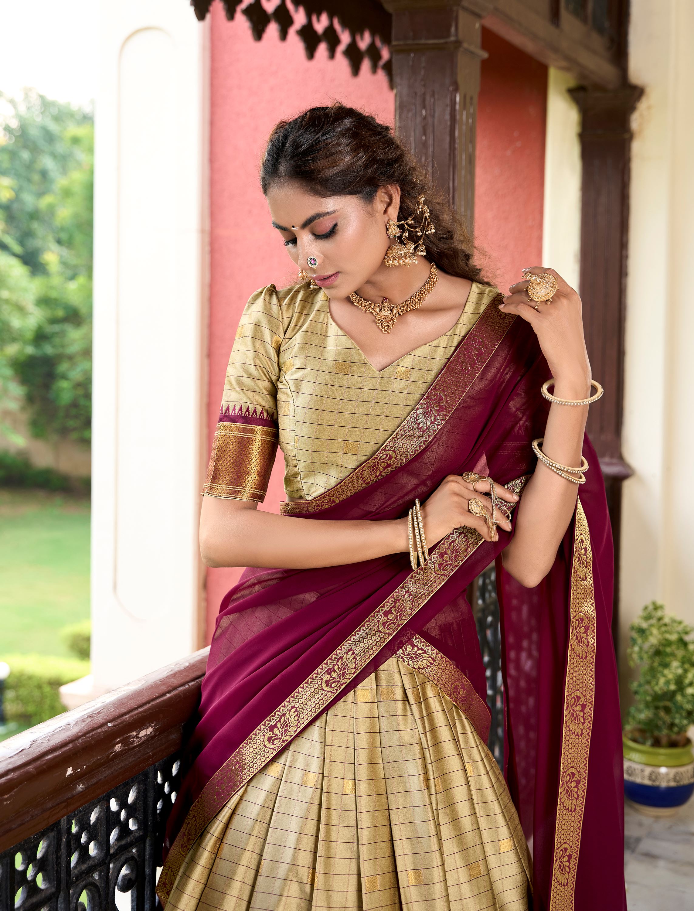 Cotton Silk Chiku Lehenga With Traditional Paithani Weave Detailing