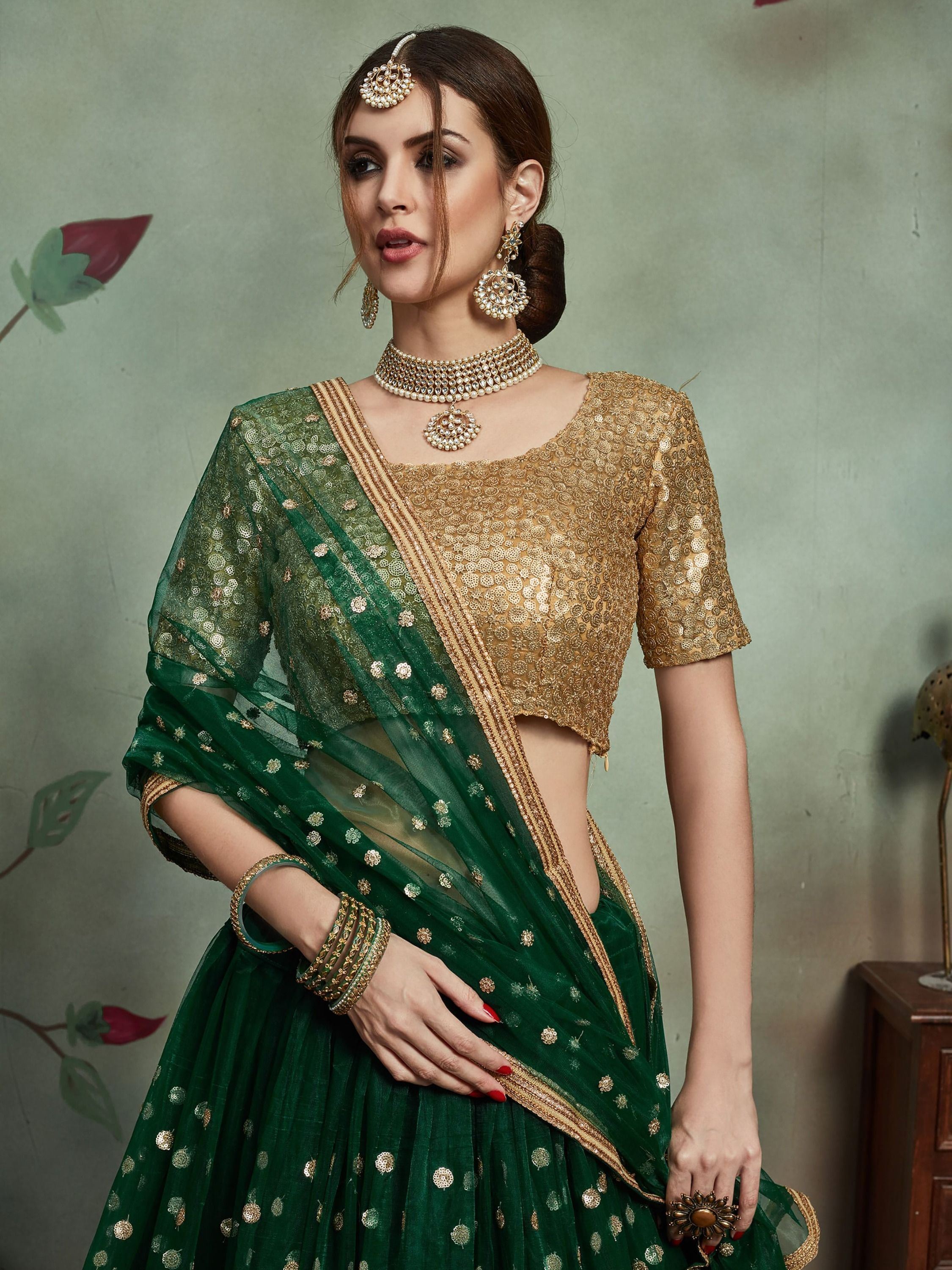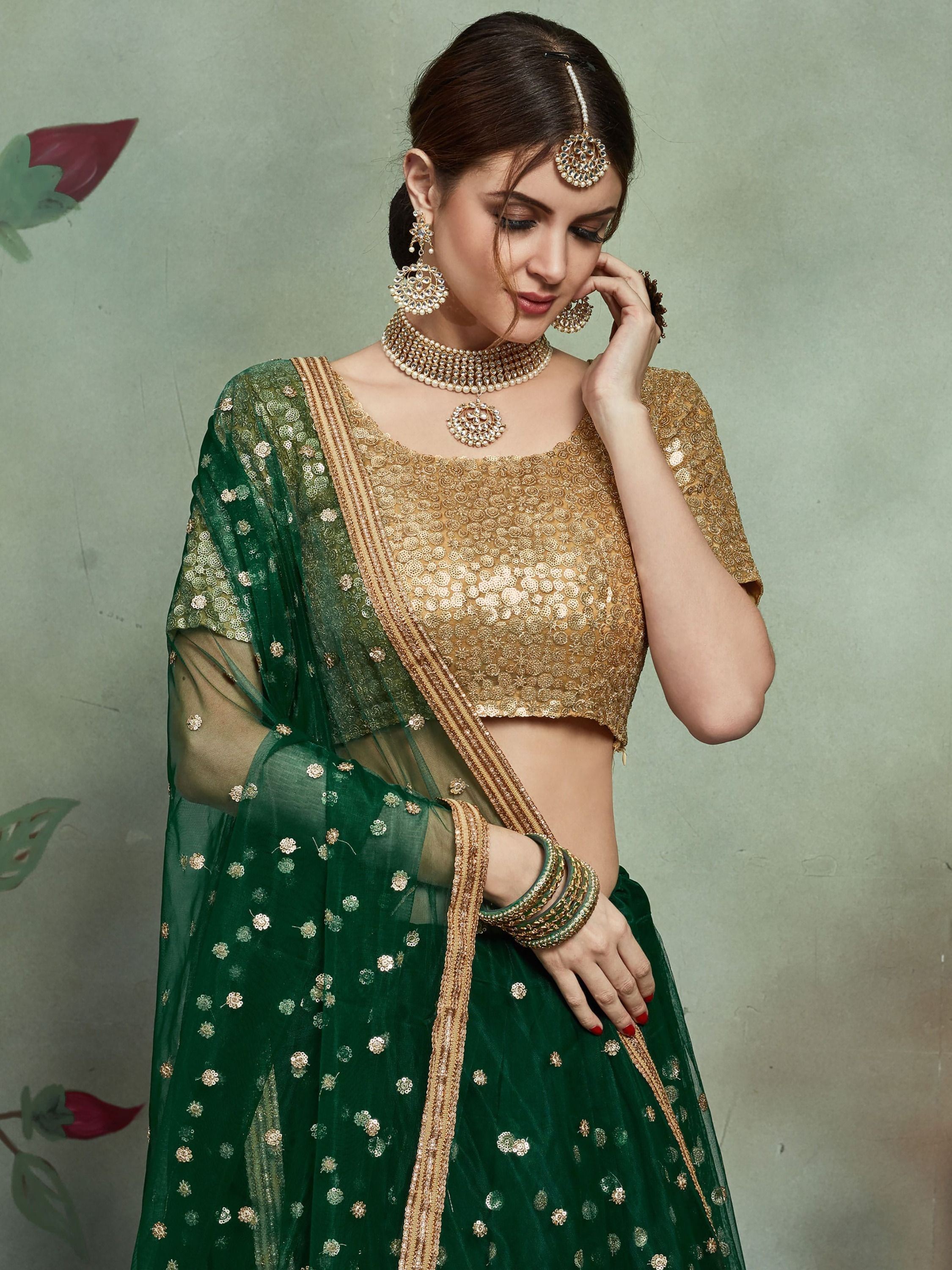 Dark Green Sequins Work Net Party Wear Lehenga Choli with Dupatta