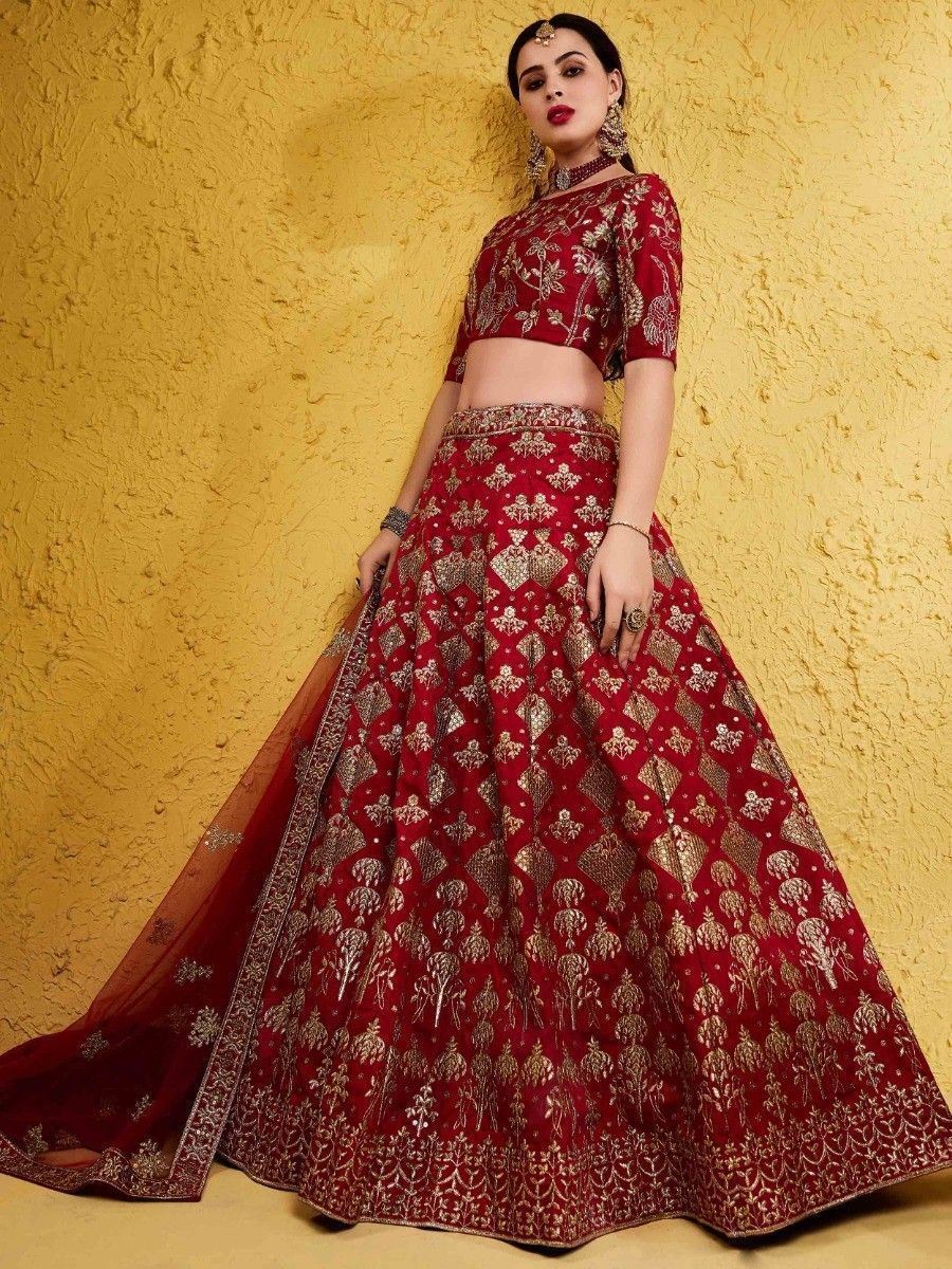 Fascinating Red Embroidered Silk Bridal Lehenga Choli With Dupatta