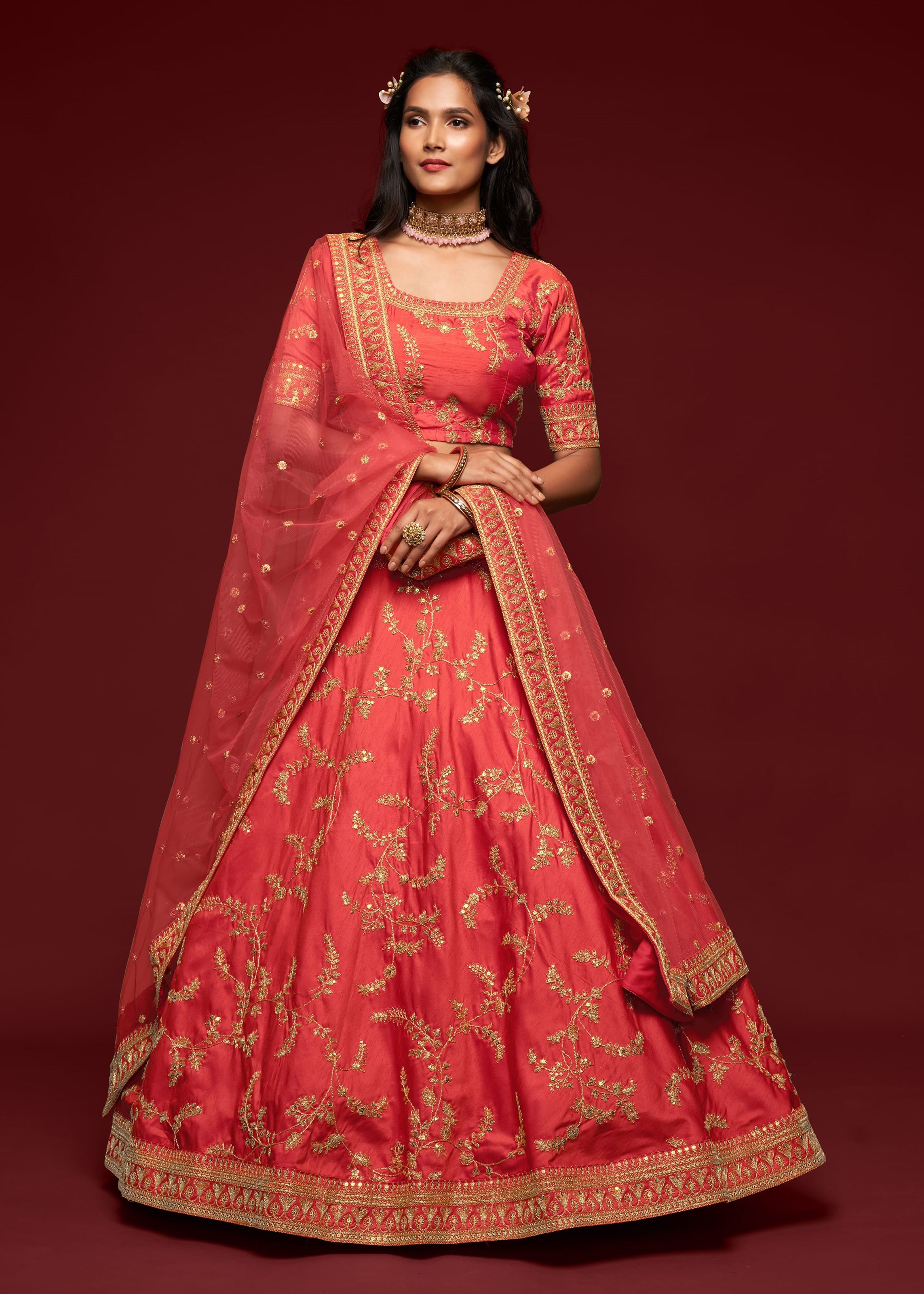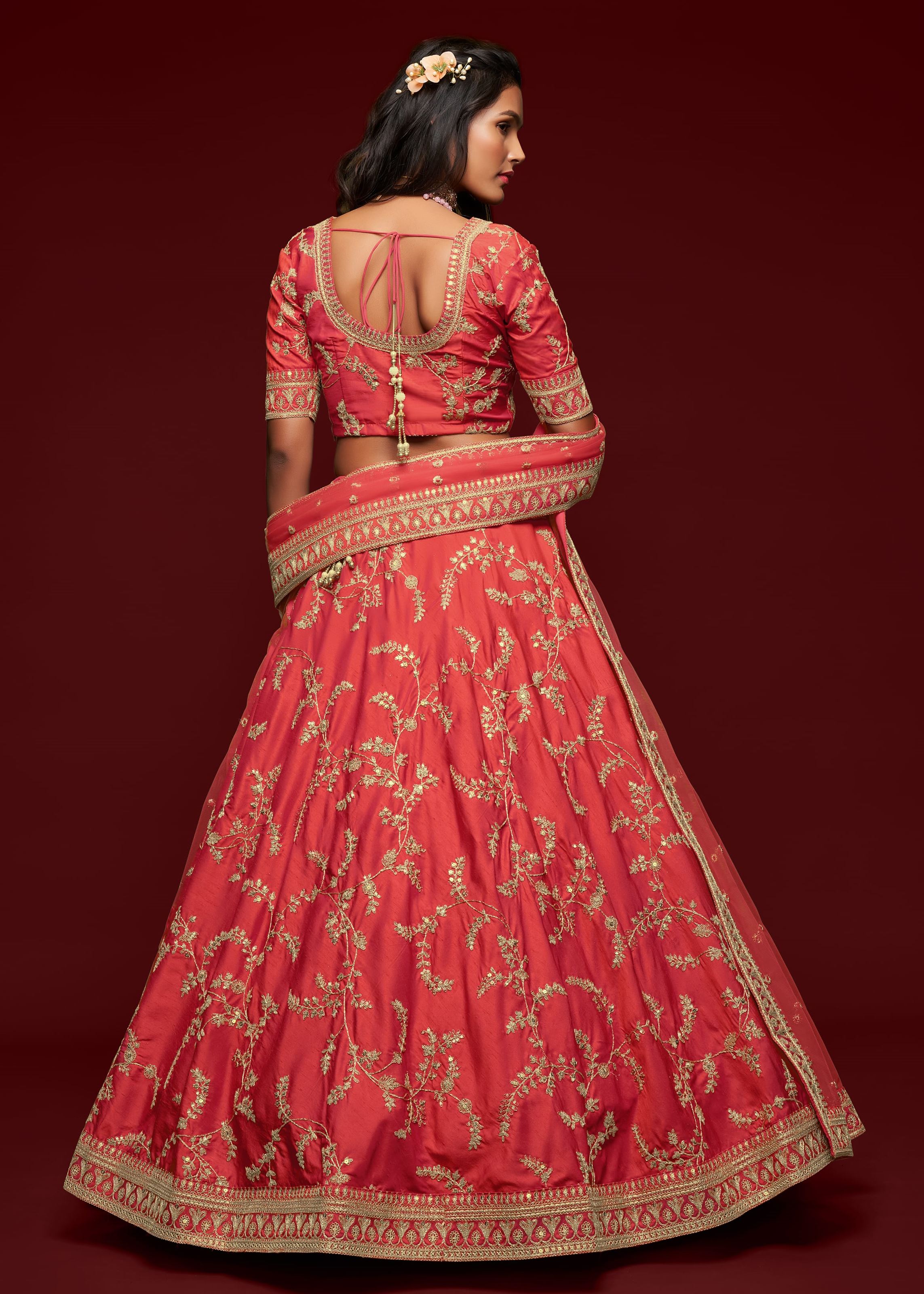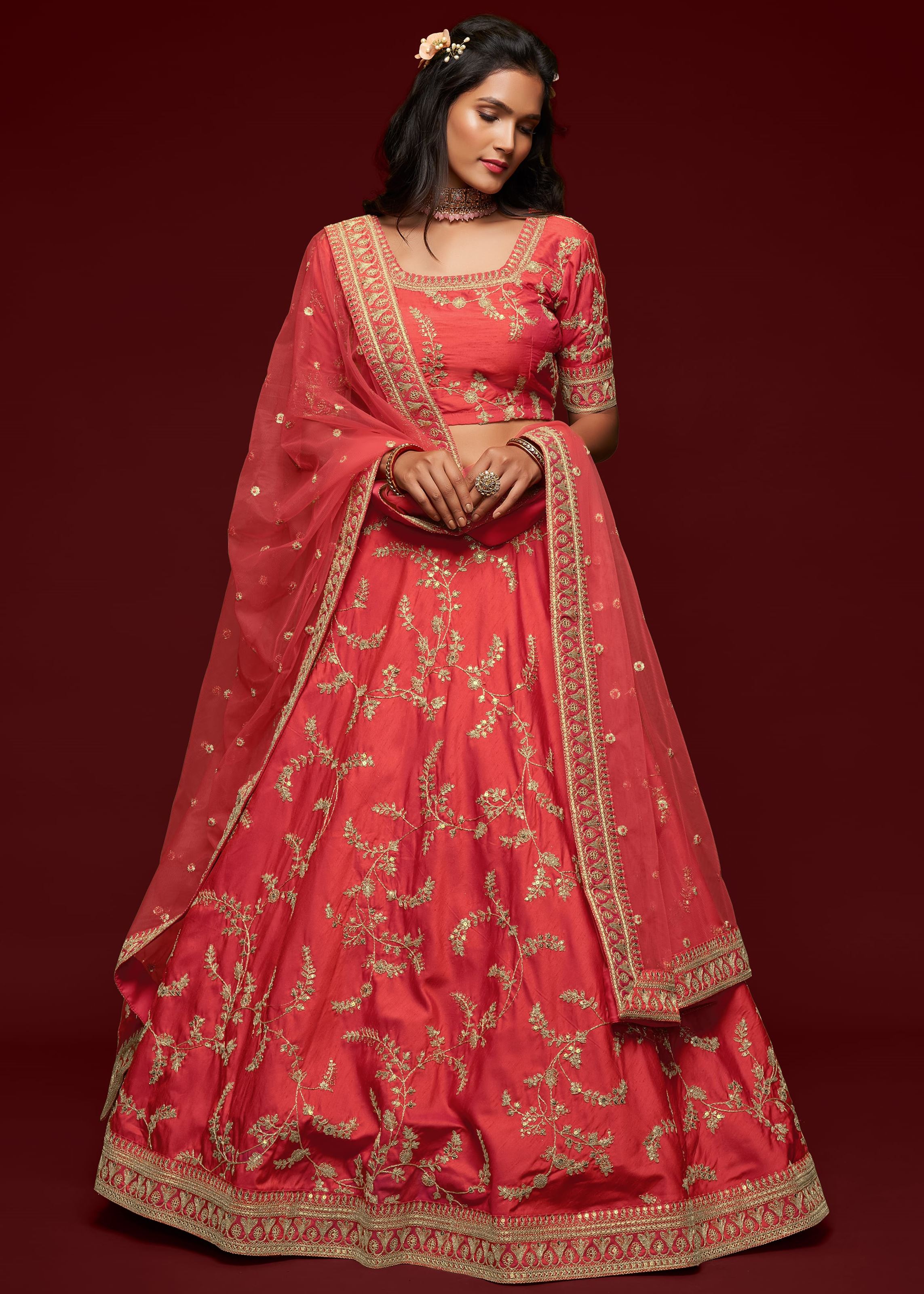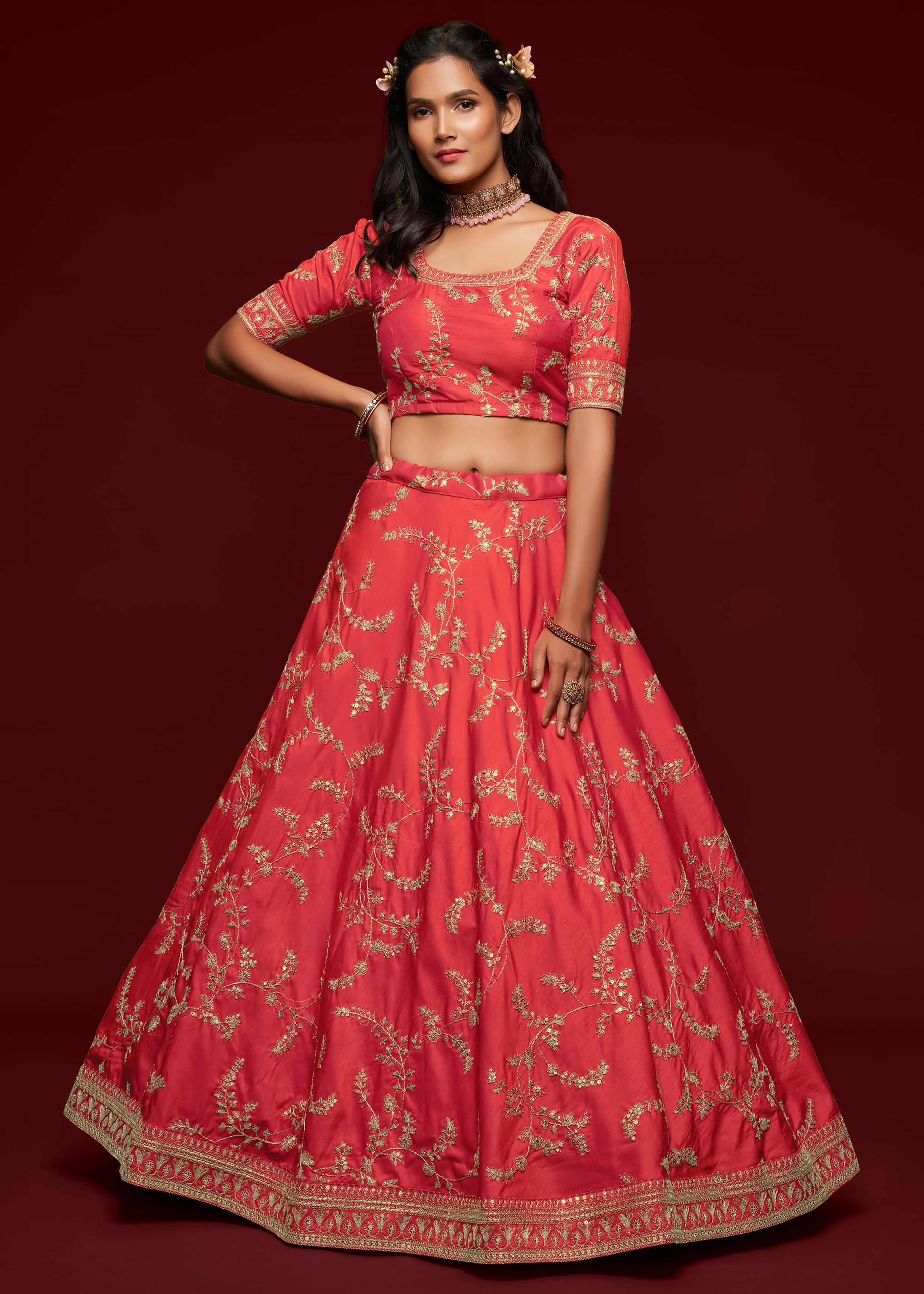 Gajri Art Silk Lehenga Choli With Thread, Zari, Dori and Sequins Embroidery Work