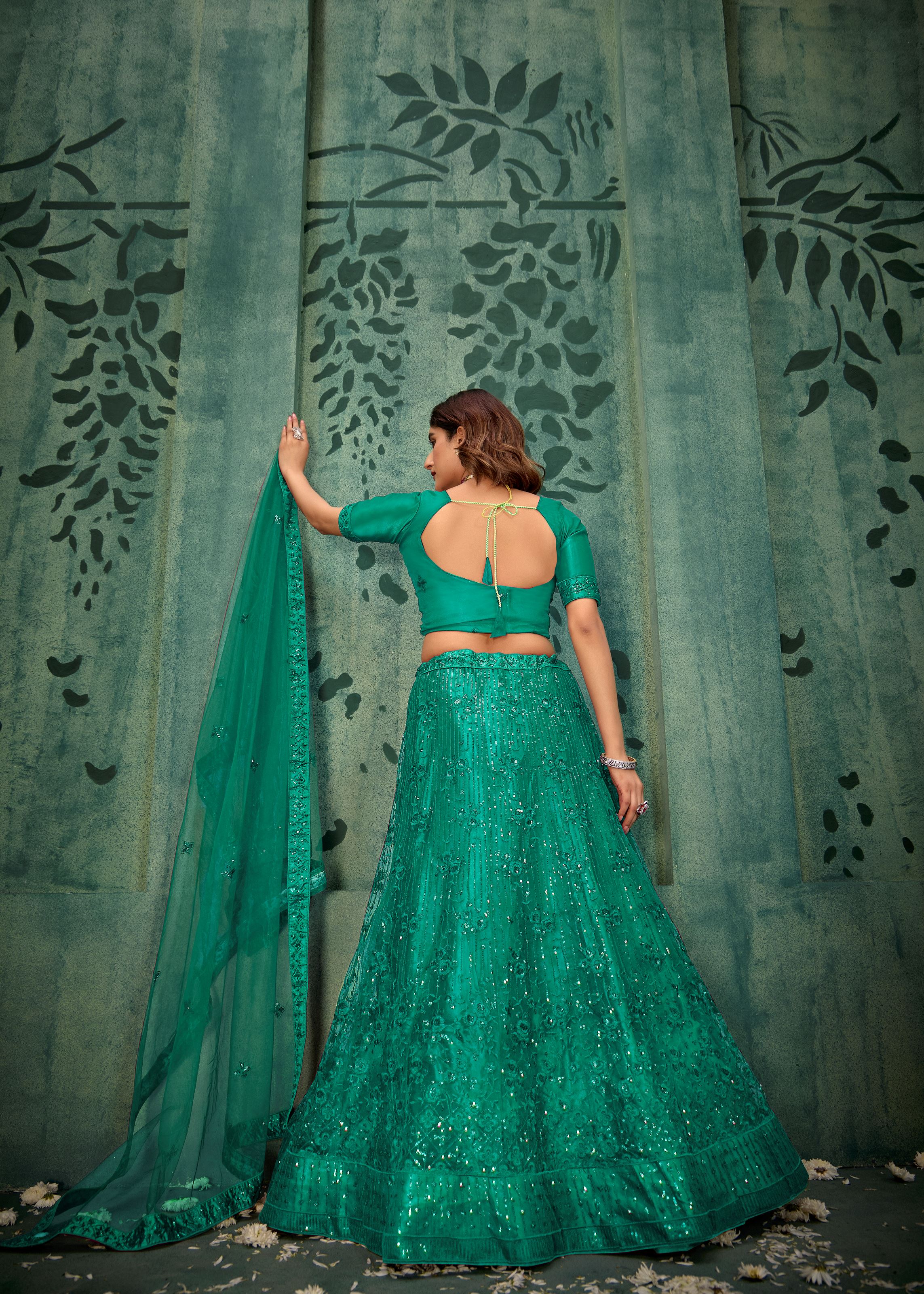 Green Lehenga Choli With Heavy Sequence Embroidered