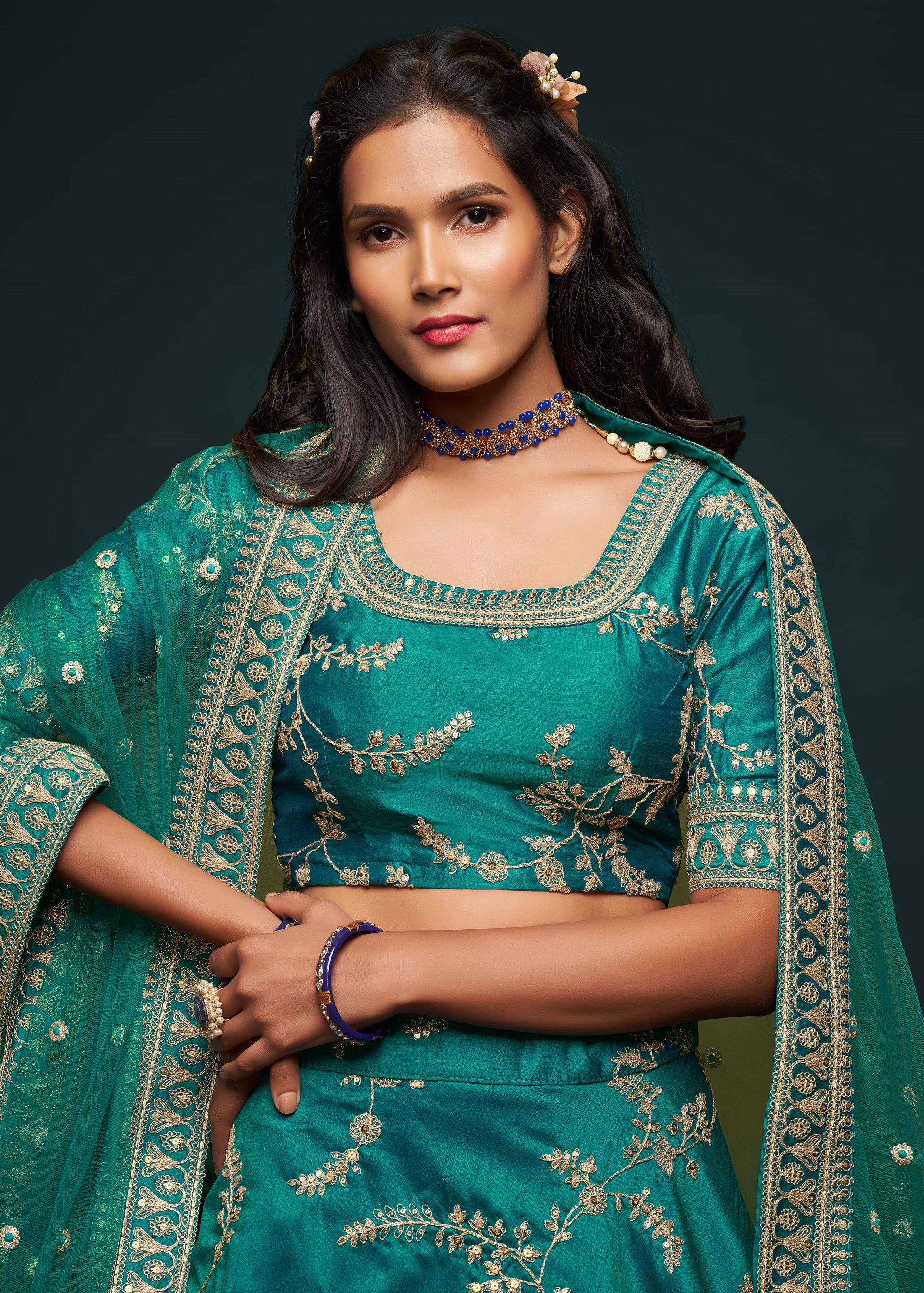 Green Art Silk Lehenga Choli With Thread, Zari, Dori and Sequins Embroidery Work