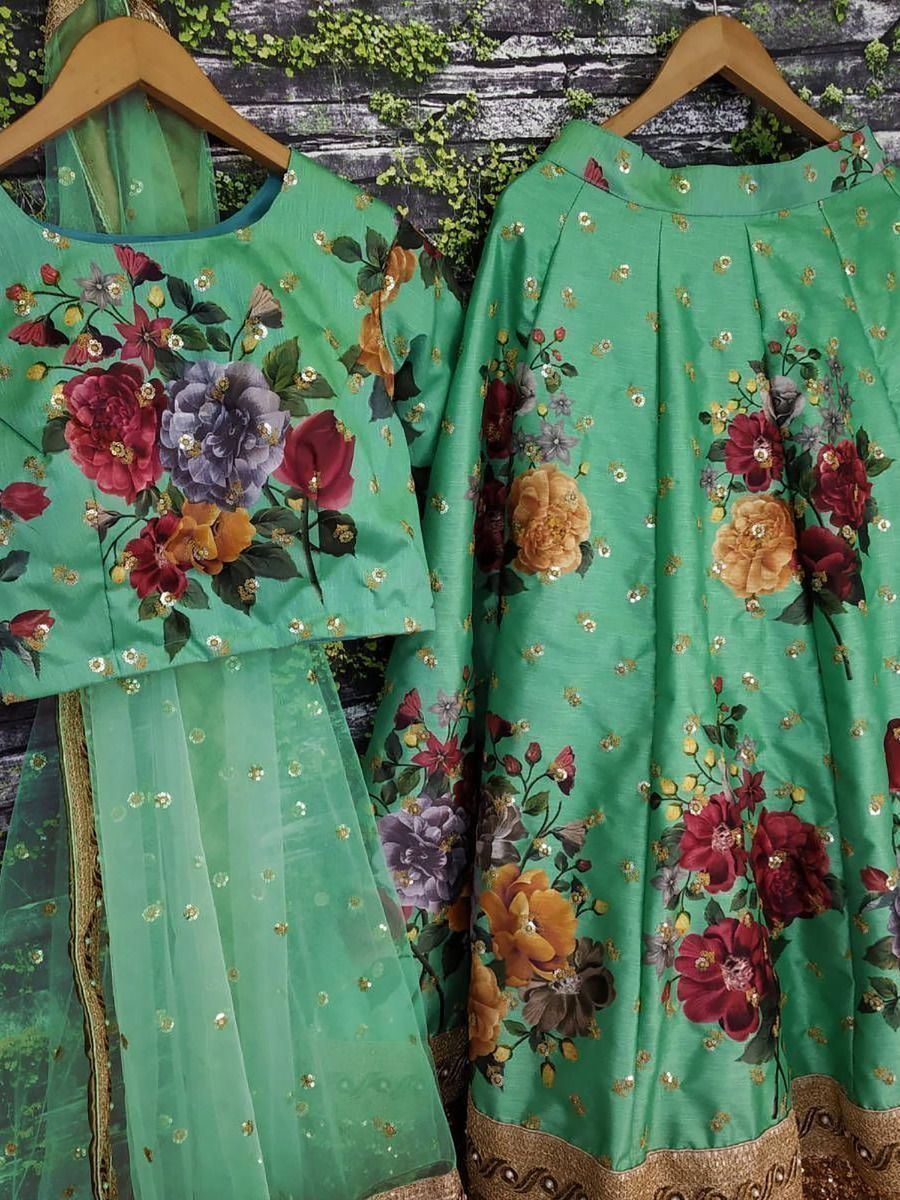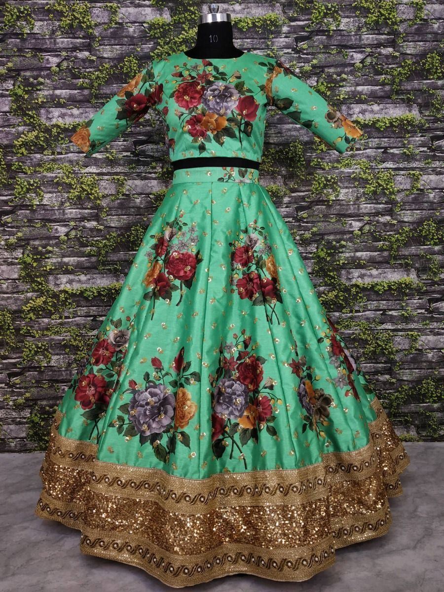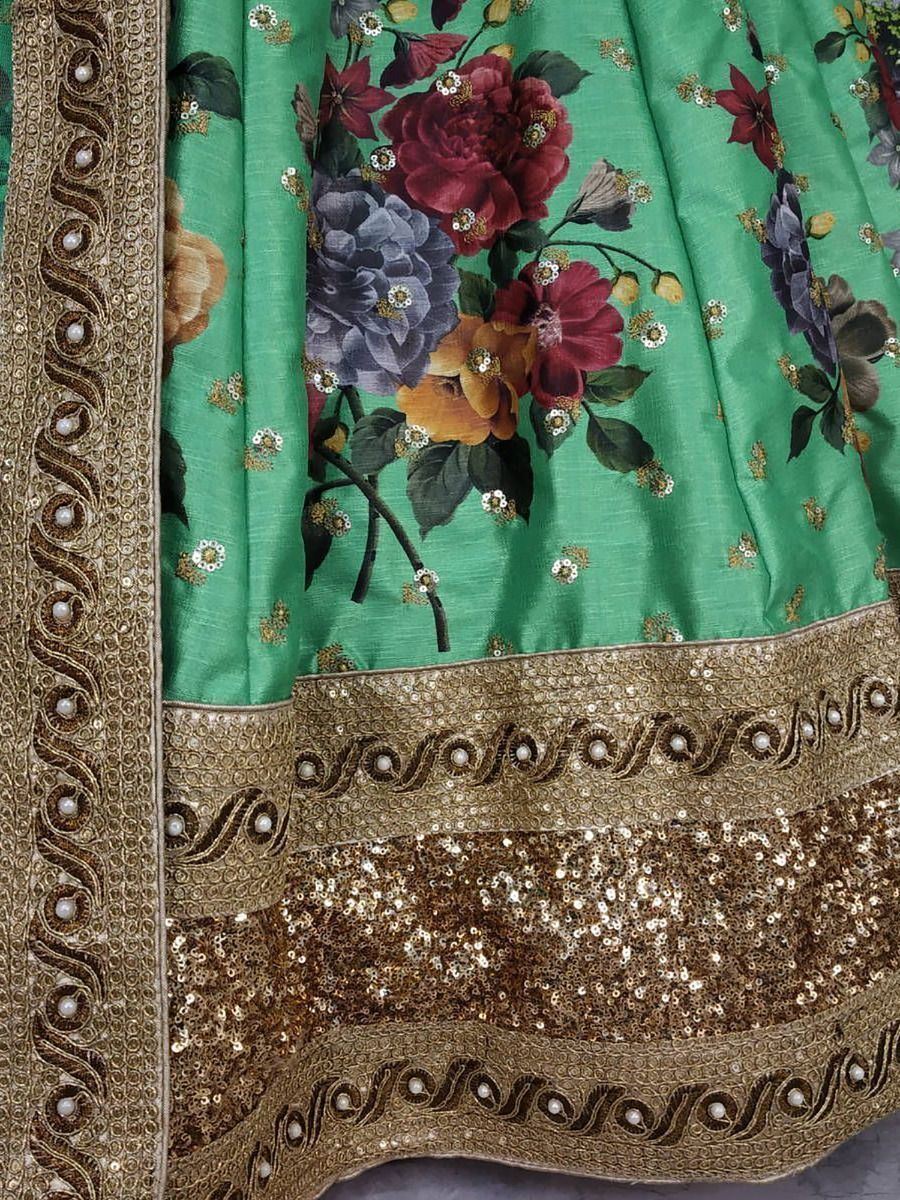 Green Floral Digital Printed Art Silk Bridal Lehenga Choli