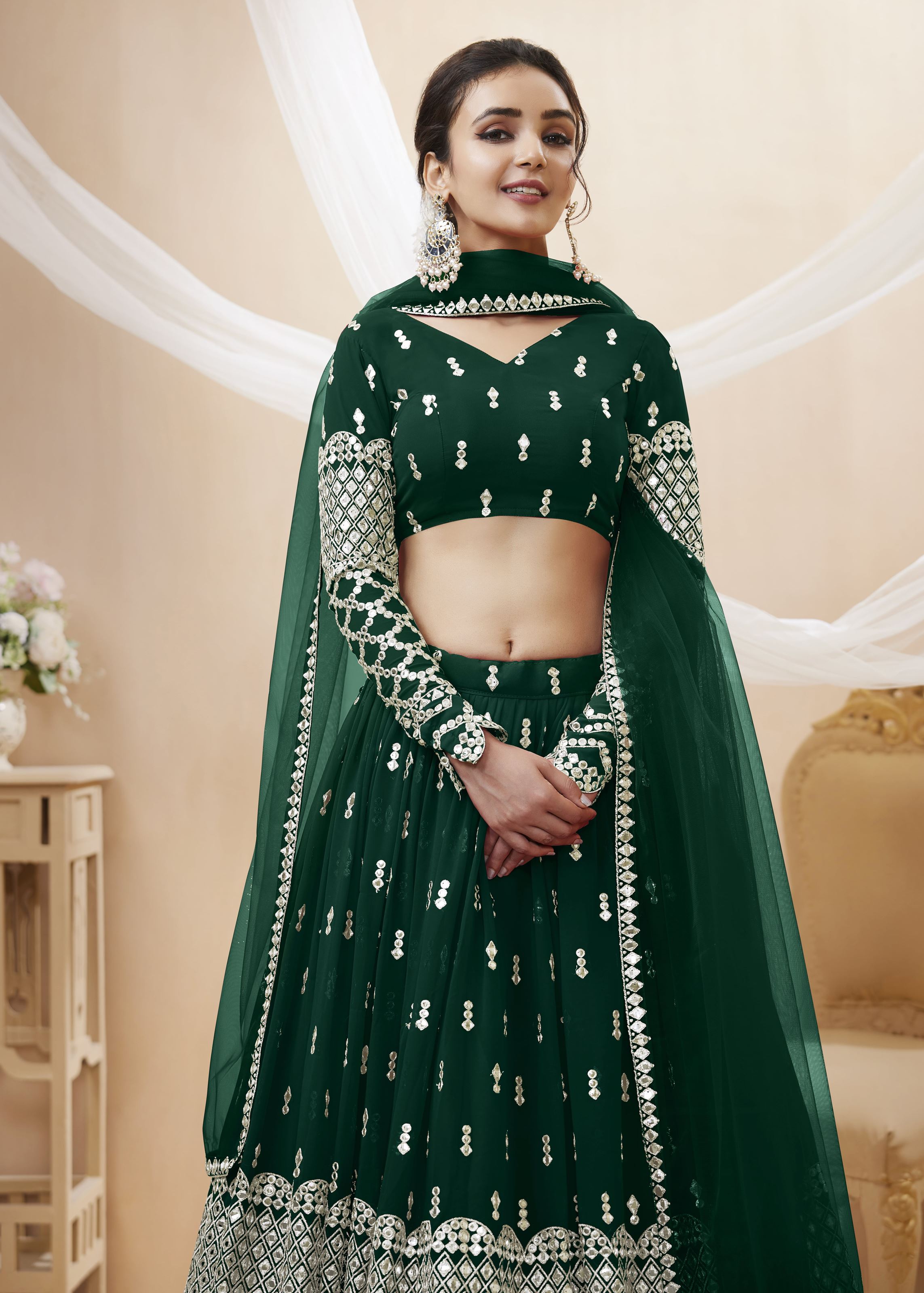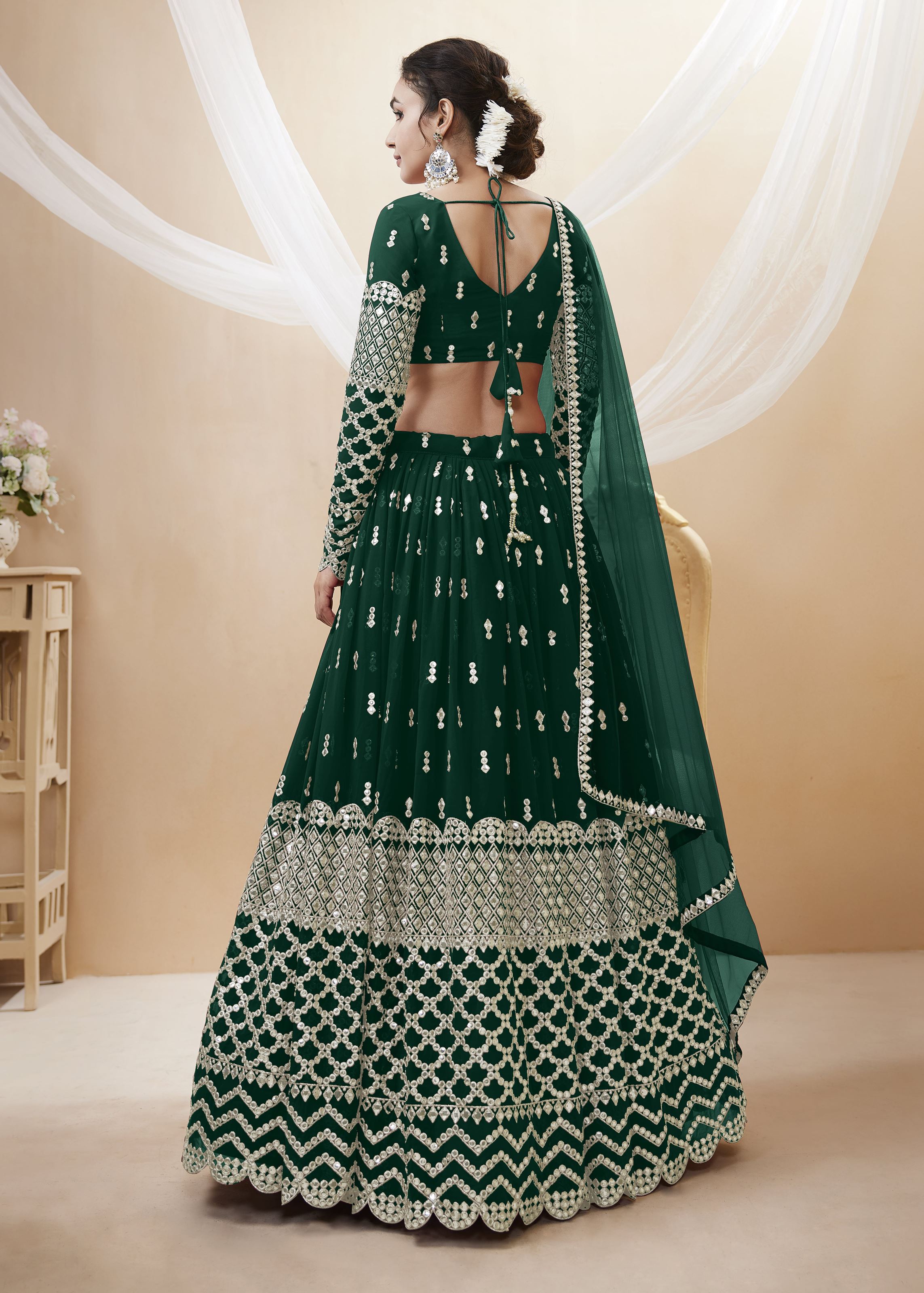 Green Georgette Lehenga Choli With Sequins Zari Embroidered Work