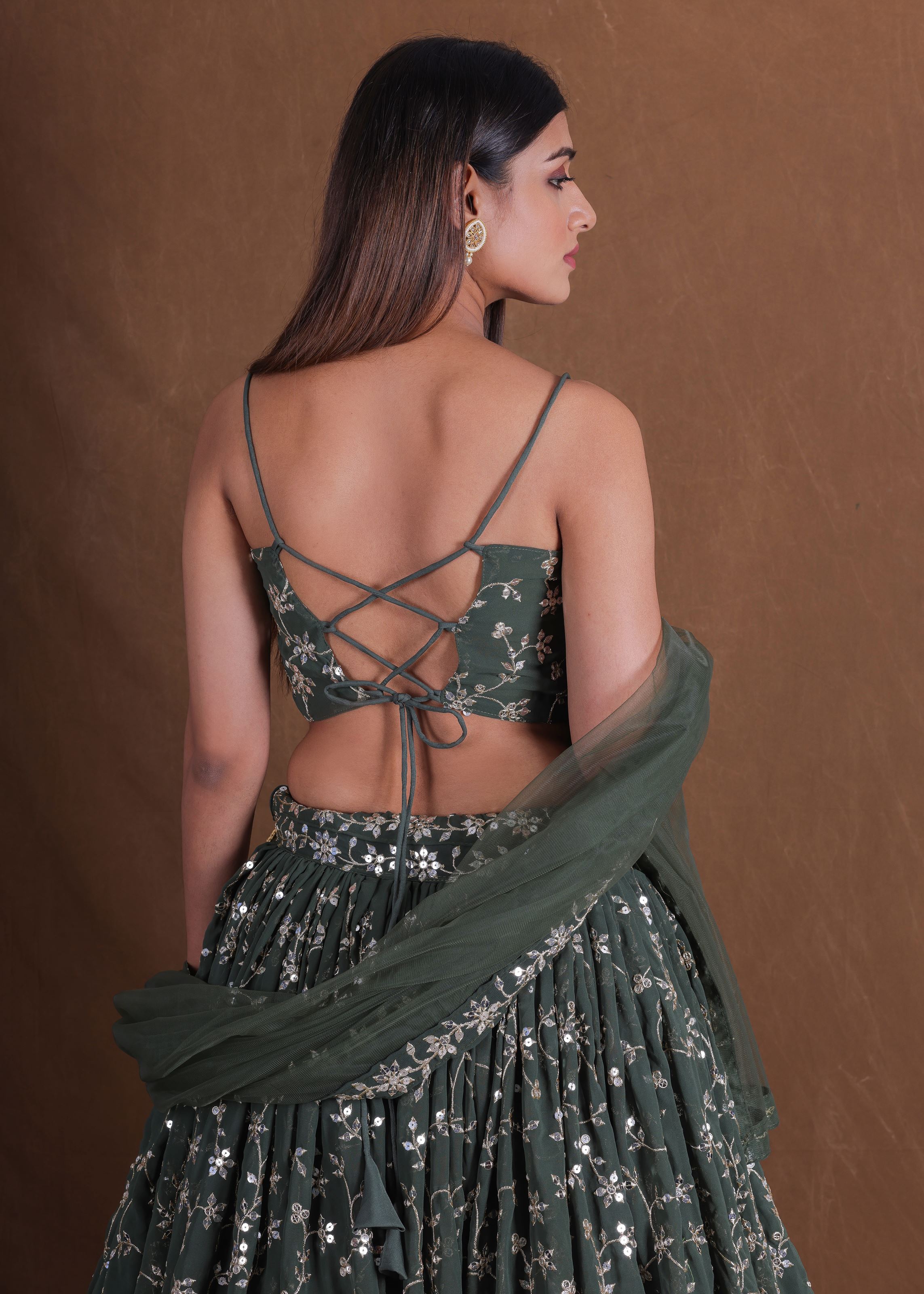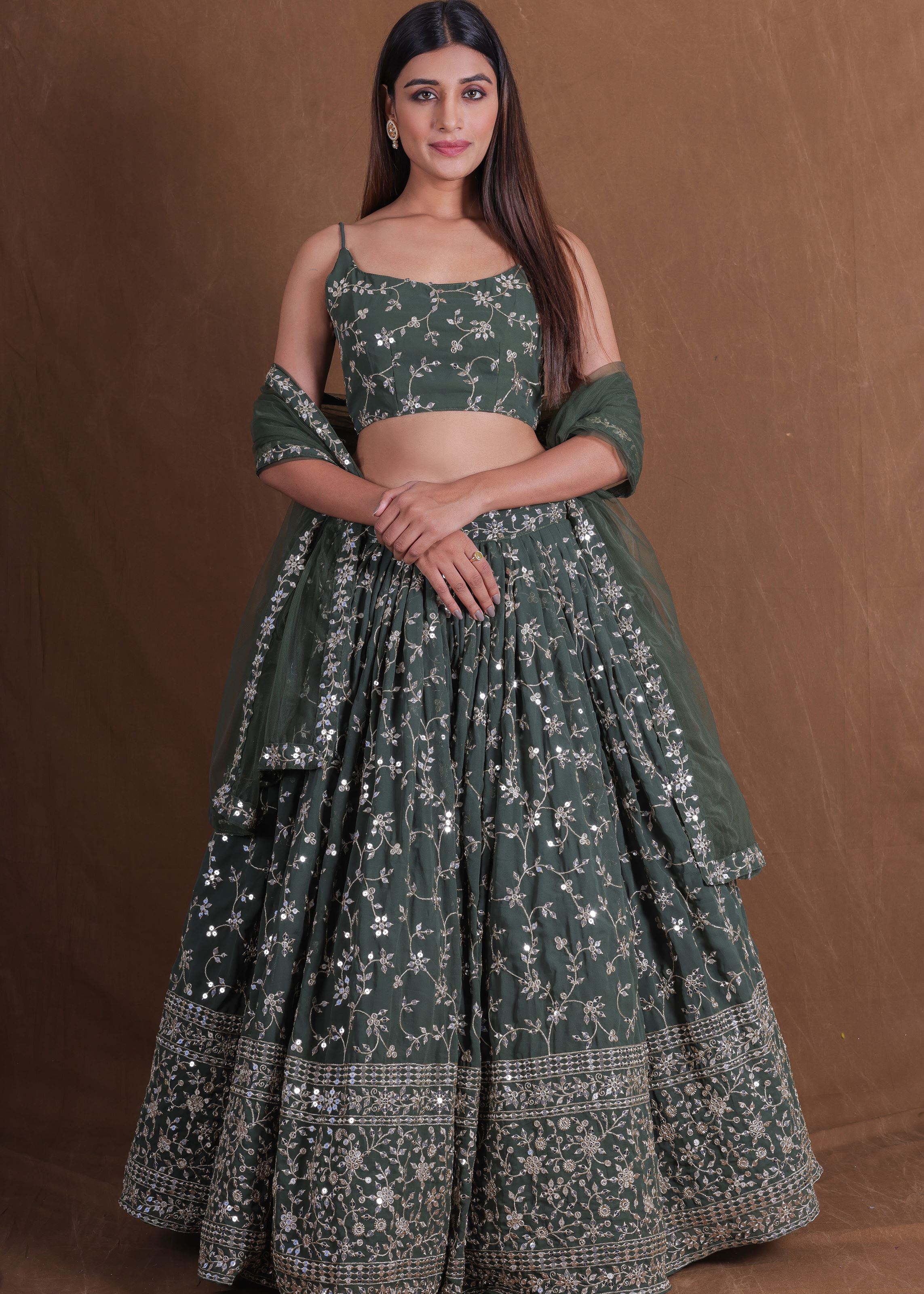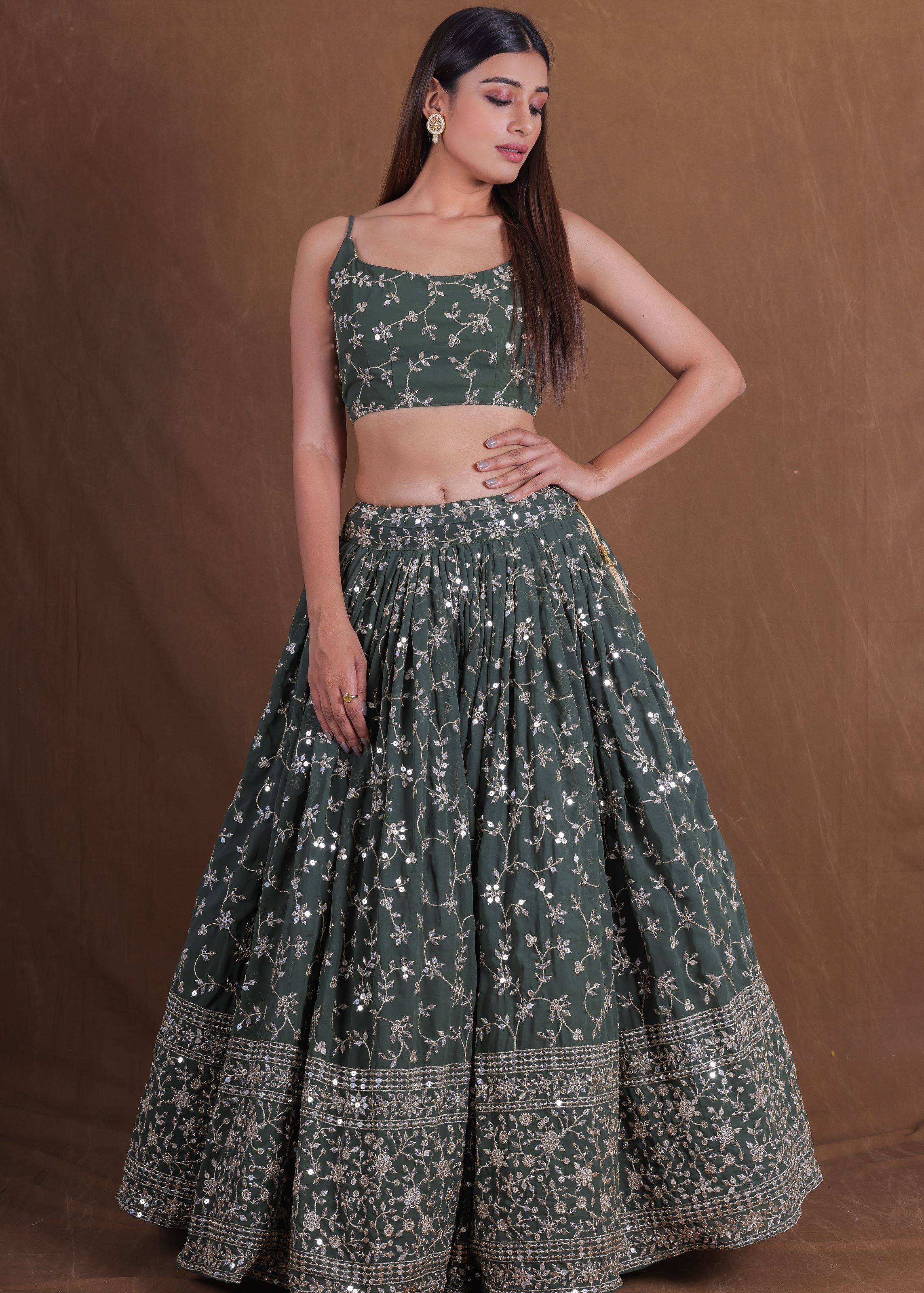 Green Georgette Sequence Embroidery Work Lehenga Choli
