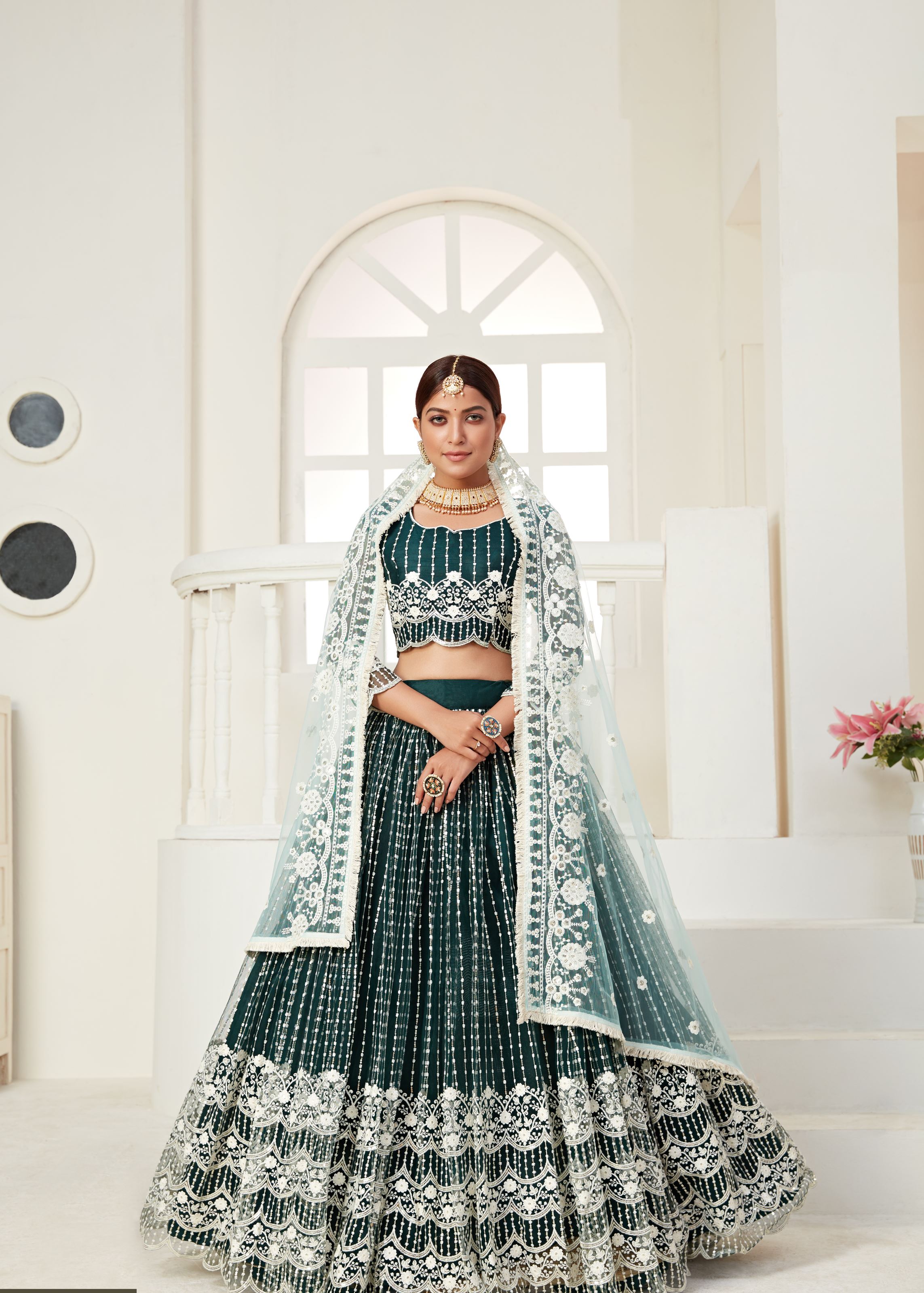 Green Lehenga Choli And Dupatta With Multi Net And Sequence Embroidered Thread Work