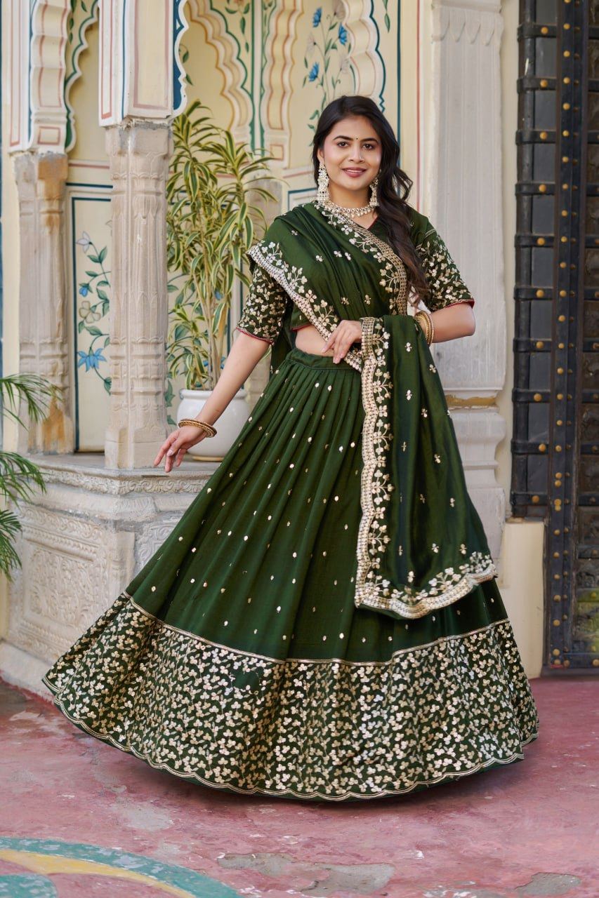 Green Lehenga Choli with Embroidery Rajwadi Work