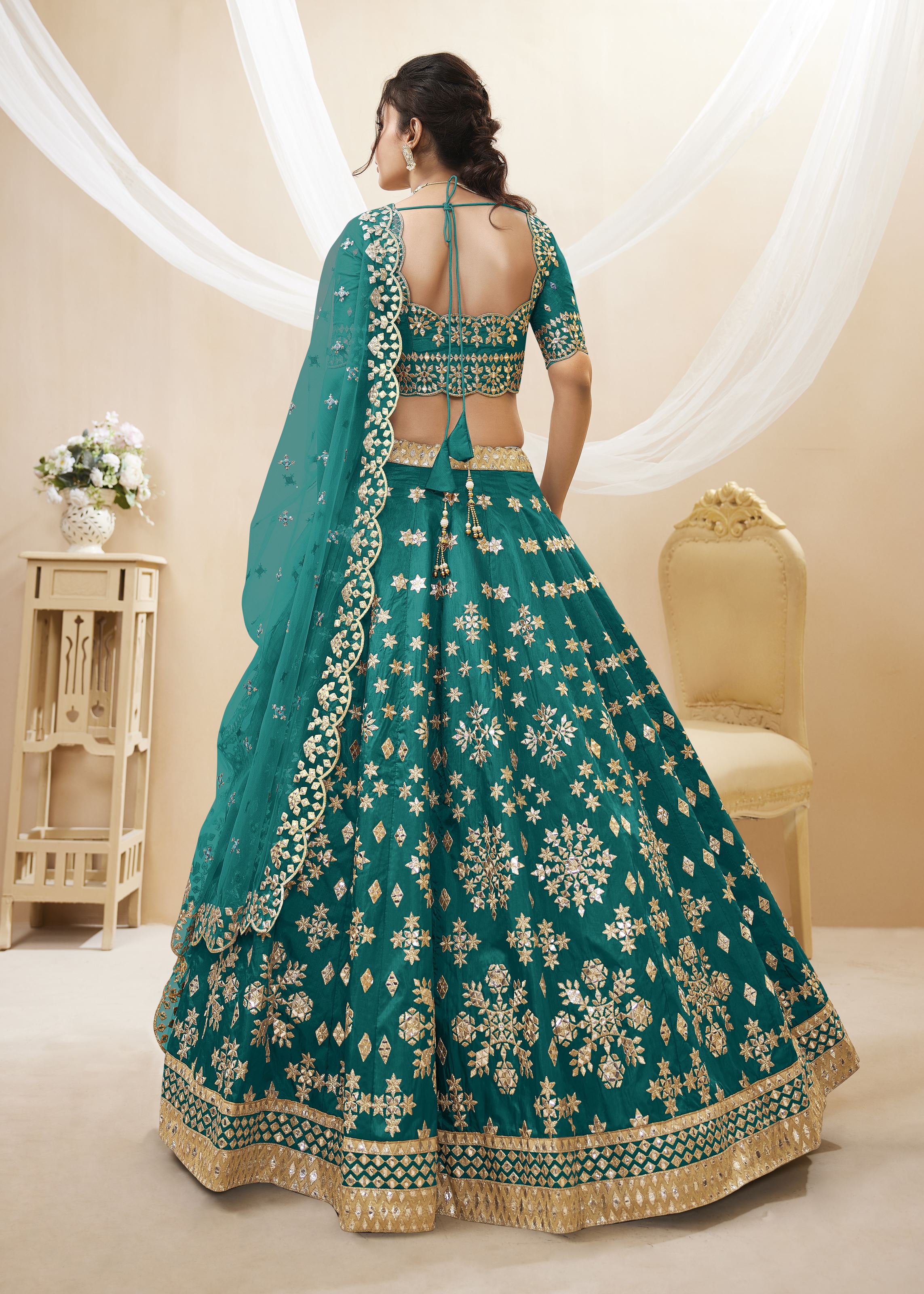 Green Art Silk Lehenga Choli With Sequins, Foil & Zari Embroidered Work ----- SIZE (SEMI STITCHED) AVAILABLE SIZE UP TO 44 (0.80mtr)