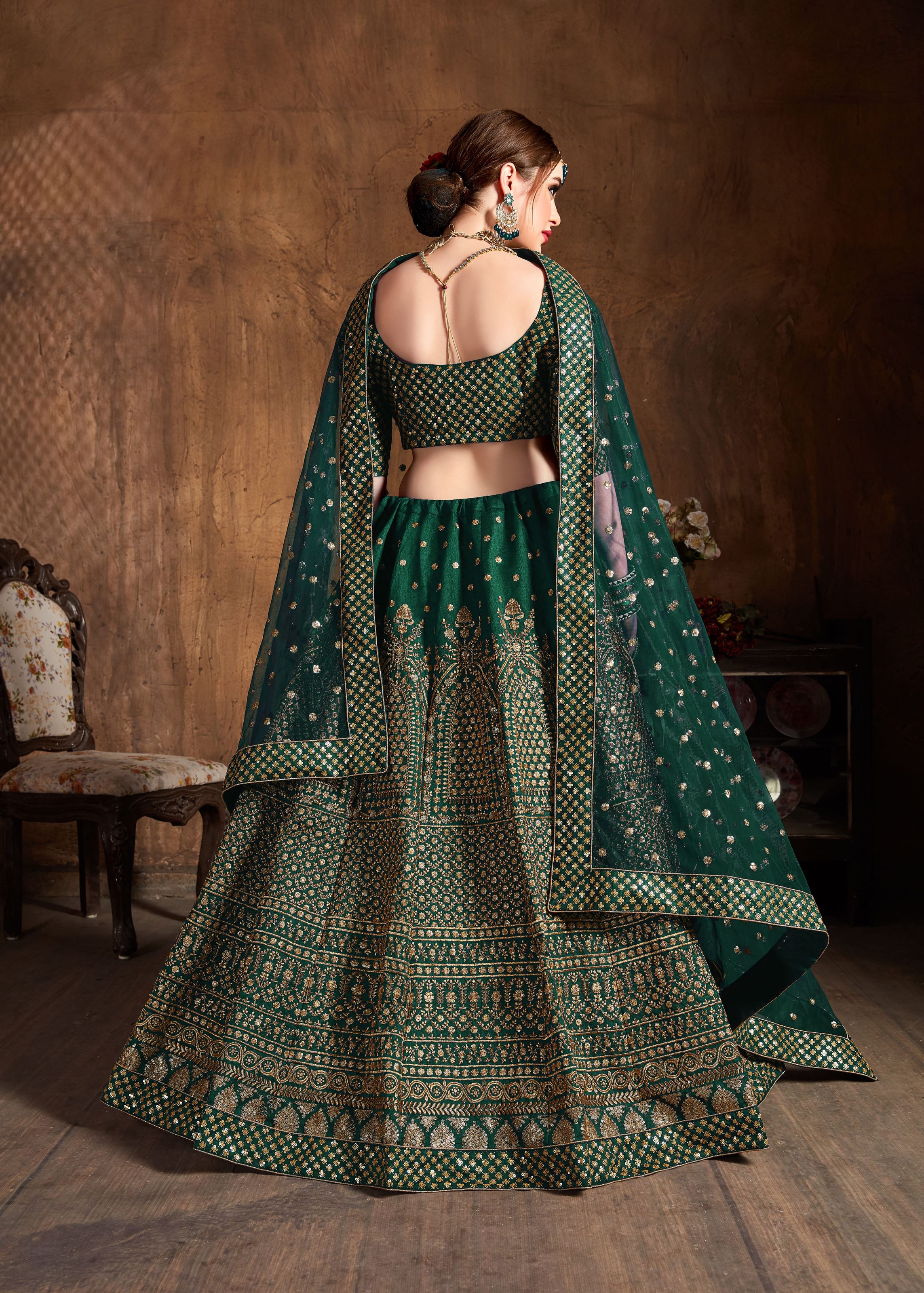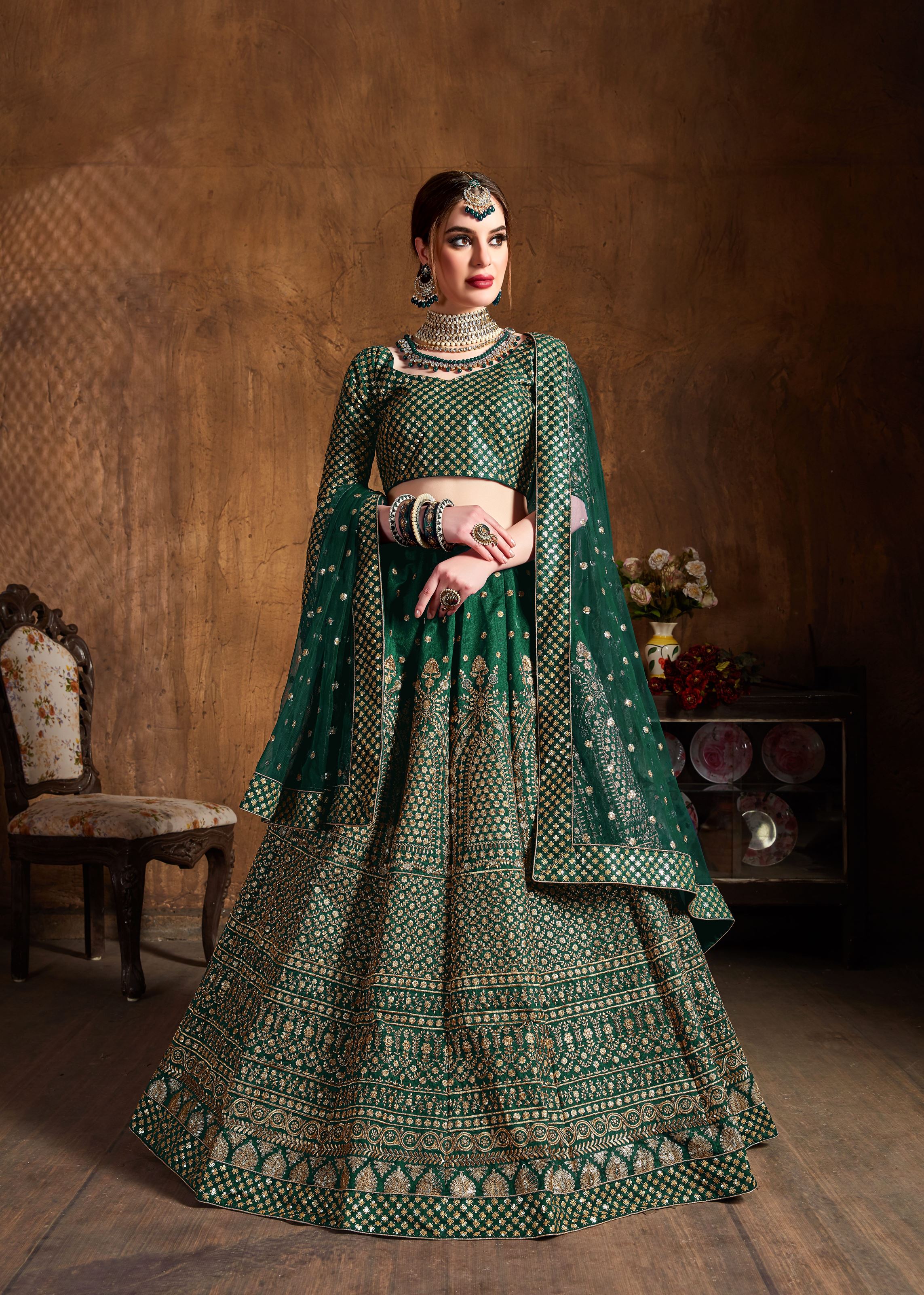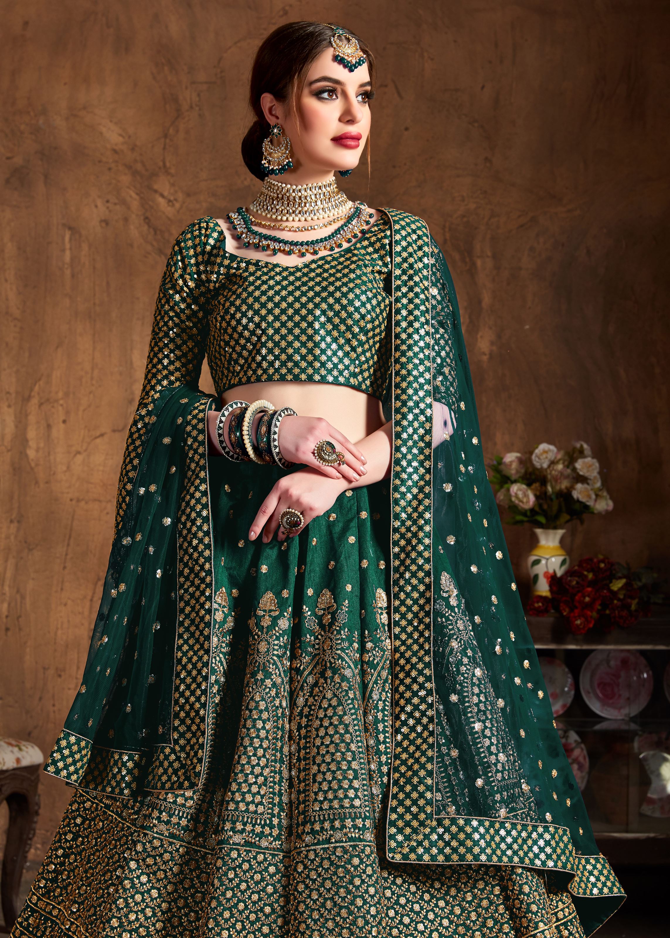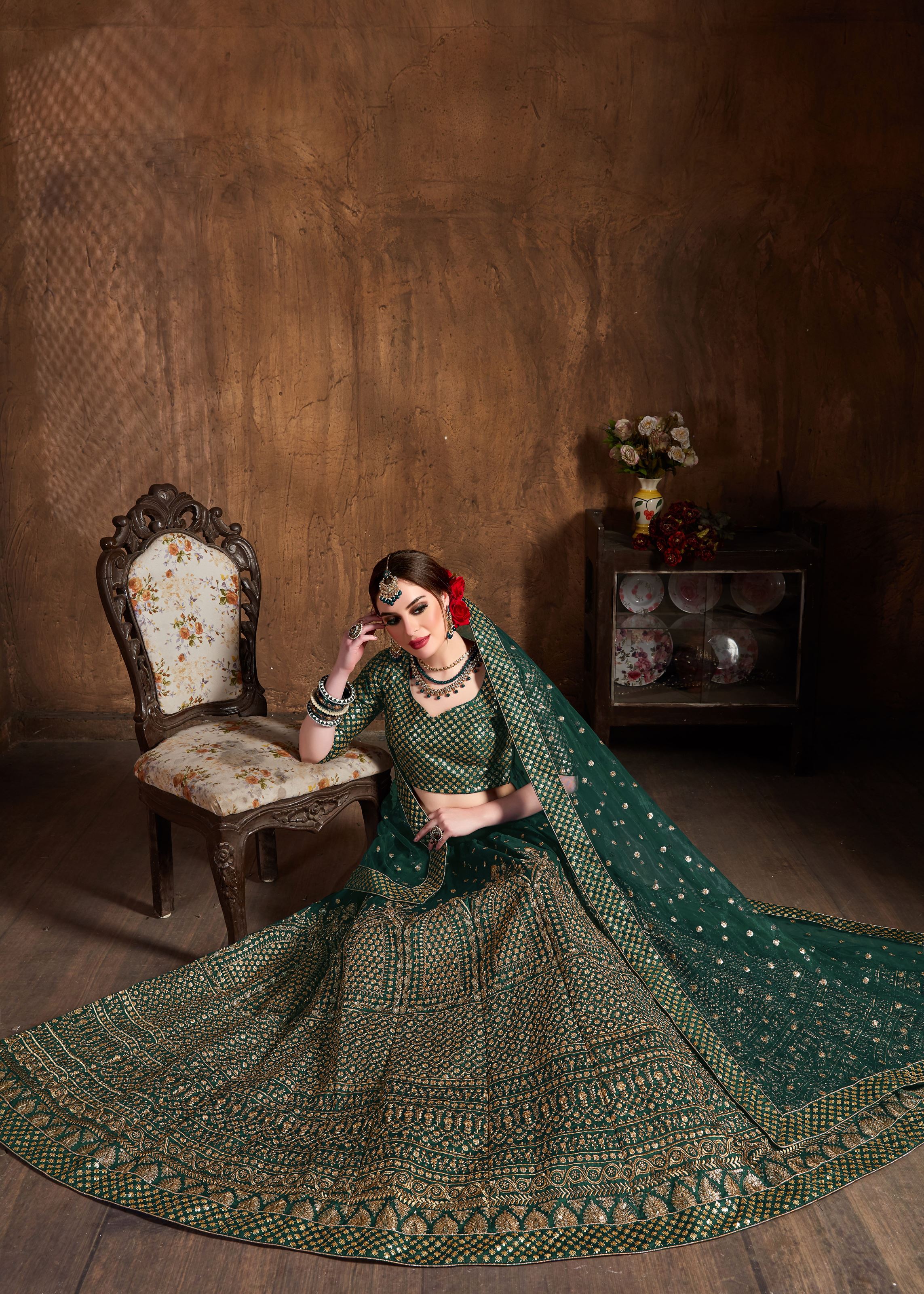 Green Lehenga Choli With Zari And Glitter Sequins Embroidery