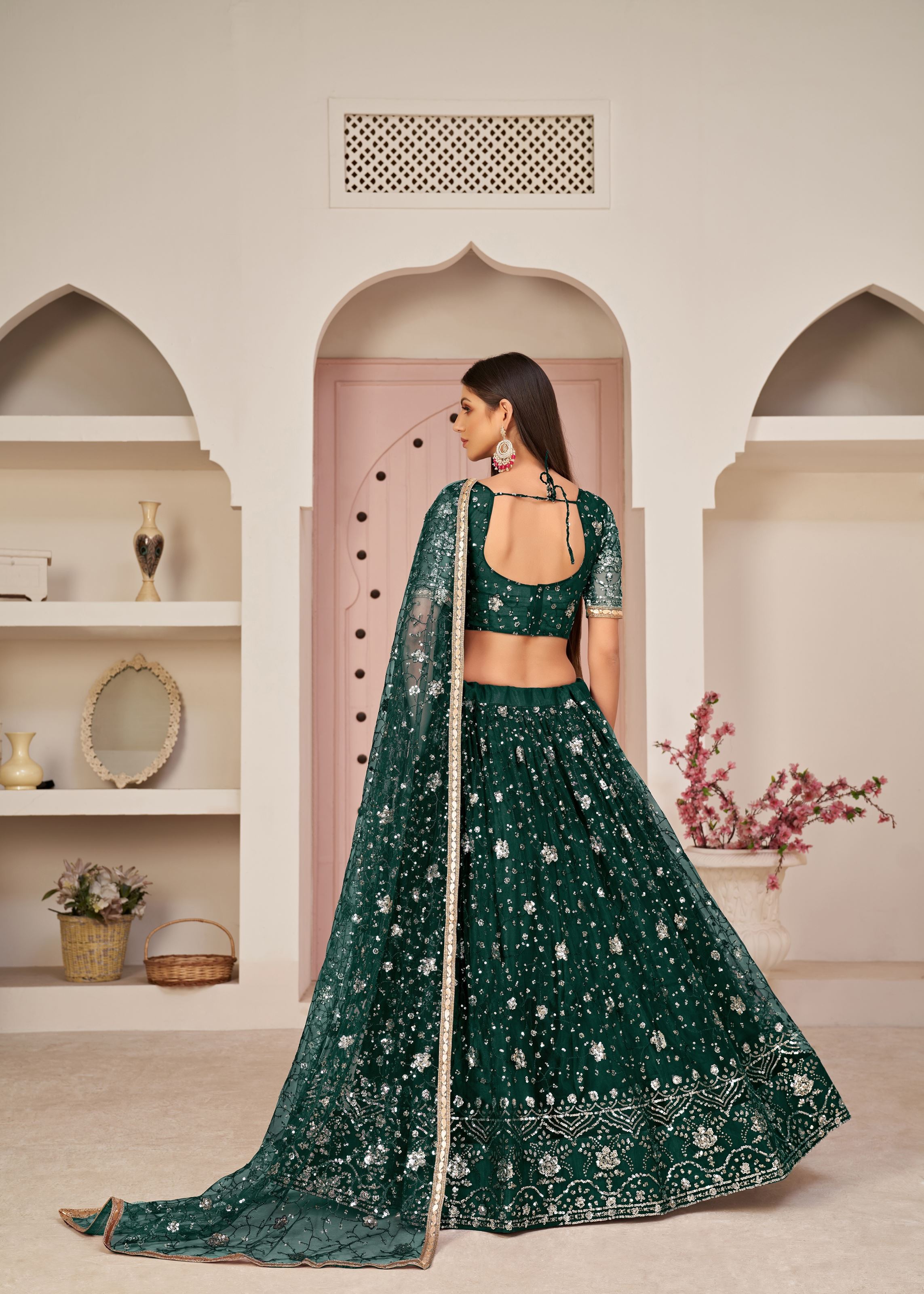 Bring effortless elegance to your next celebration with this exquisite Green Net Lehenga Choli from Aethnofit Fashions — a perfect fusion of delicate craftsmanship and contemporary ethnic style. Crafted from airy net fabric, the lehenga showcases detailed thread embroidery that adds subtle dimension and charm to its graceful silhouette. The vibrant green hue adds freshness and sophistication, making it a perfect choice for festive occasions, wedding functions, or cultural events.