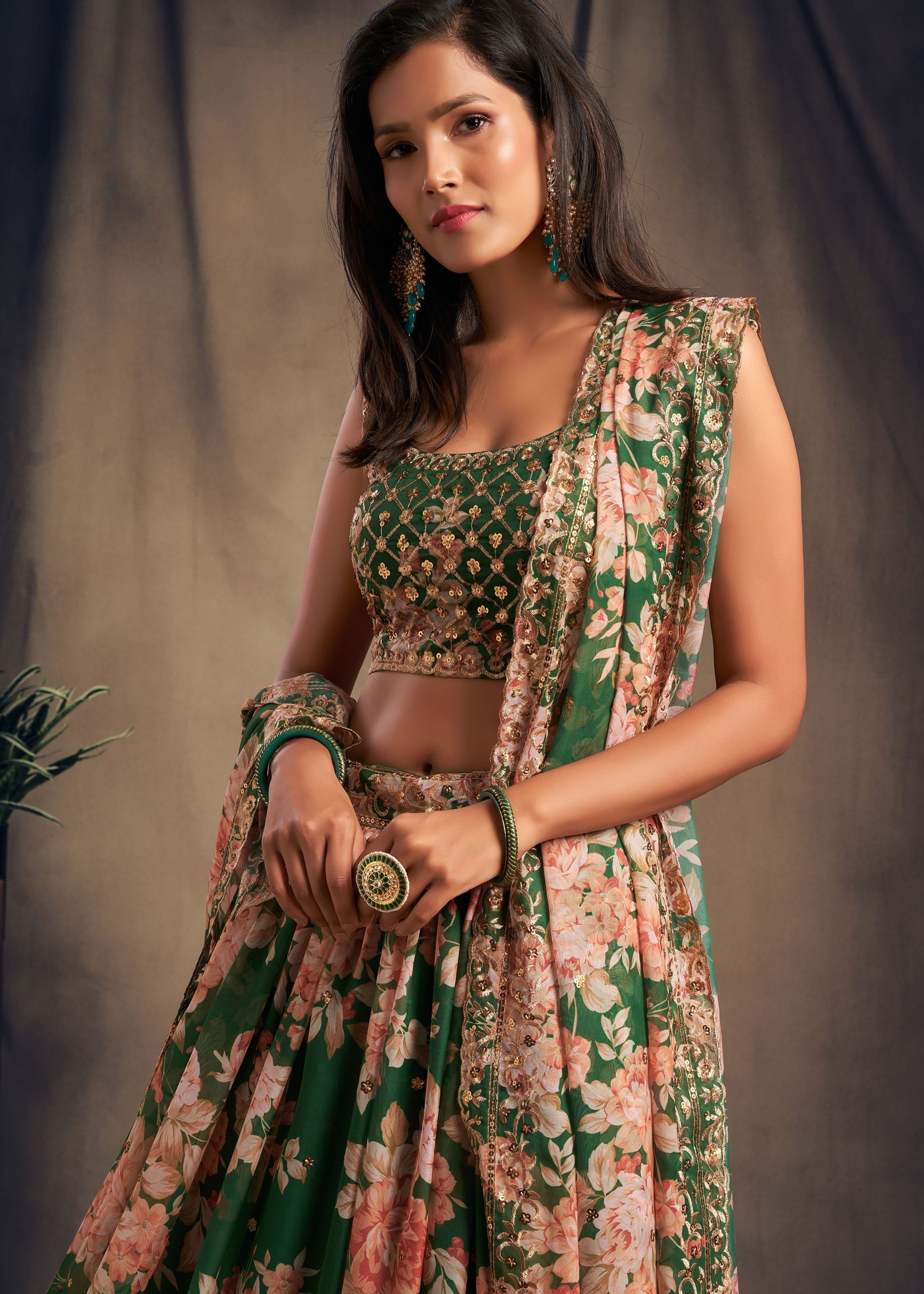 Green Organza Lehenga Choli With Sequins Zari Embroidery Work