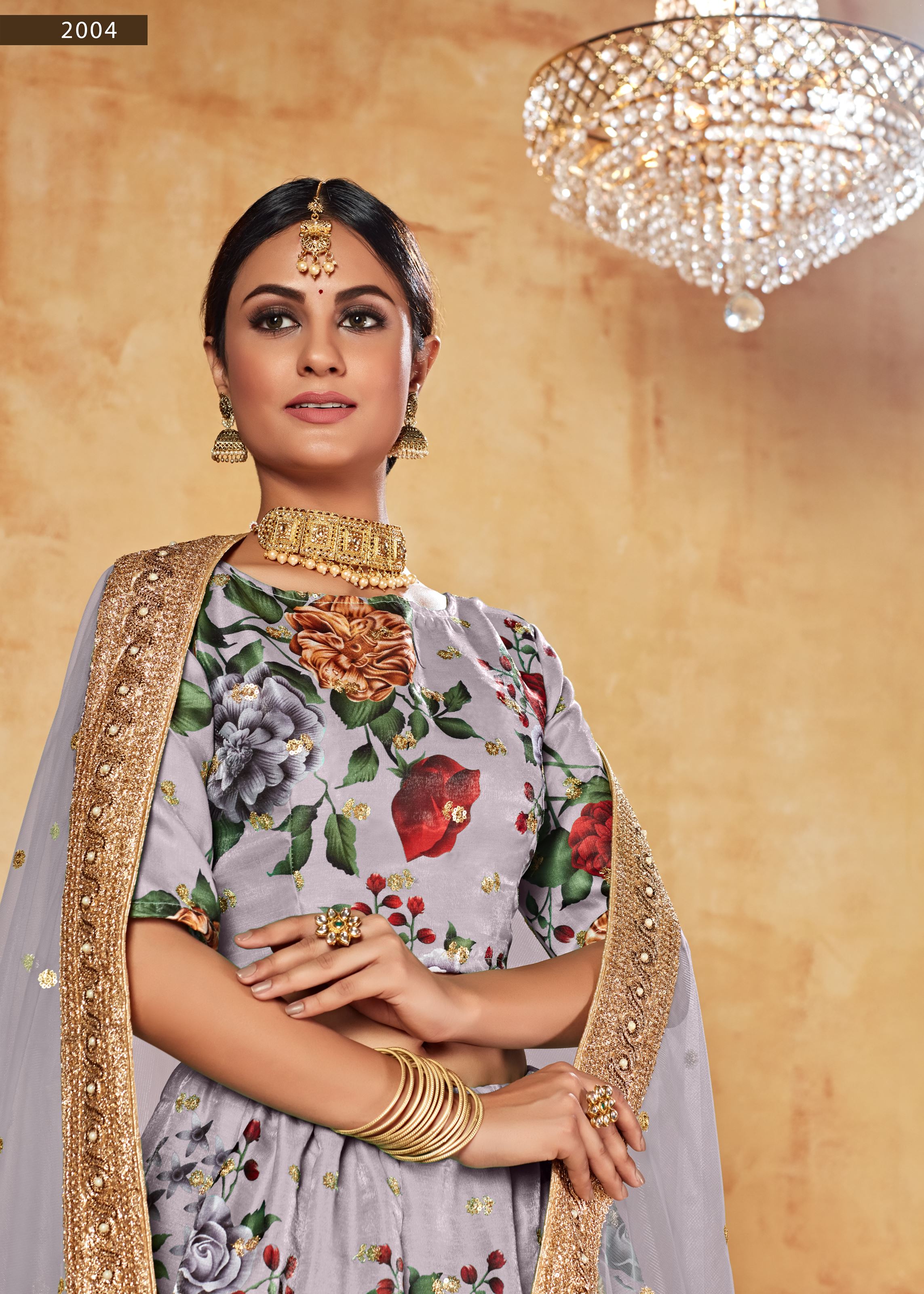 Elevate your festive wardrobe with this elegant Grey Lehenga Choli from Aethnofit Fashions. Crafted in fine art silk, the lehenga features intricate digital prints paired with exquisite dori work highlighted by shimmering jari sequins butti. The detailed embroidered border and delicate pearl embellishments add a touch of sophistication, making this ensemble ideal for weddings, receptions, and cultural celebrations.