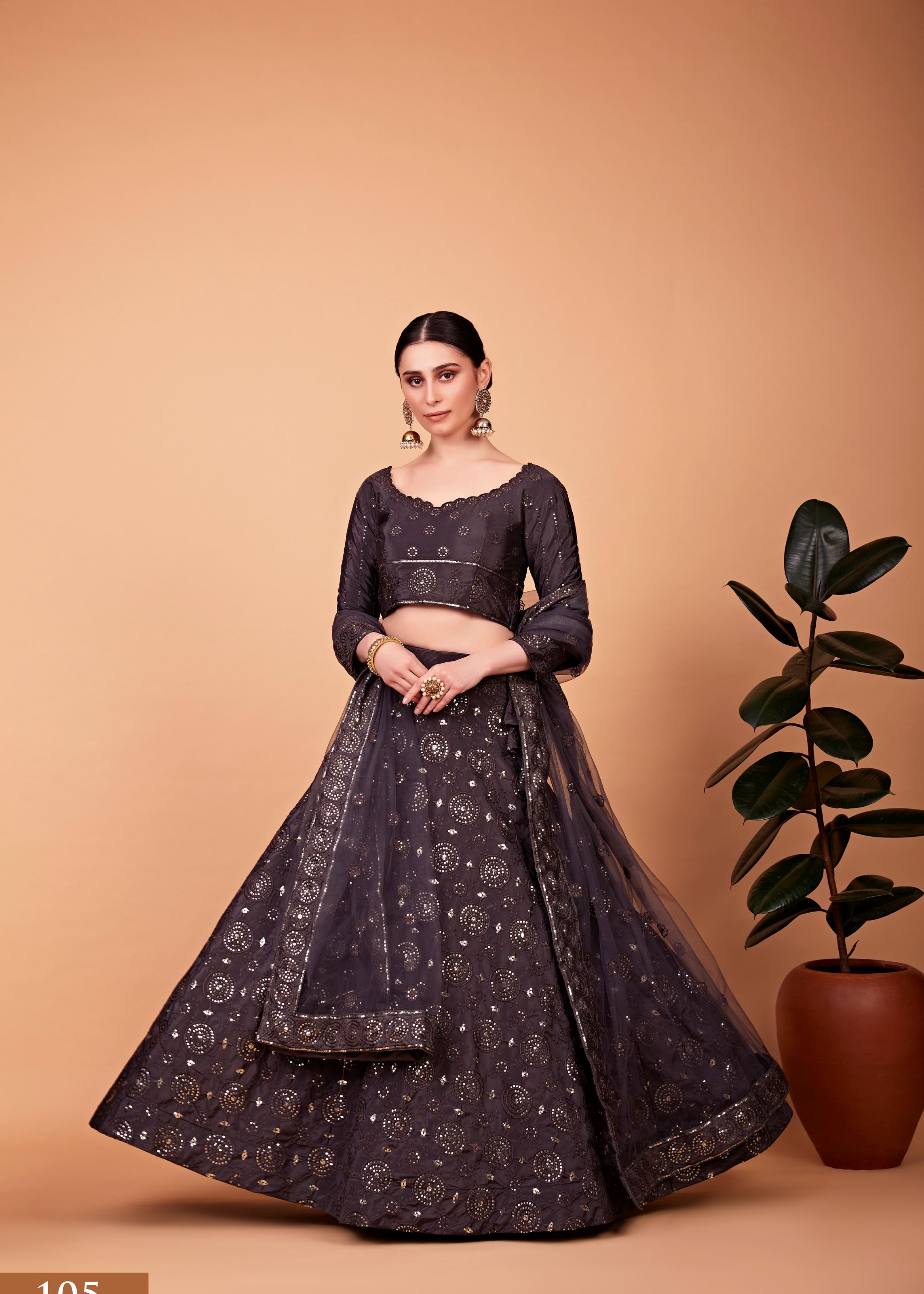 Redefine elegance with this Grey Lehenga Choli from Aethnofit Fashions, crafted in premium heavy tebi silk for a rich yet graceful drape. The sophisticated grey tone offers a modern twist to traditional wear, making it an ideal pick for receptions, cocktail nights, and festive gatherings.