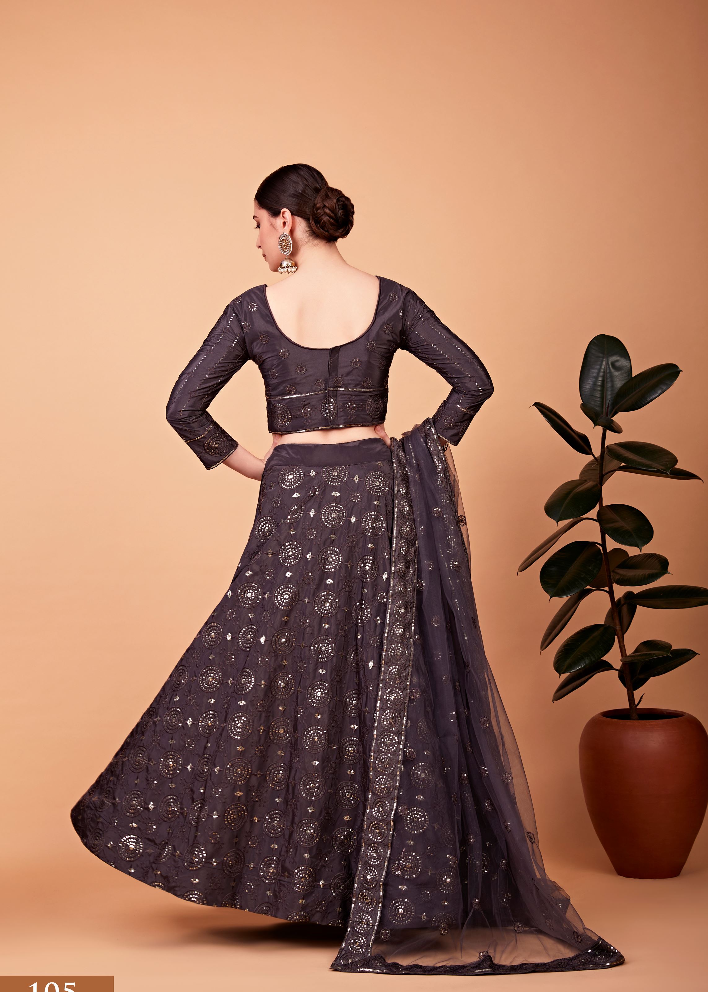 Grey Lehenga Choli With Thread And Sequins Embroidered Work