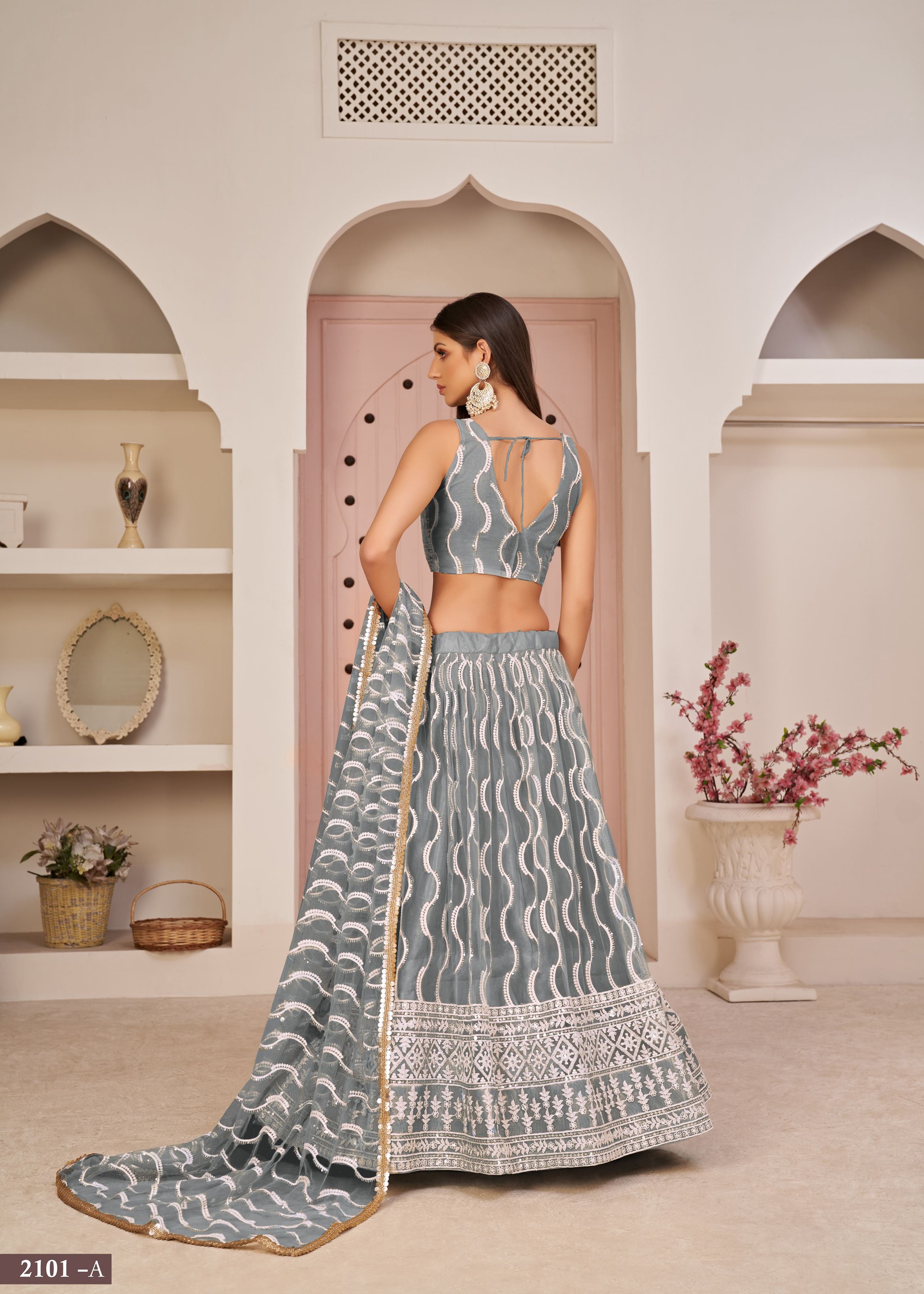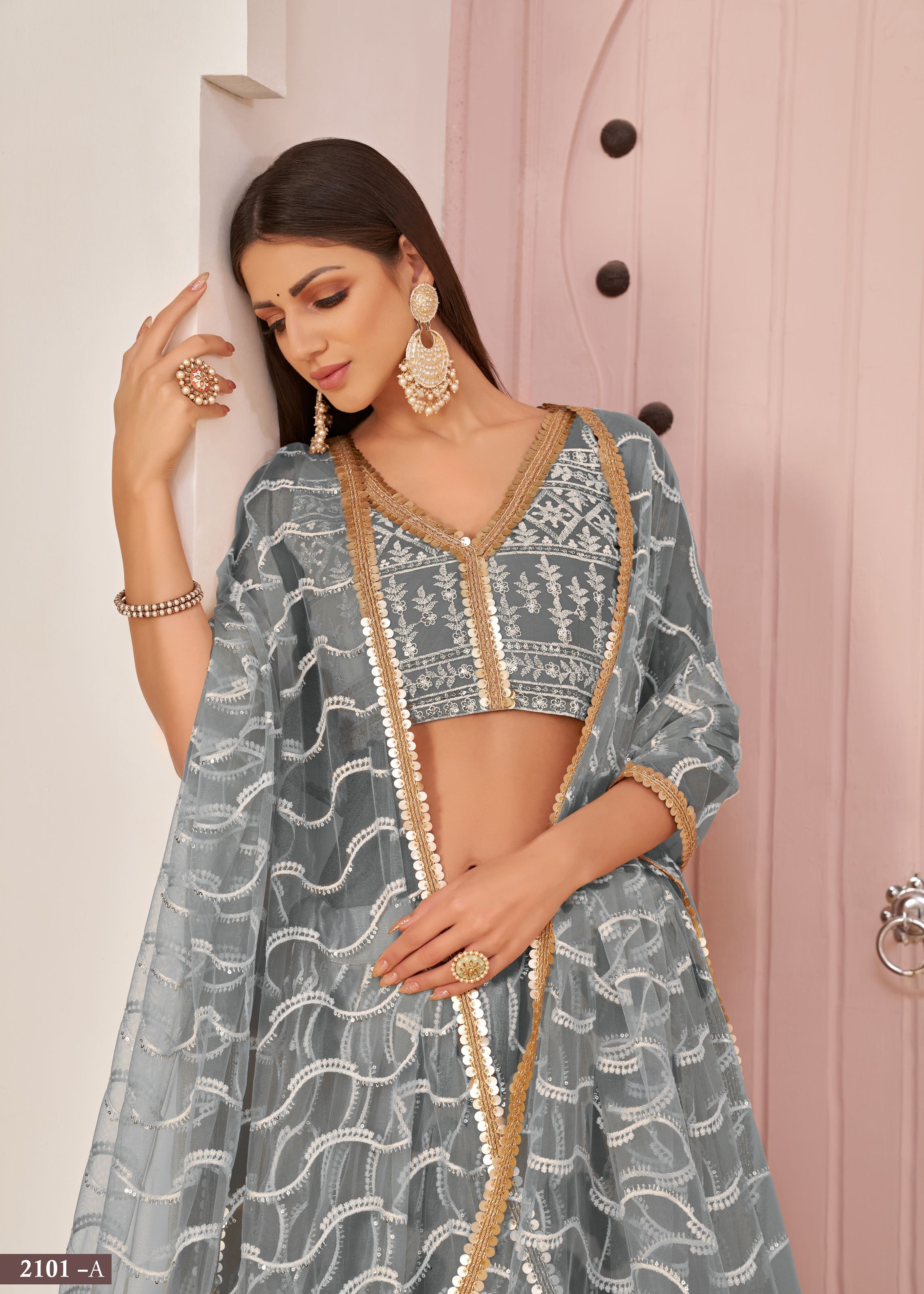 Step into modern elegance with this Grey Net Lehenga Choli from Aethnofit Fashions — a sophisticated ensemble designed for today’s fashion-forward celebrations. Crafted from fine net fabric, the lehenga showcases delicate thread embroidery that brings out graceful detailing and texture. The cool grey tone lends a contemporary edge, making it a perfect pick for cocktail parties, receptions, or festive evenings where understated glamour is key.