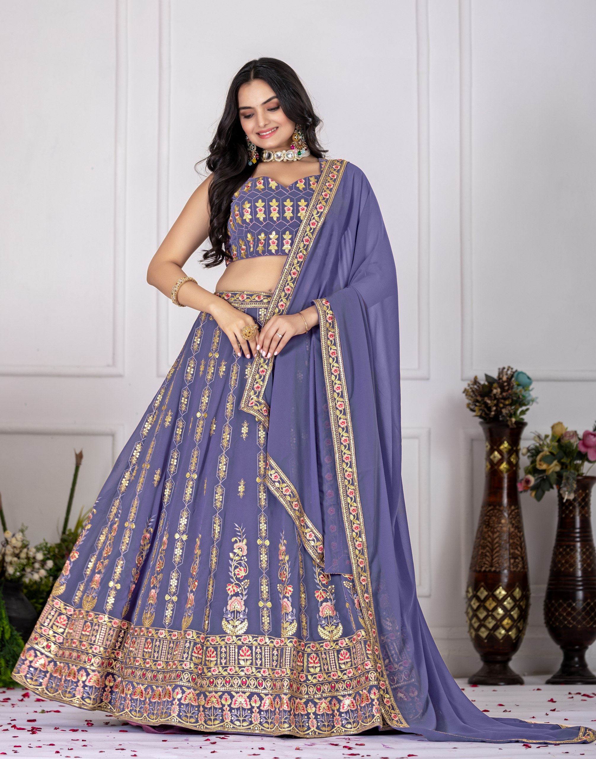 Lavender Lehenga Choli With Embroidery With Multi Thread Sequence Work