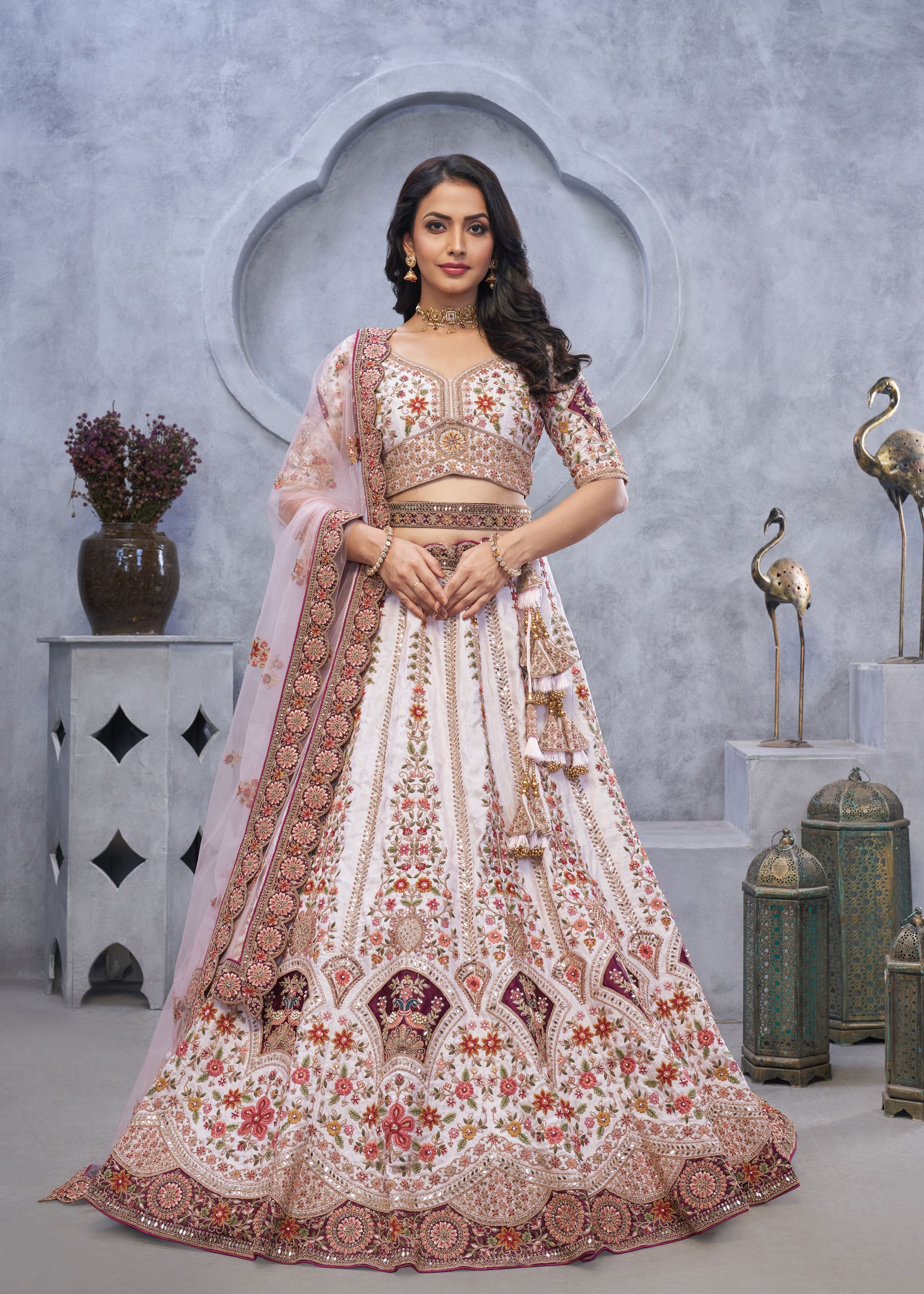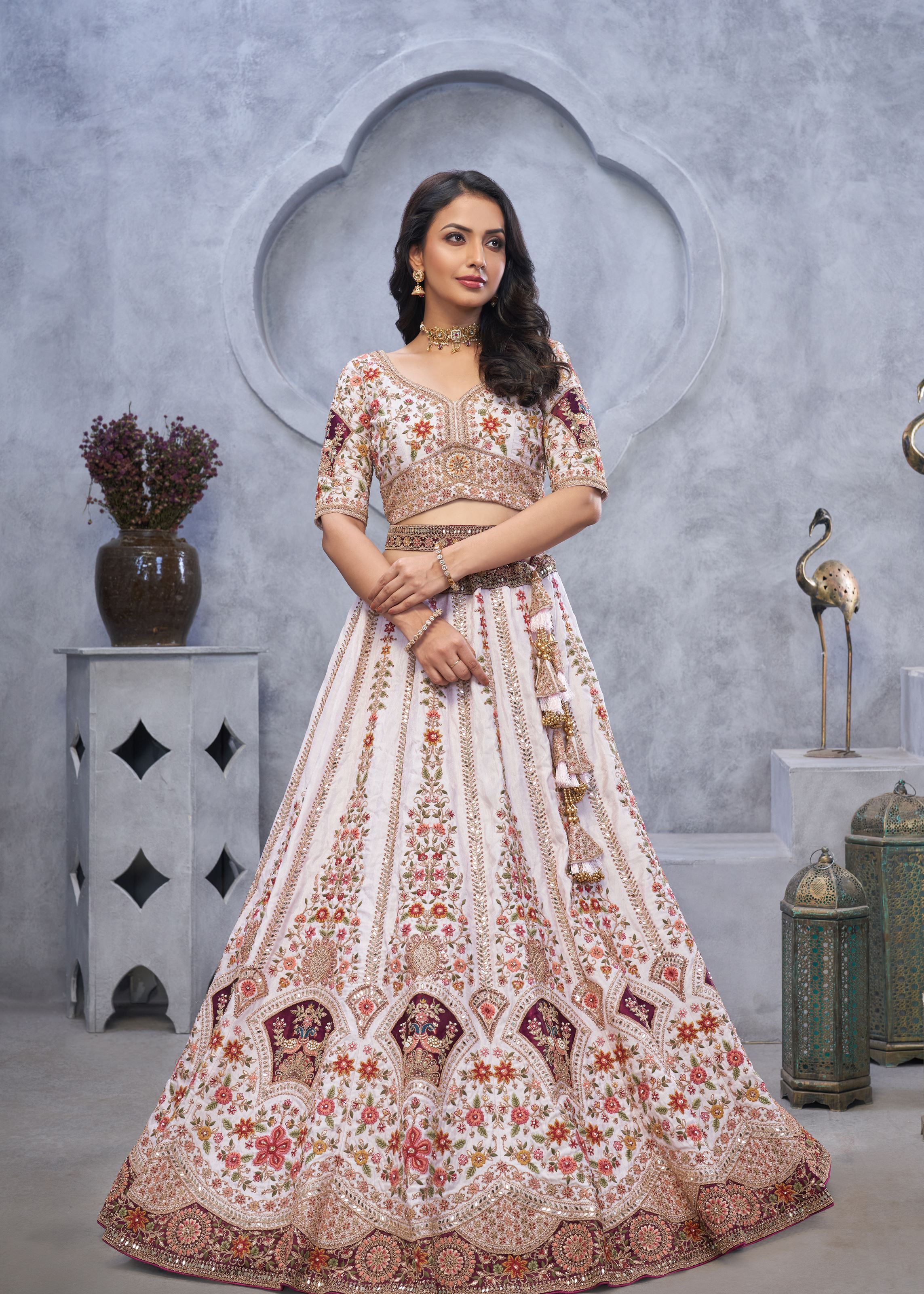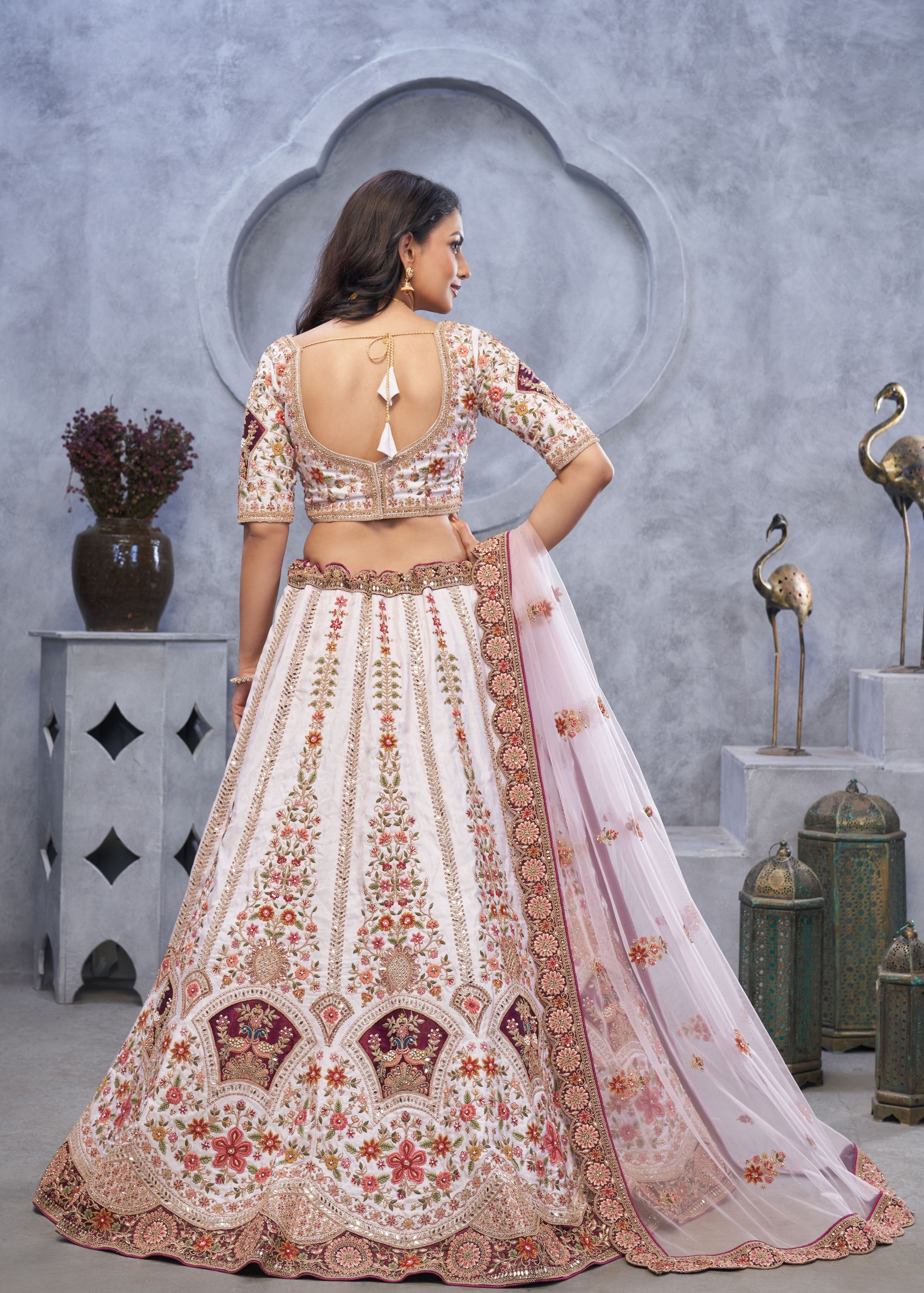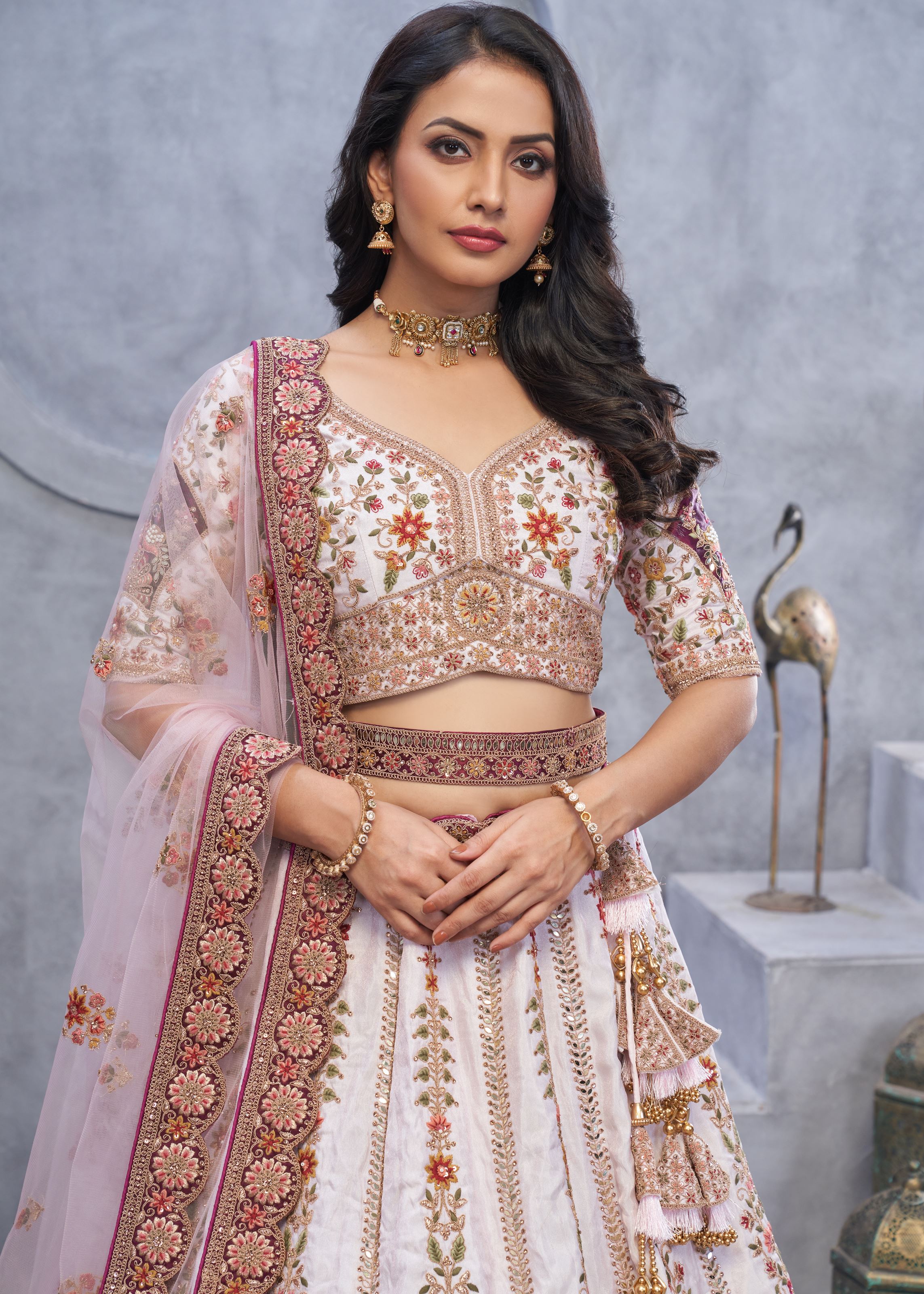 Light Purple Lehenga Choli With Zari Paisley Embroidery, Silk Patches, And Regal Peacock Motifs