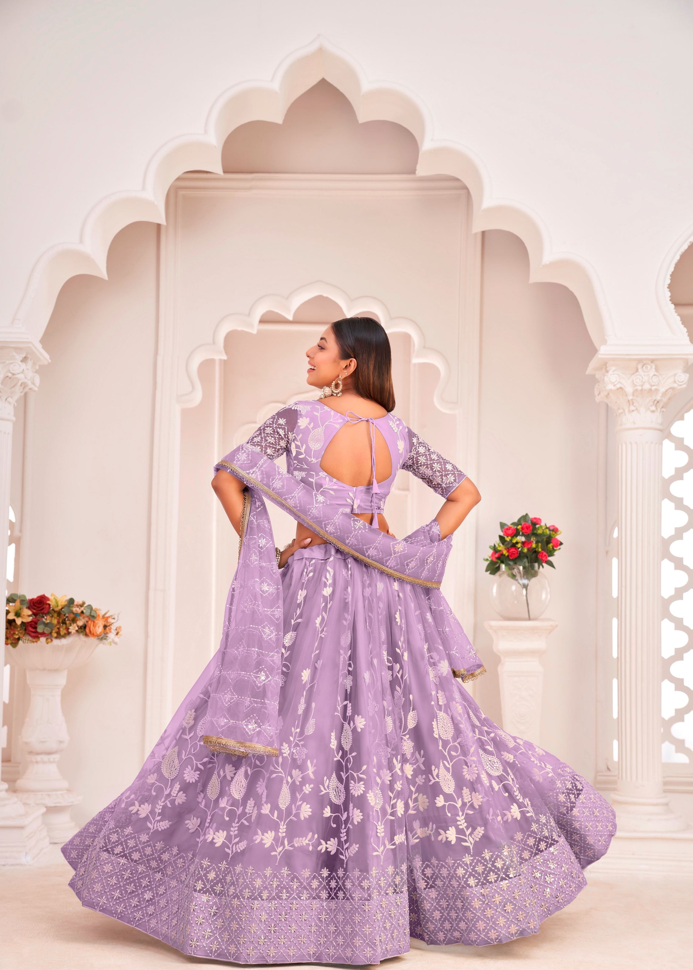 Light Purple Butterfly Net Lehenga Choli with Thread Embroidery Work