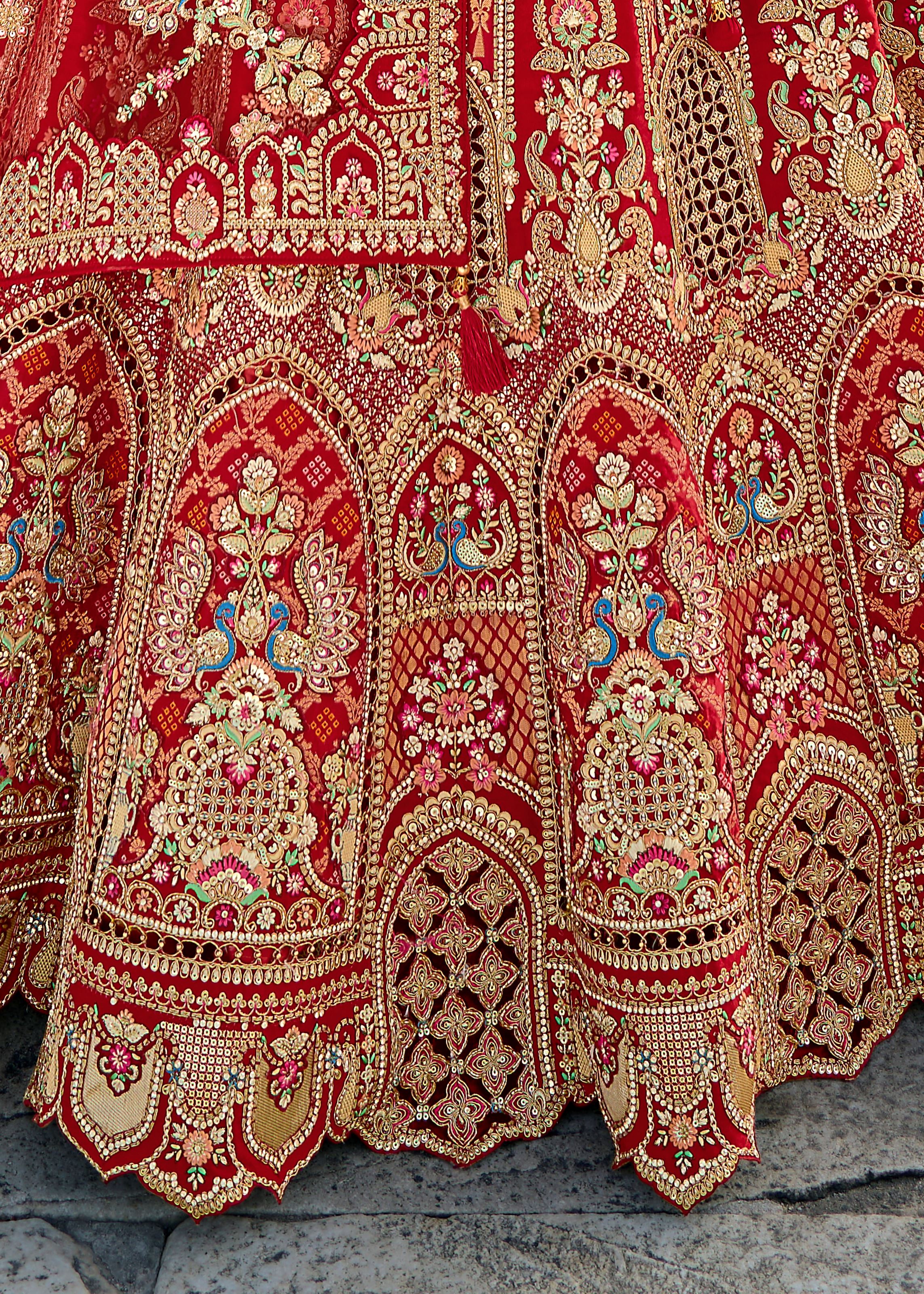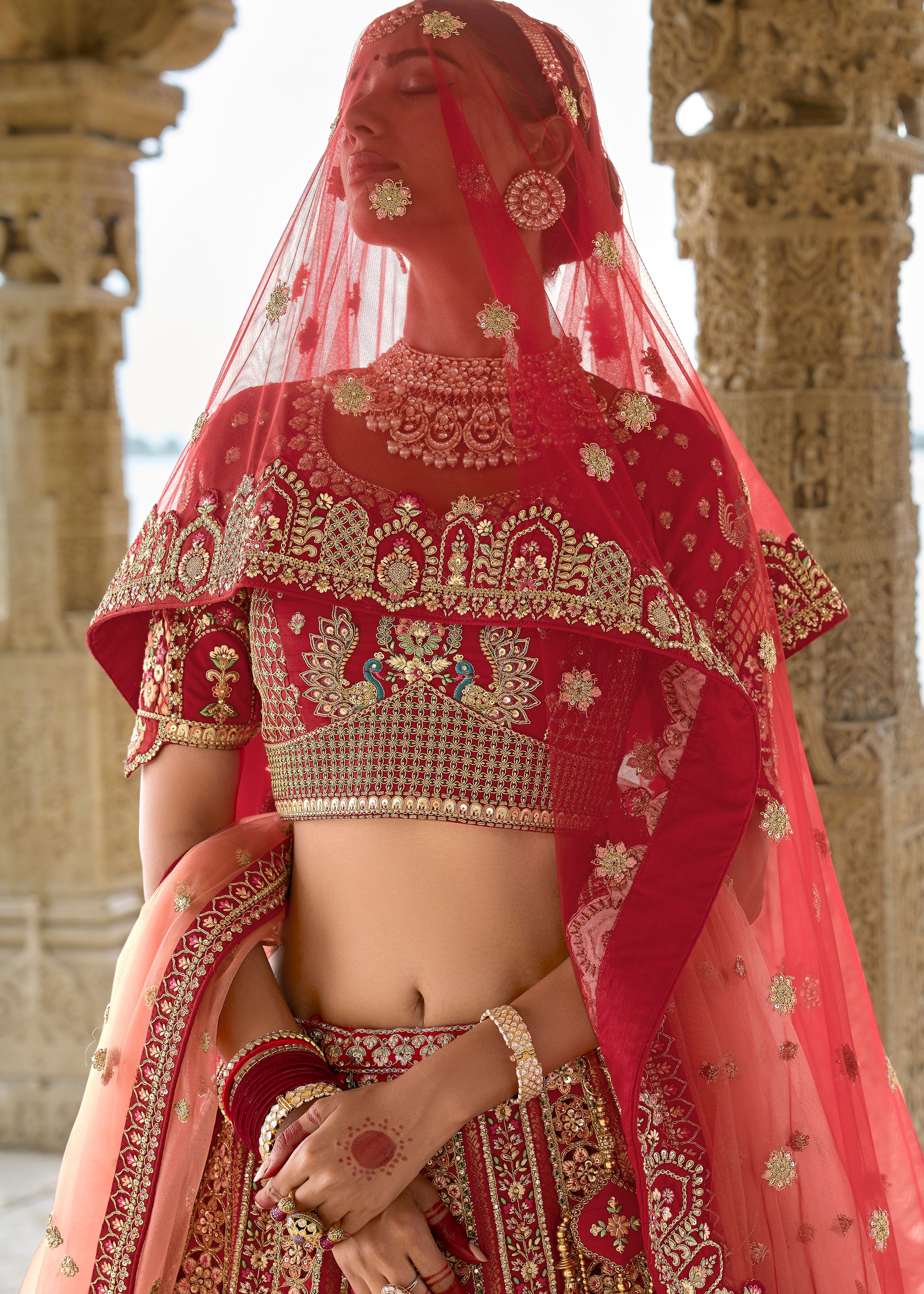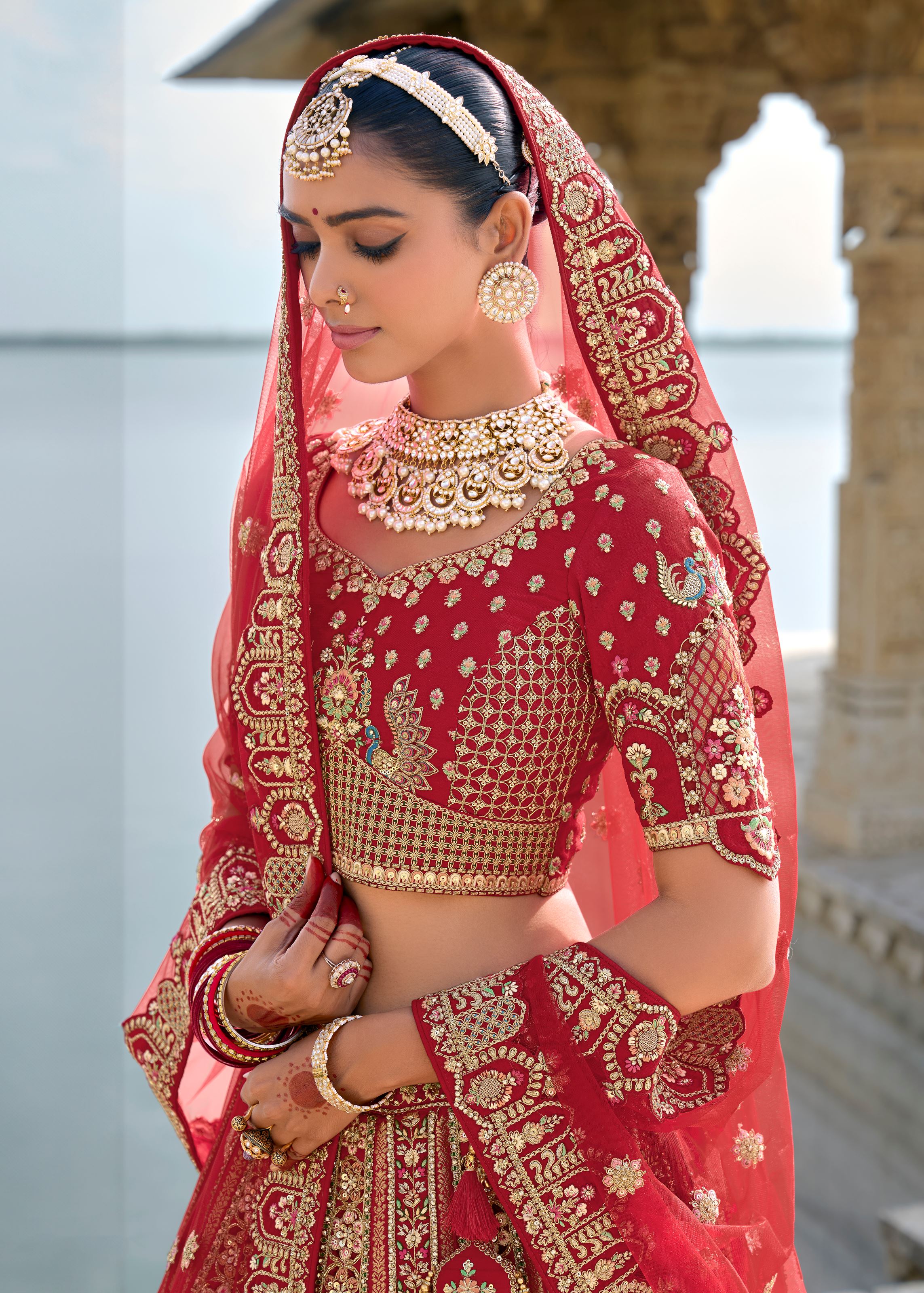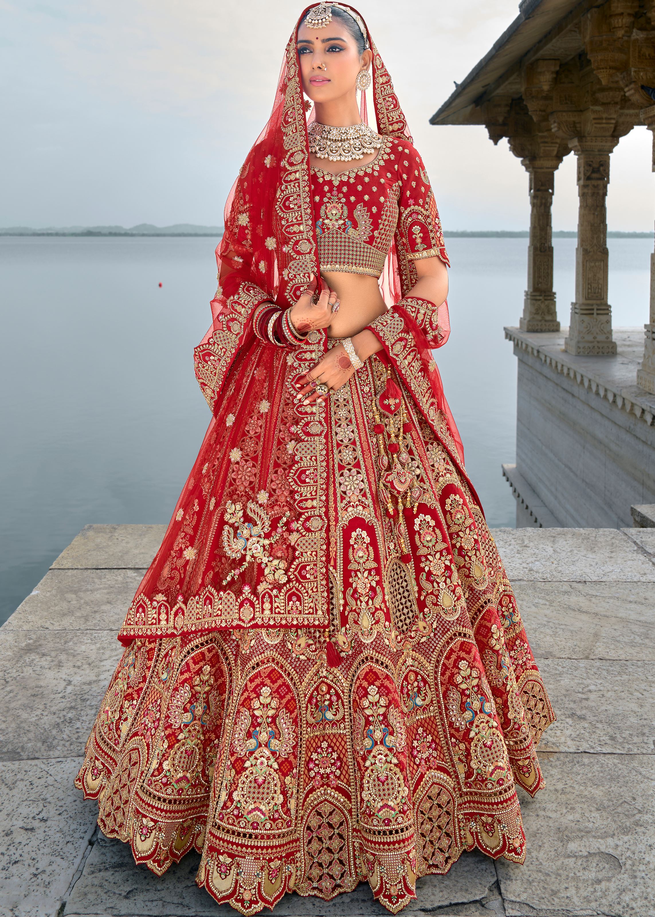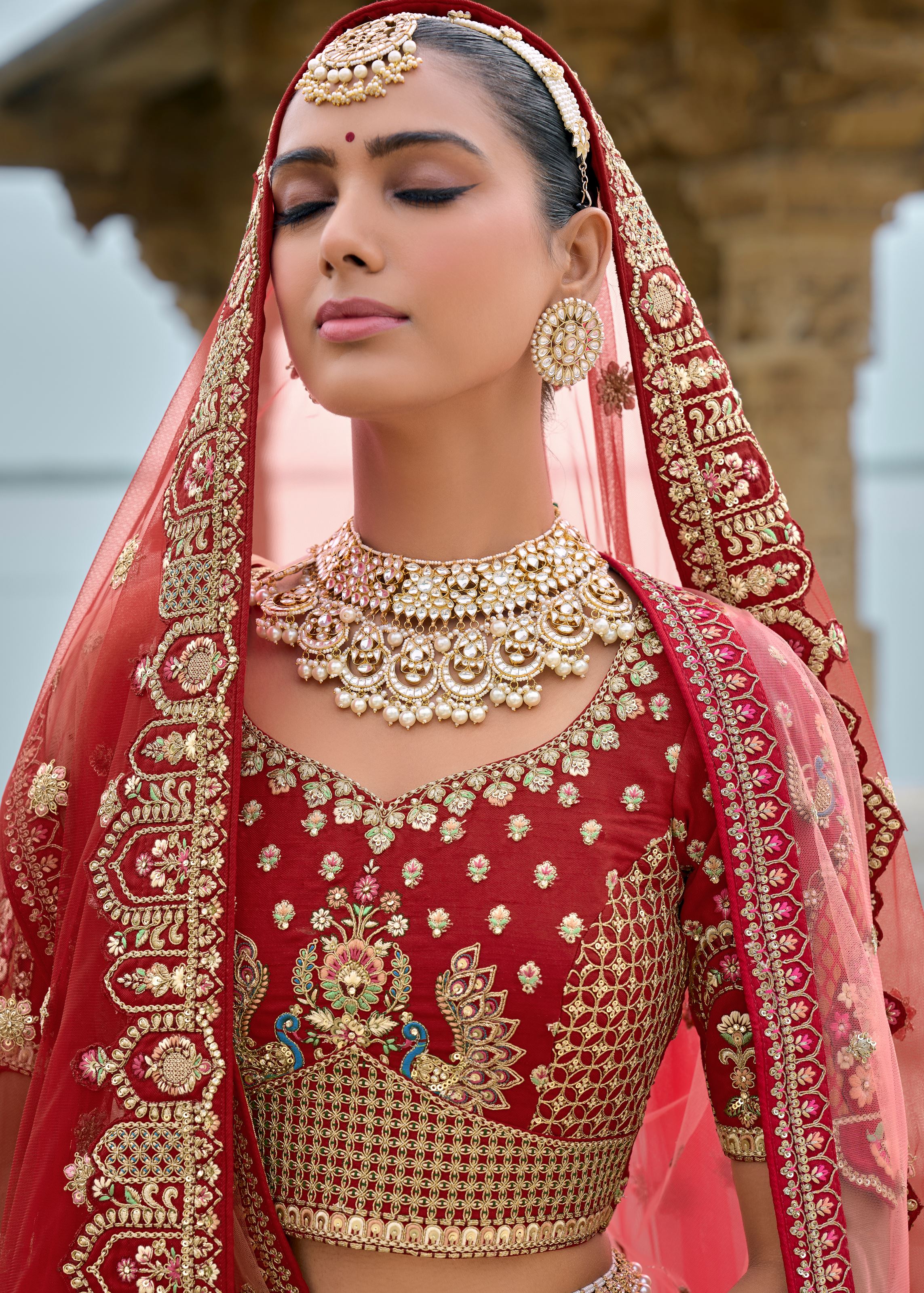 Maroon Lehenga Choli With Heavy Thread Embroidery, Zari With Sequins Work