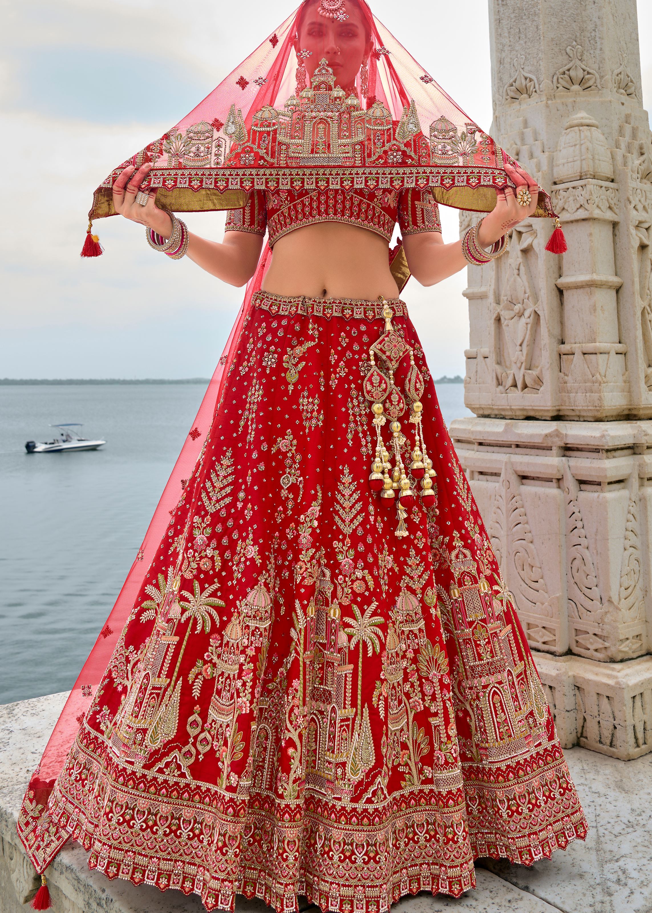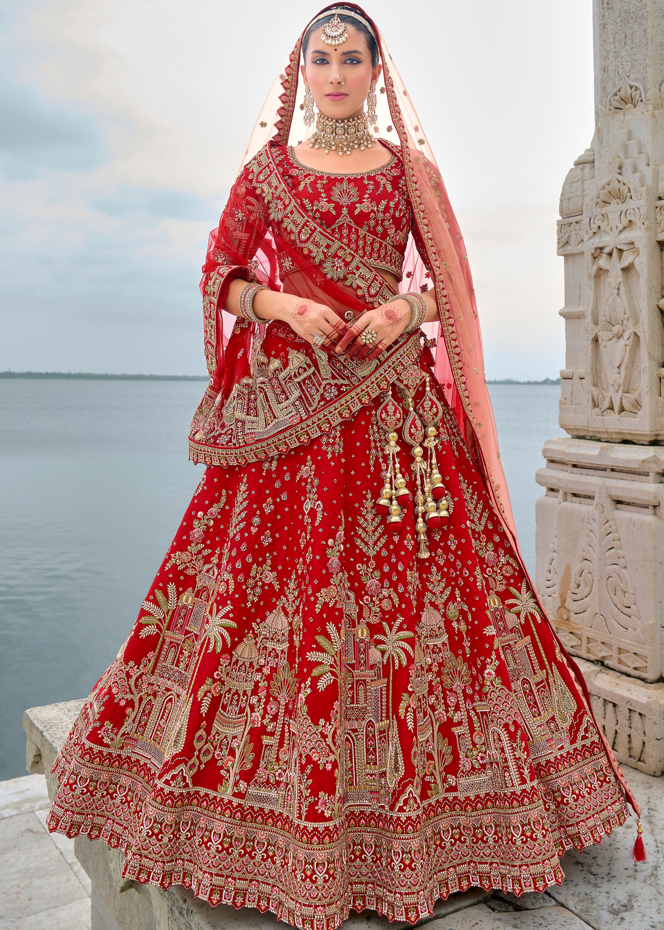 Maroon Lehenga Choli With Heavy Thread Embroidery, Zari With Sequins Work