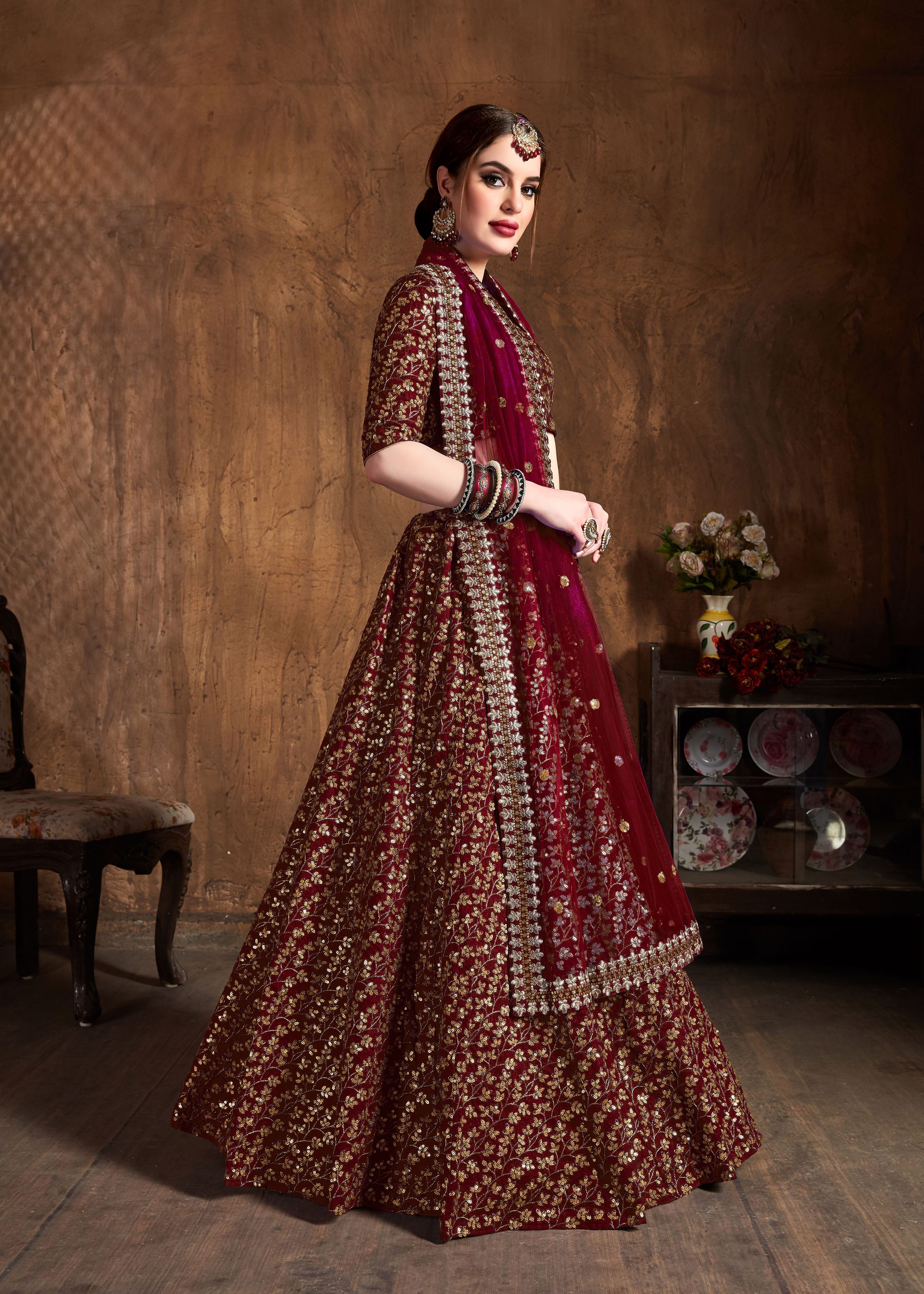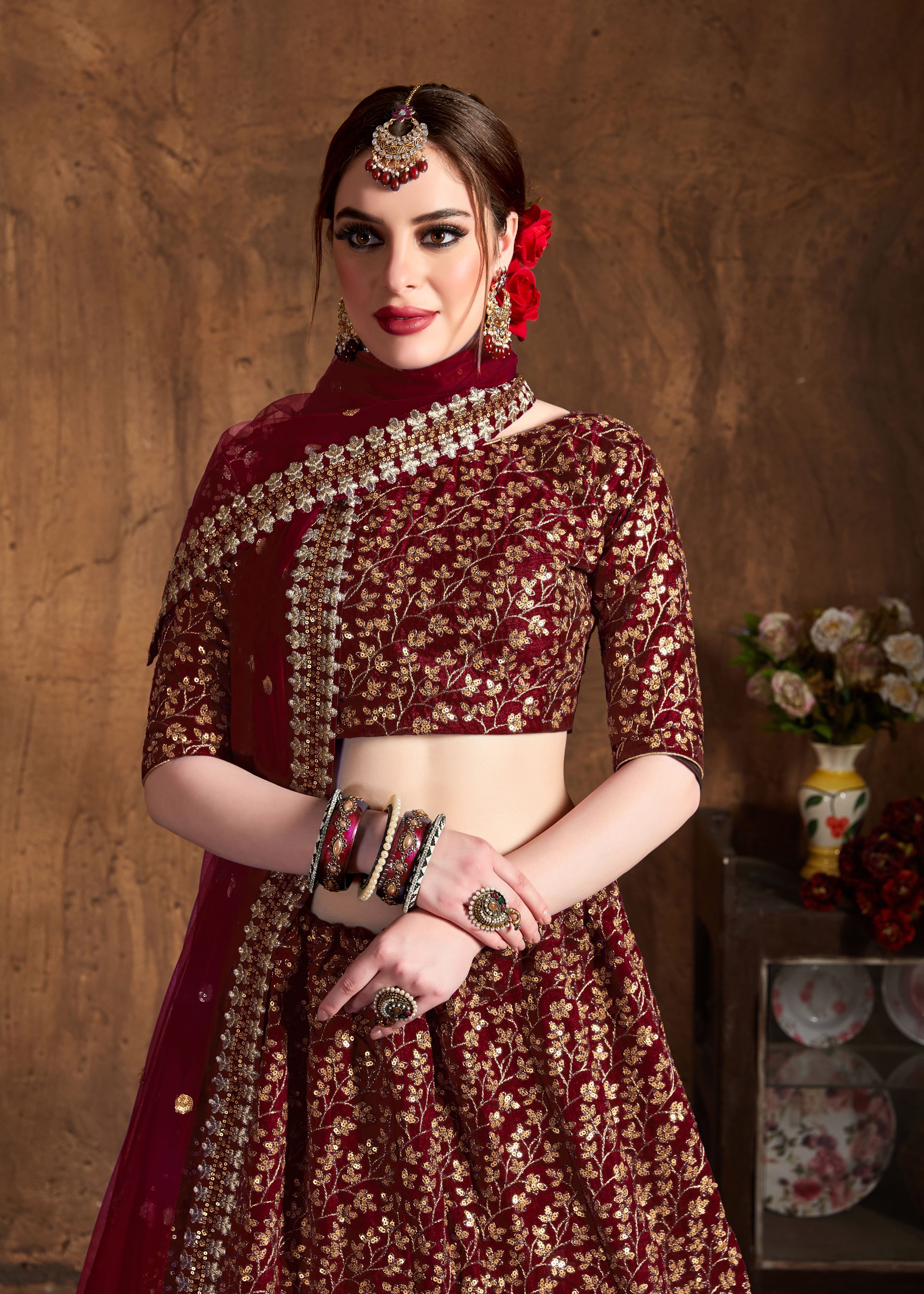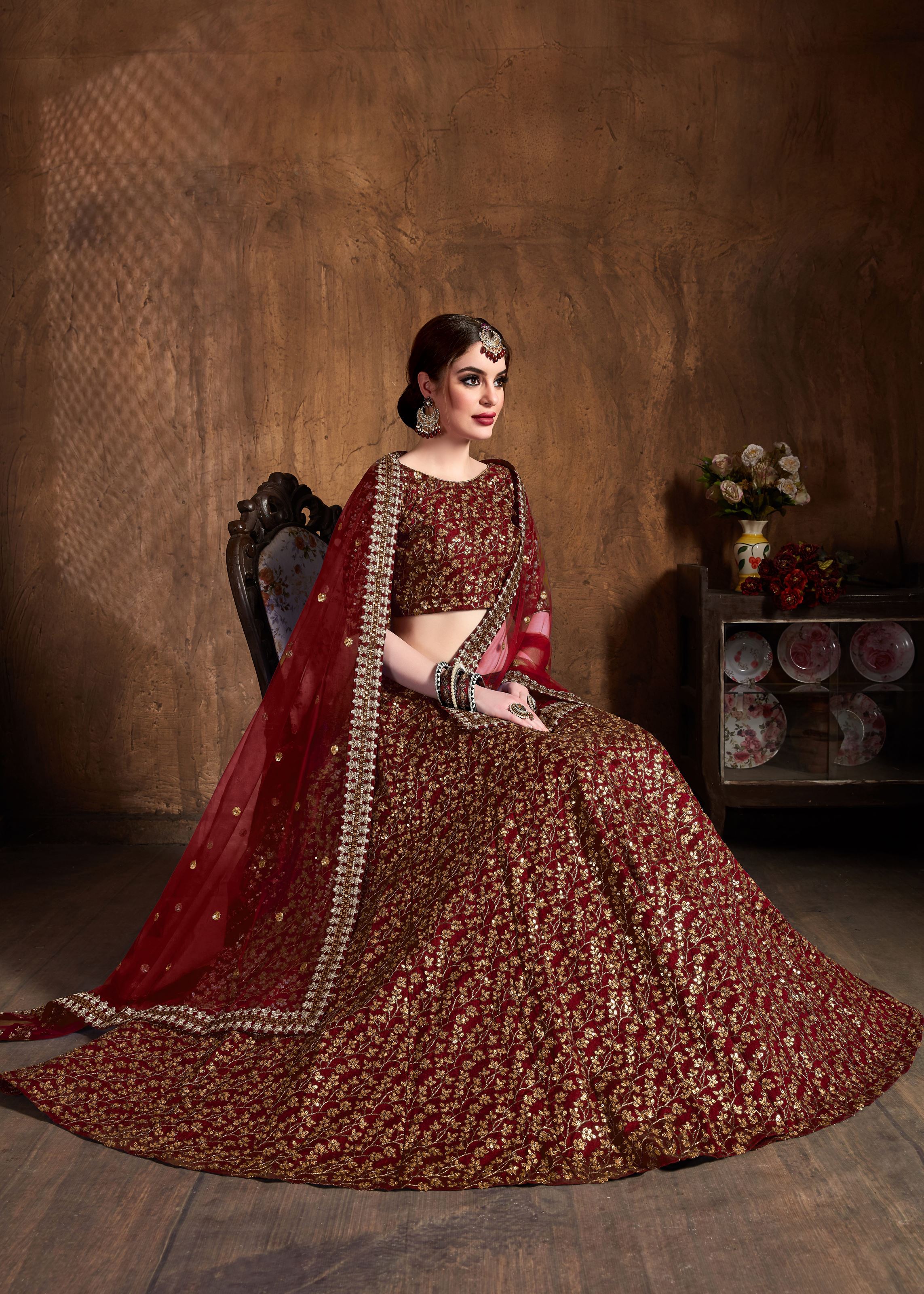 Maroon Lehenga Choli With Zari And Sequins Heavy Embroidery Work