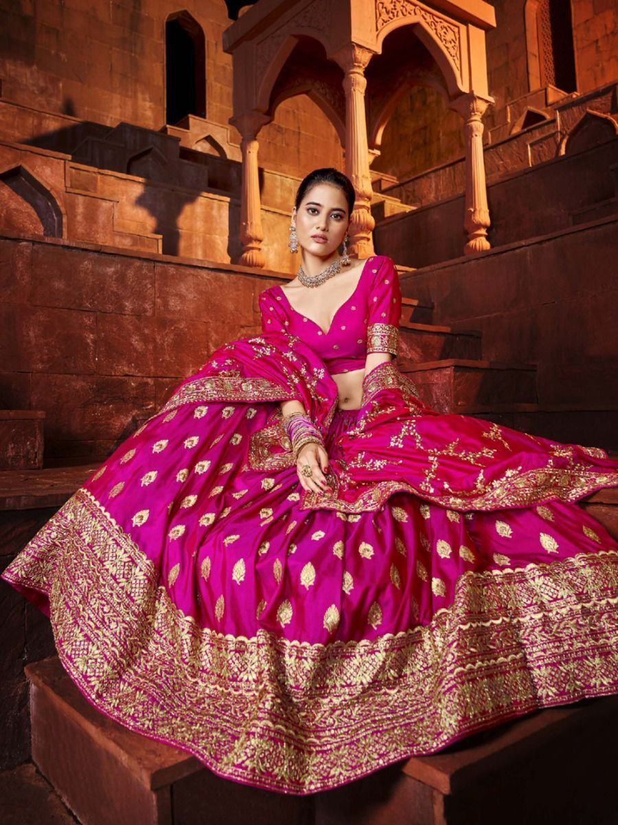 Marvelous Hot Pink Sequins Embroidered Silk Lehenga Choli