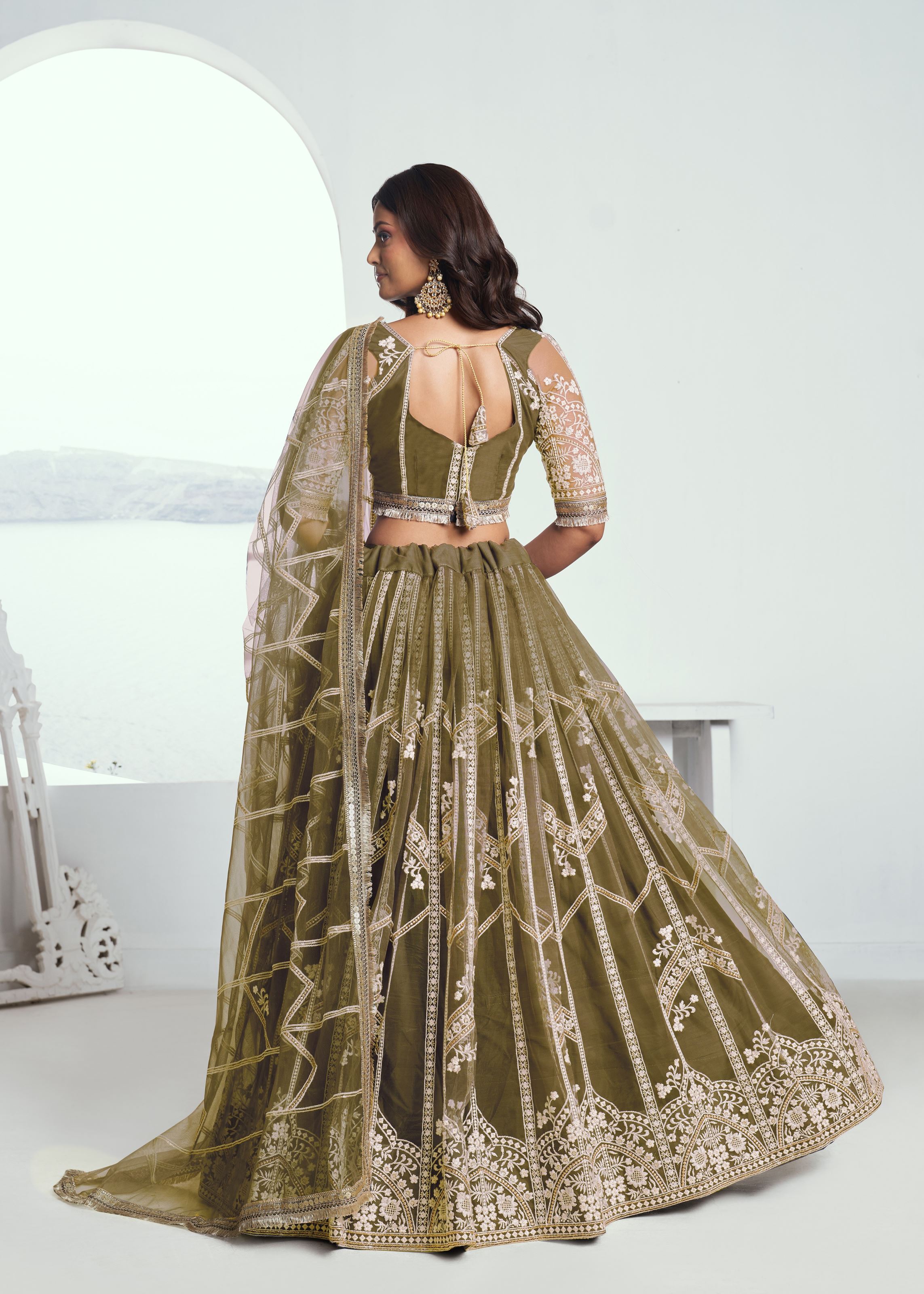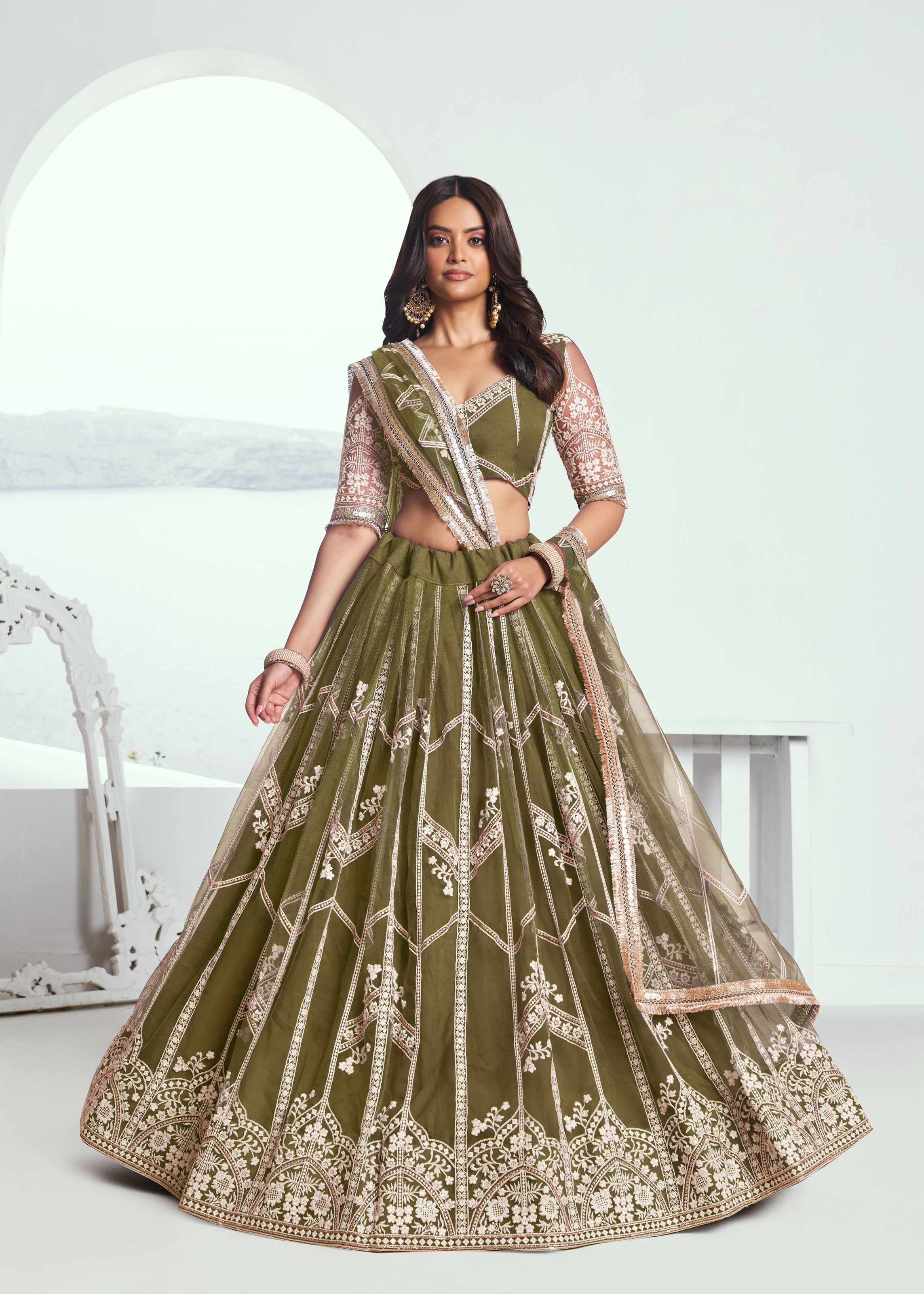 Mehandi Green Lehenga Choli With Zari Work And Sequence Work Embroidery